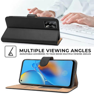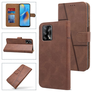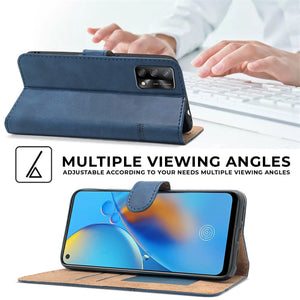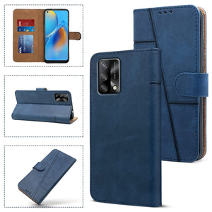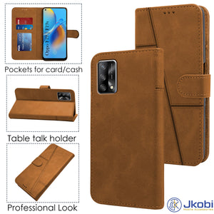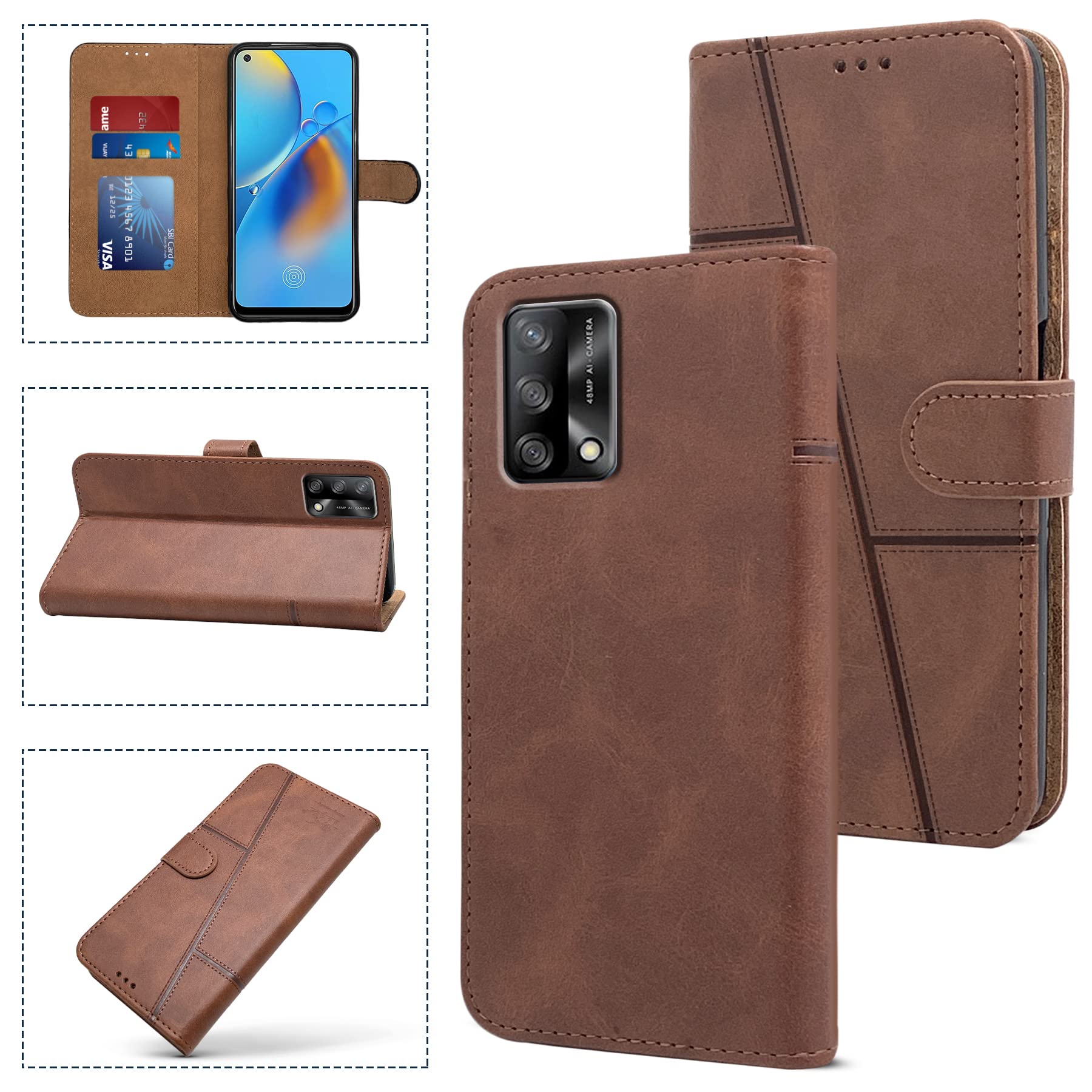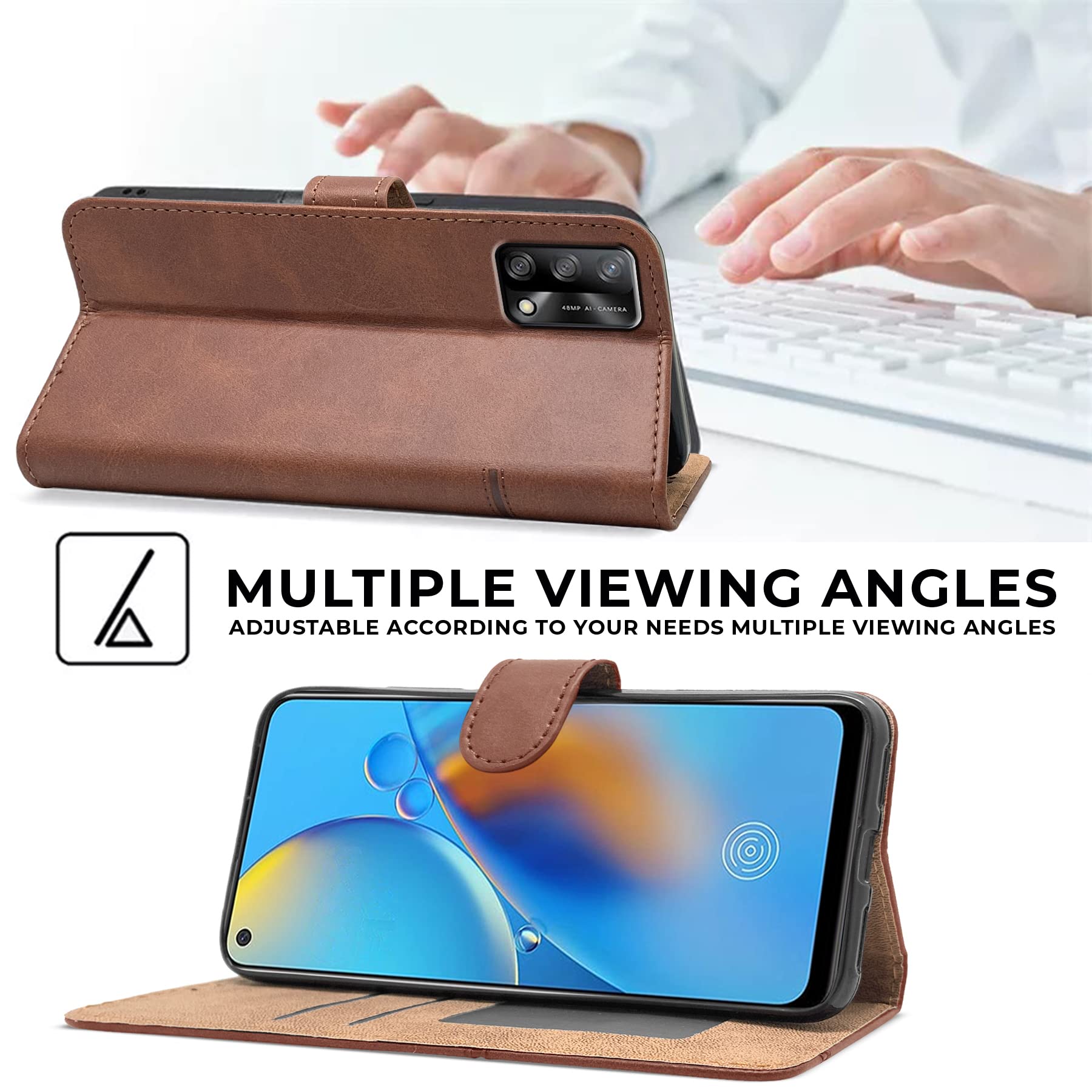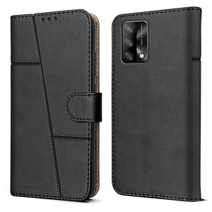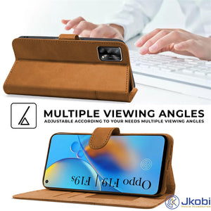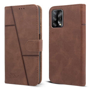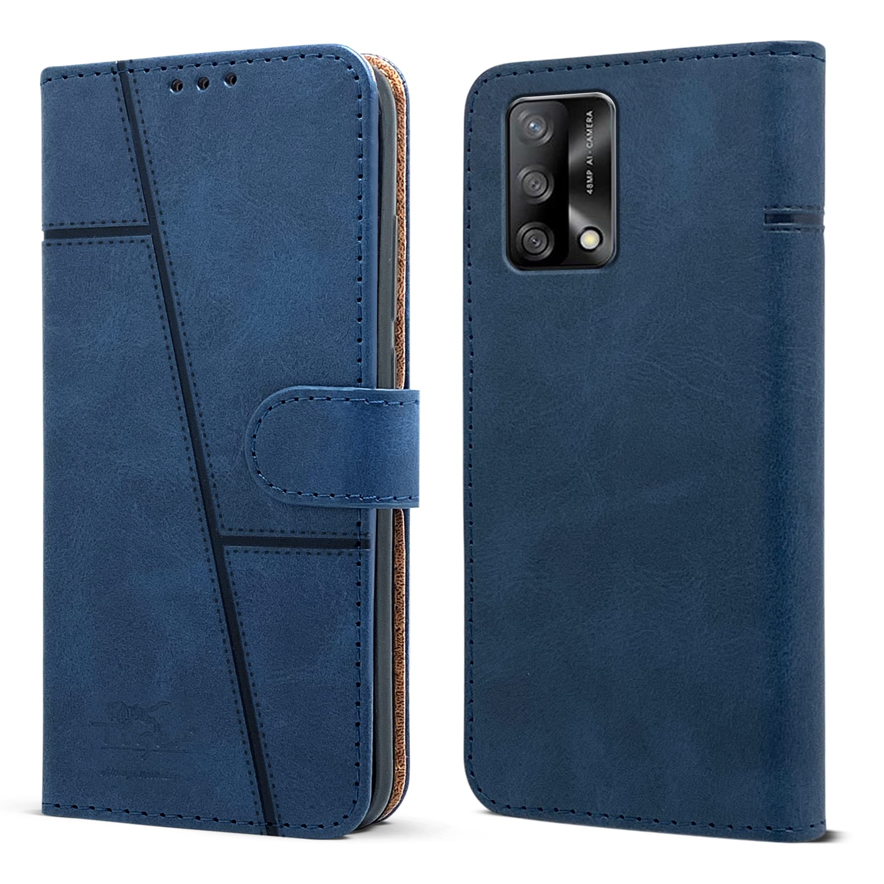 For Oppo F19 | F19s Flip Cover Case (Stitched Leather Finish | Magnetic Closure | Inner TPU | Foldable Stand | Wallet Card Slots)