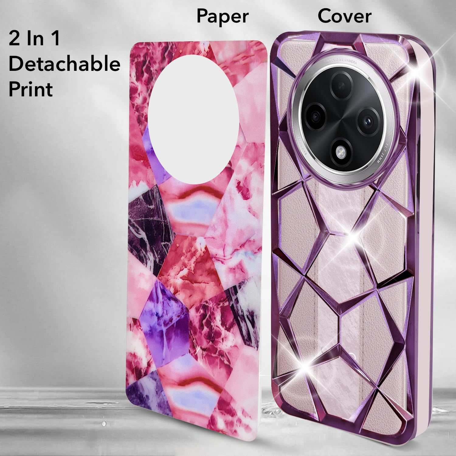For Oppo F27 Pro | Oppo F27 Pro Plus Back Cover Case ( Dual Design Glitter Sparkle and Detachable Diamond Print Case | Soft and Flexible)