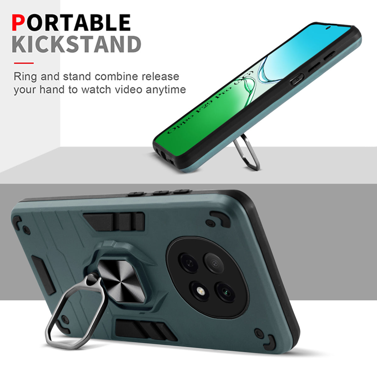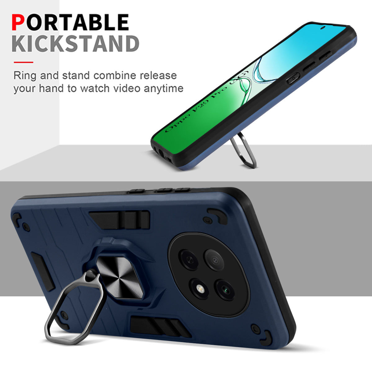 For Oppo F29 Pro Back Cover Case (Shockproof Dual Layer Polycarbonate |Ring Holder Kickstand)