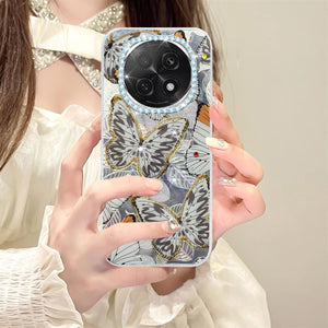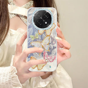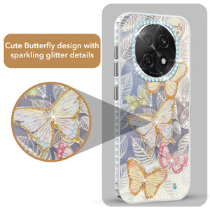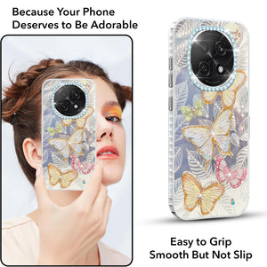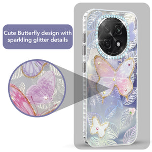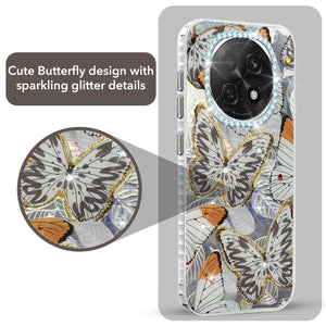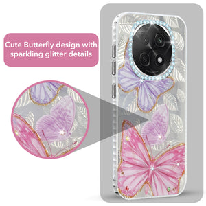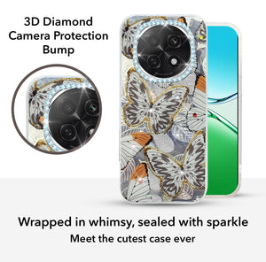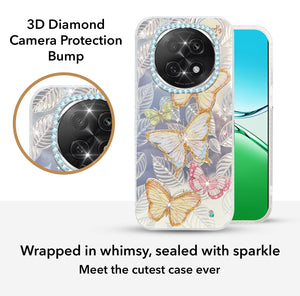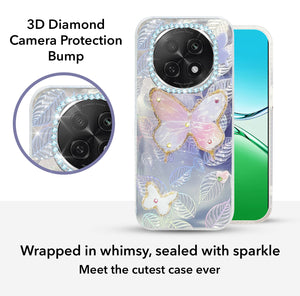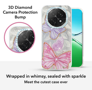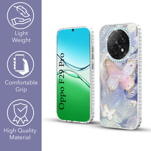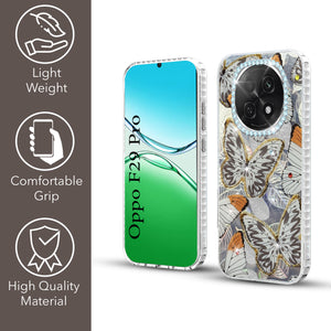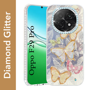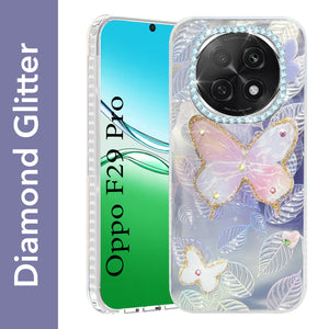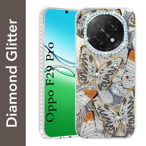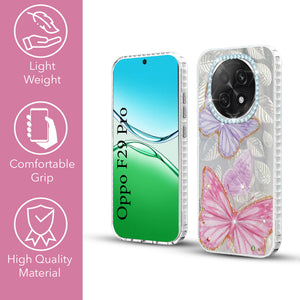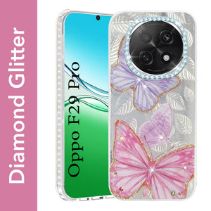 For Oppo F29 Pro Back Cover Case (Luxury Floral Glitter Cute Butterfly | Diamond Studded Camera Bump | Girls & Women Design)