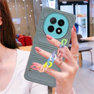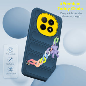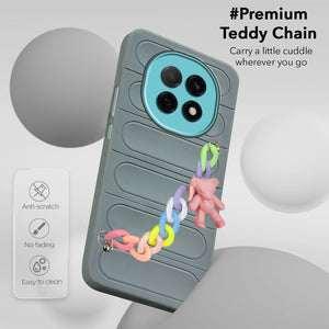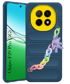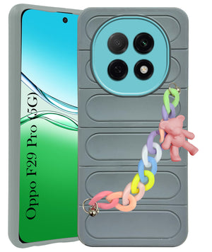 For Oppo F29 Pro Back Cover Case (Wrist Hanging Chain | Teddy Bracelet Charms | Matte Liquid Silicone | Camera Protection Ring)