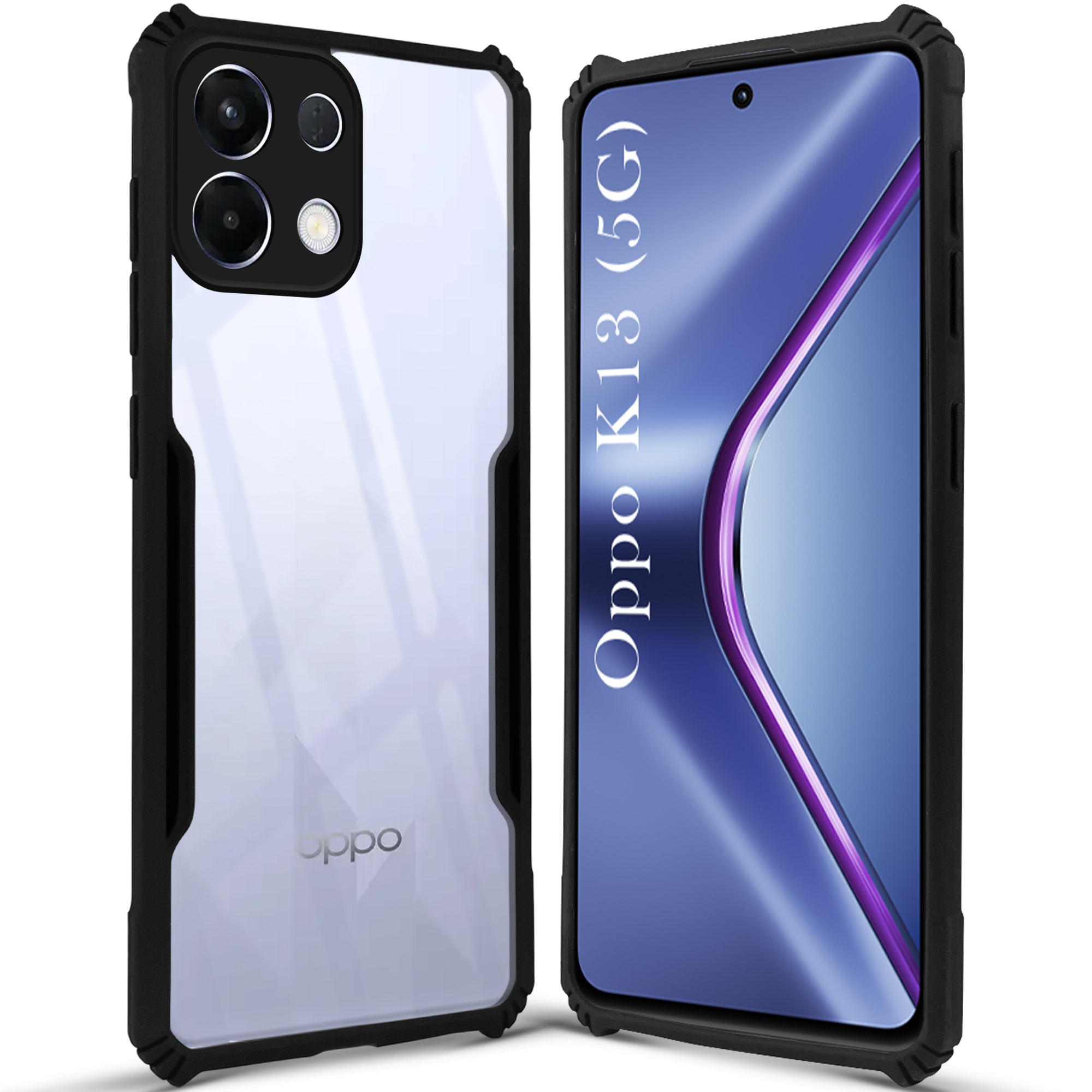 For Oppo K13 Back Cover Case (Shockproof with Polycarbonate Clear Panel | Professional Black)