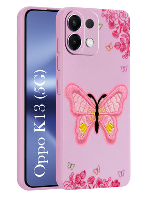 For Oppo K13 Back Cover Case (Soft Butterfly Embroidery | Women Teen Girls | Camera Protection| Matte Silicone)