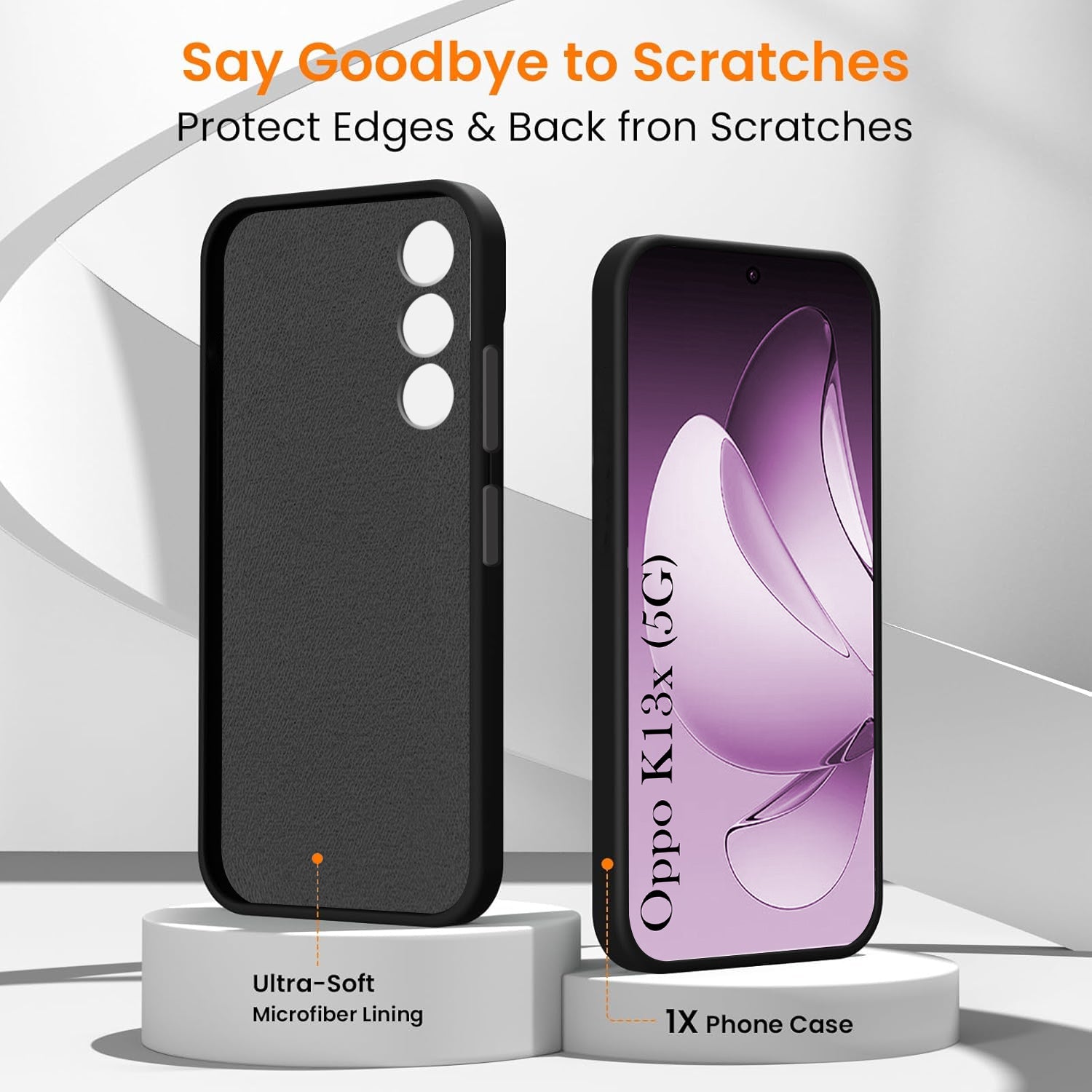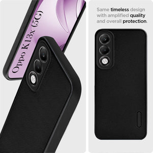 For Oppo K13X Back Cover Case (Textured Grip Design | Micro-Fiber Cloth Inside | Slim and Light Weight | Soft Touch and Feel | Black)