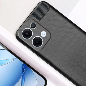For Oppo Reno13 5G | Oppo Reno 13 5G Back Cover Case ( Hybrid Armor Case | Carbon Fiber Shockproof | Soft and Flexible | Black )