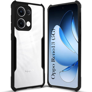 For Oppo Reno13 5G | Oppo Reno 13 5G Back Cover Case (Shockproof with Polycarbonate Clear Panel | Professional Black)