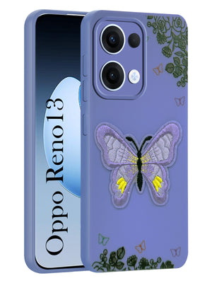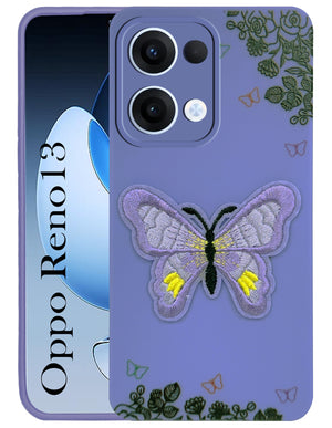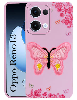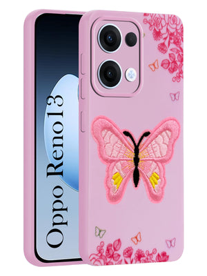 For Oppo Reno13 5G | Oppo Reno 13 5G Back Cover Case (Soft Butterfly Embroidery | Women Teen Girls | Camera Protection| Matte Silicone)