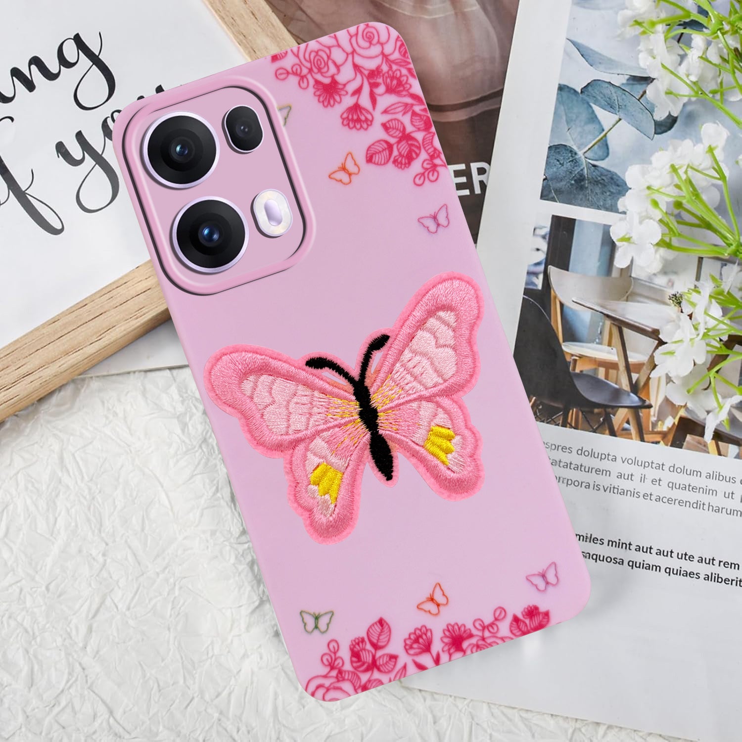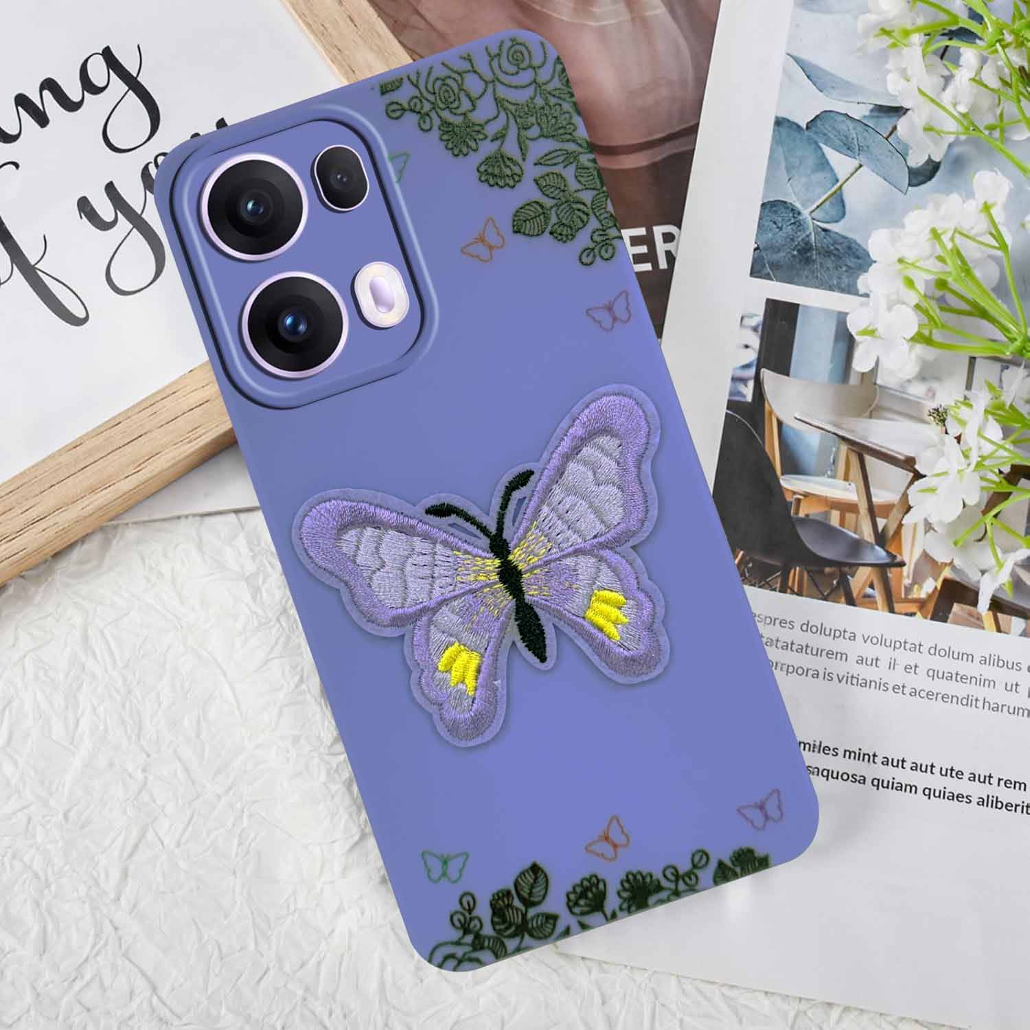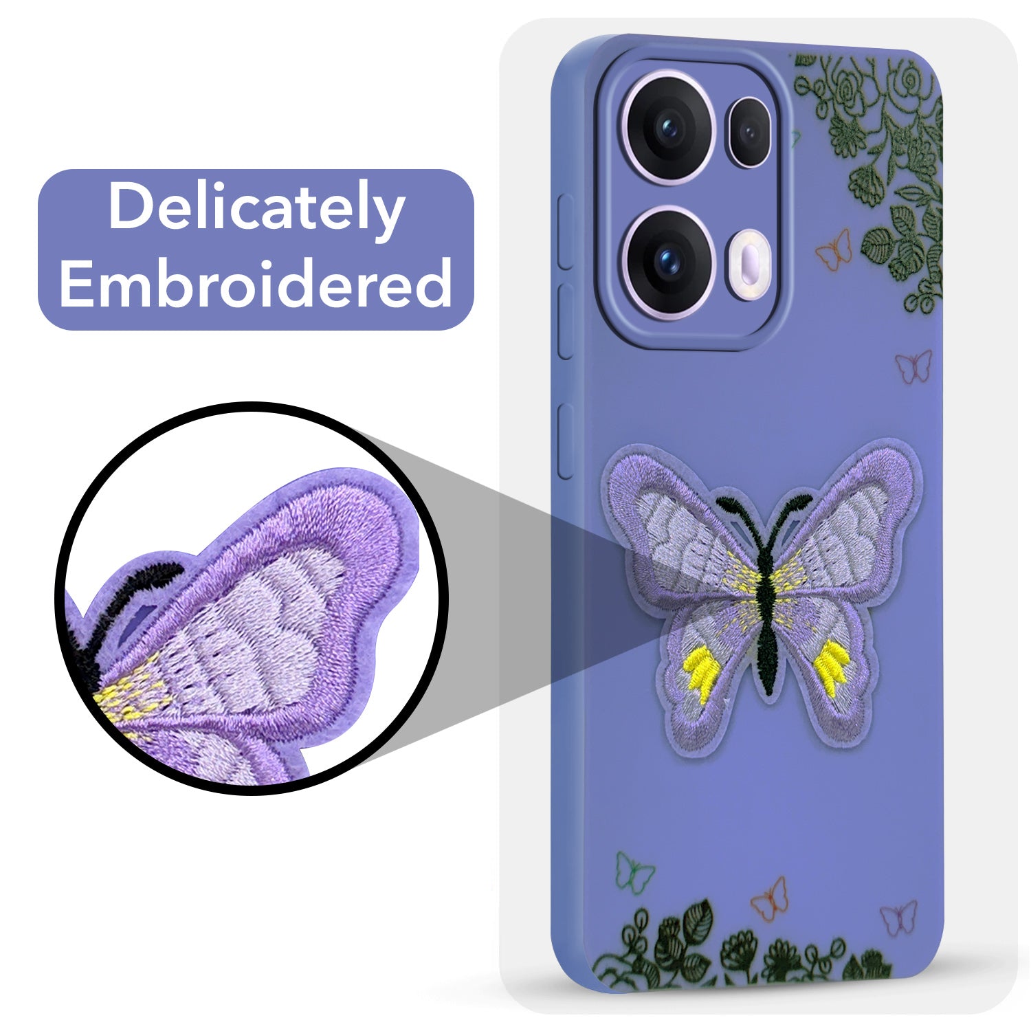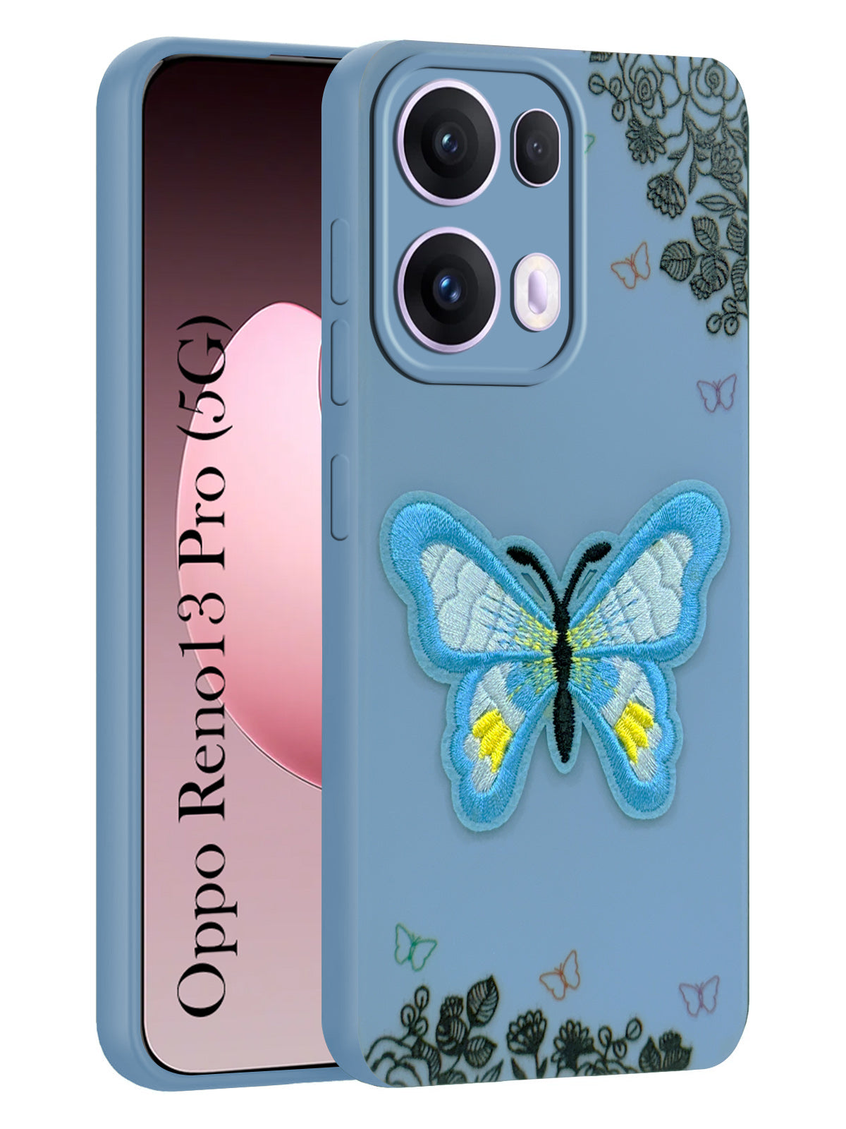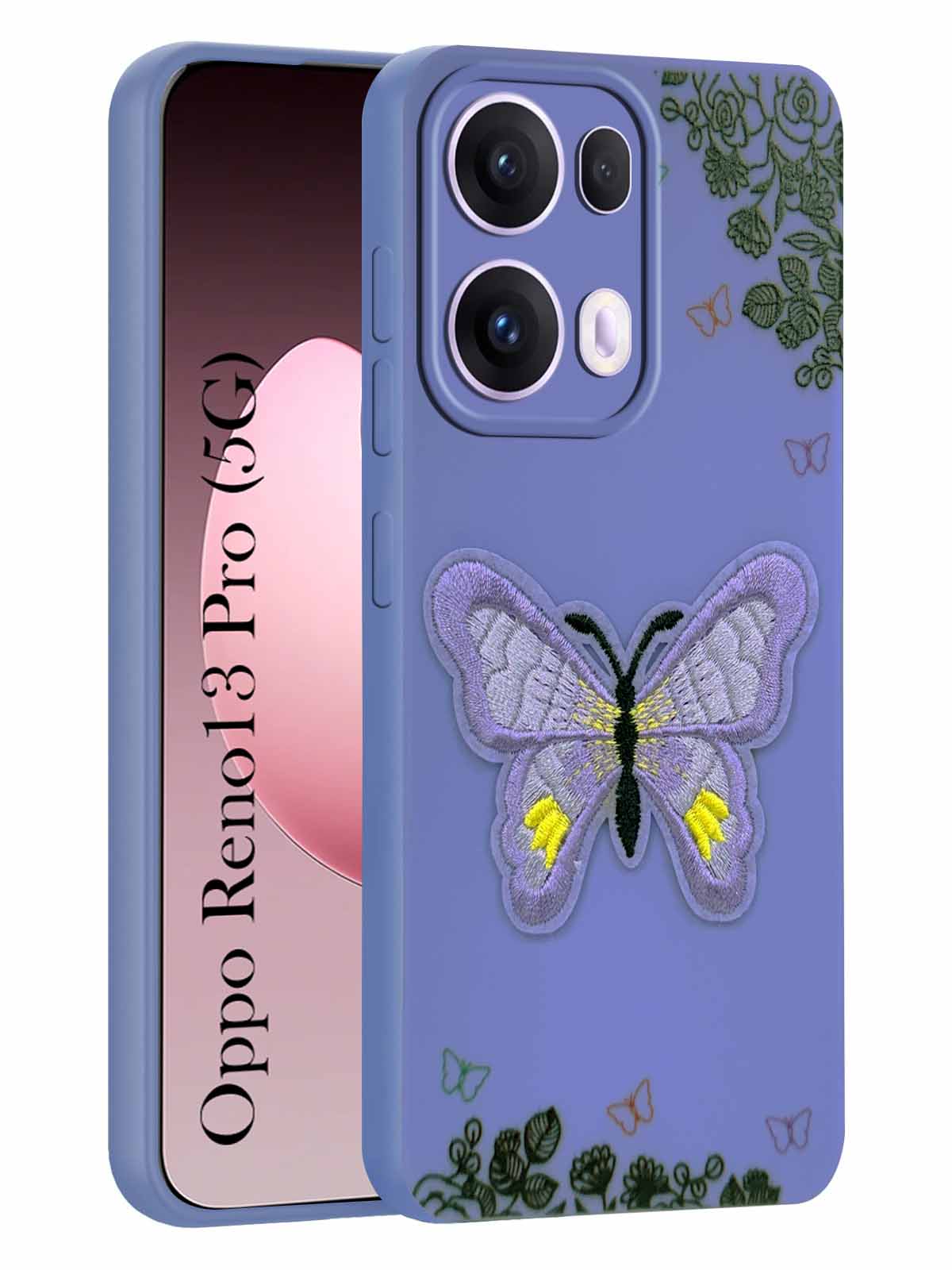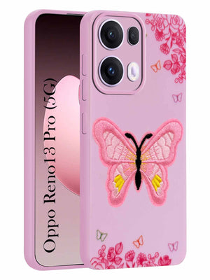 For Oppo Reno13 Pro 5G | Oppo Reno 13 Pro 5G Back Cover Case (Soft Butterfly Embroidery | Women Teen Girls | Camera Protection| Matte Silicone)