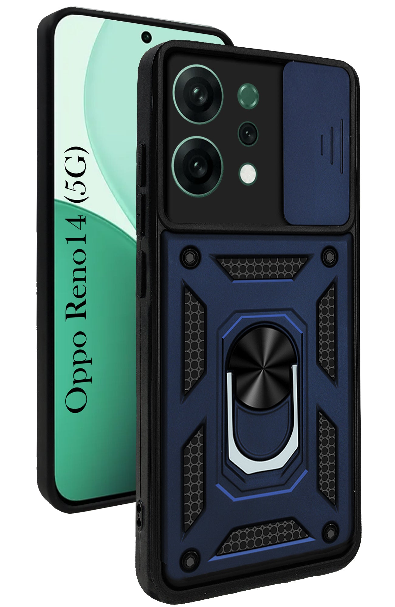 For Oppo Reno14 5G | Oppo Reno 14 5G Back Cover Case (Sliding Shutter Camera Protection | Polycarbonate |Ring Holder Kickstand)