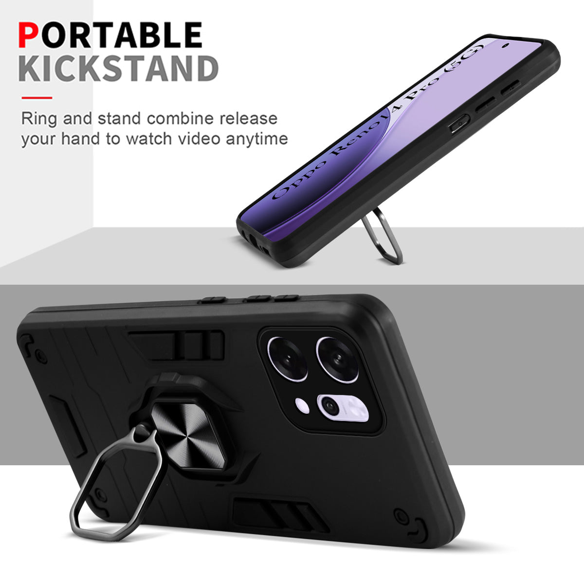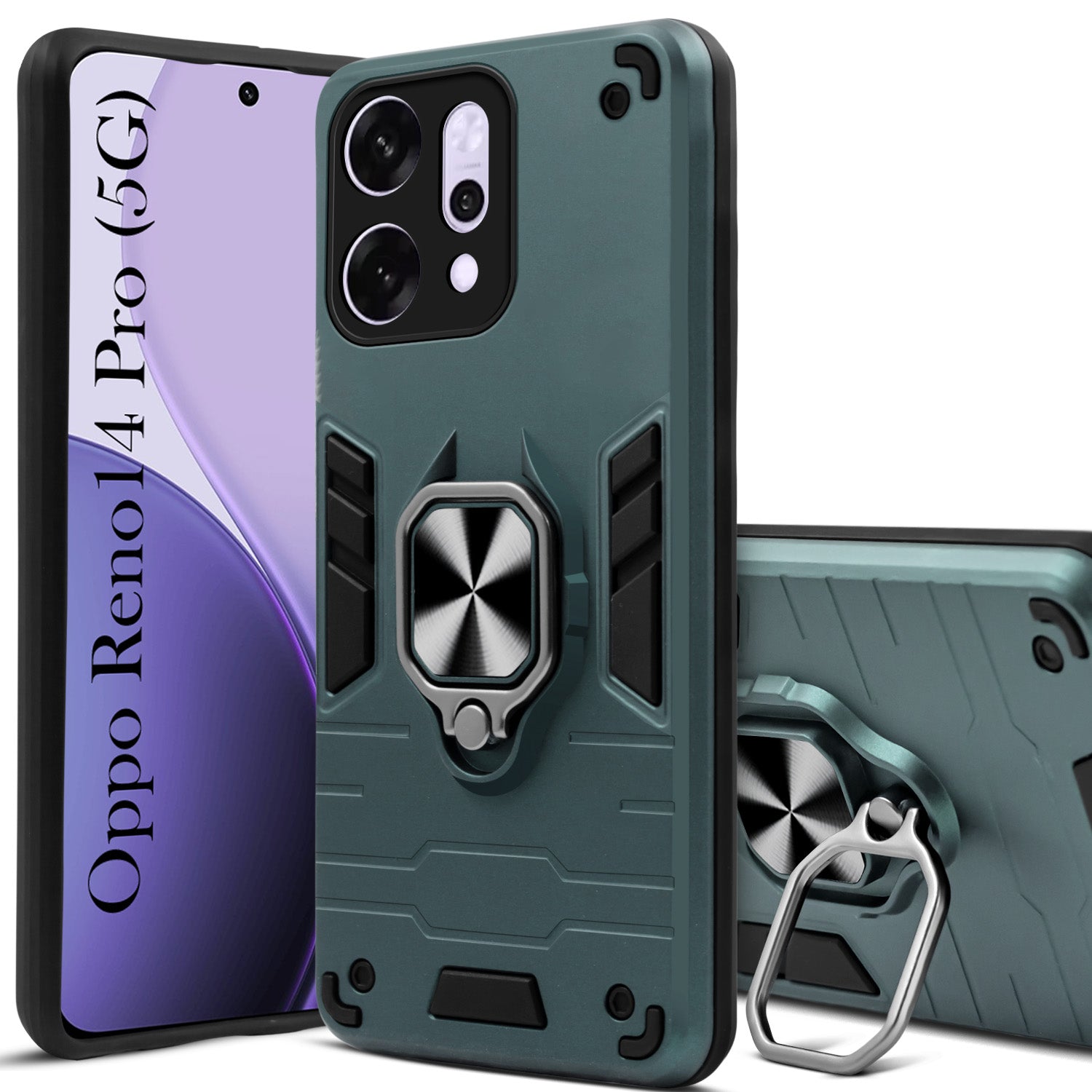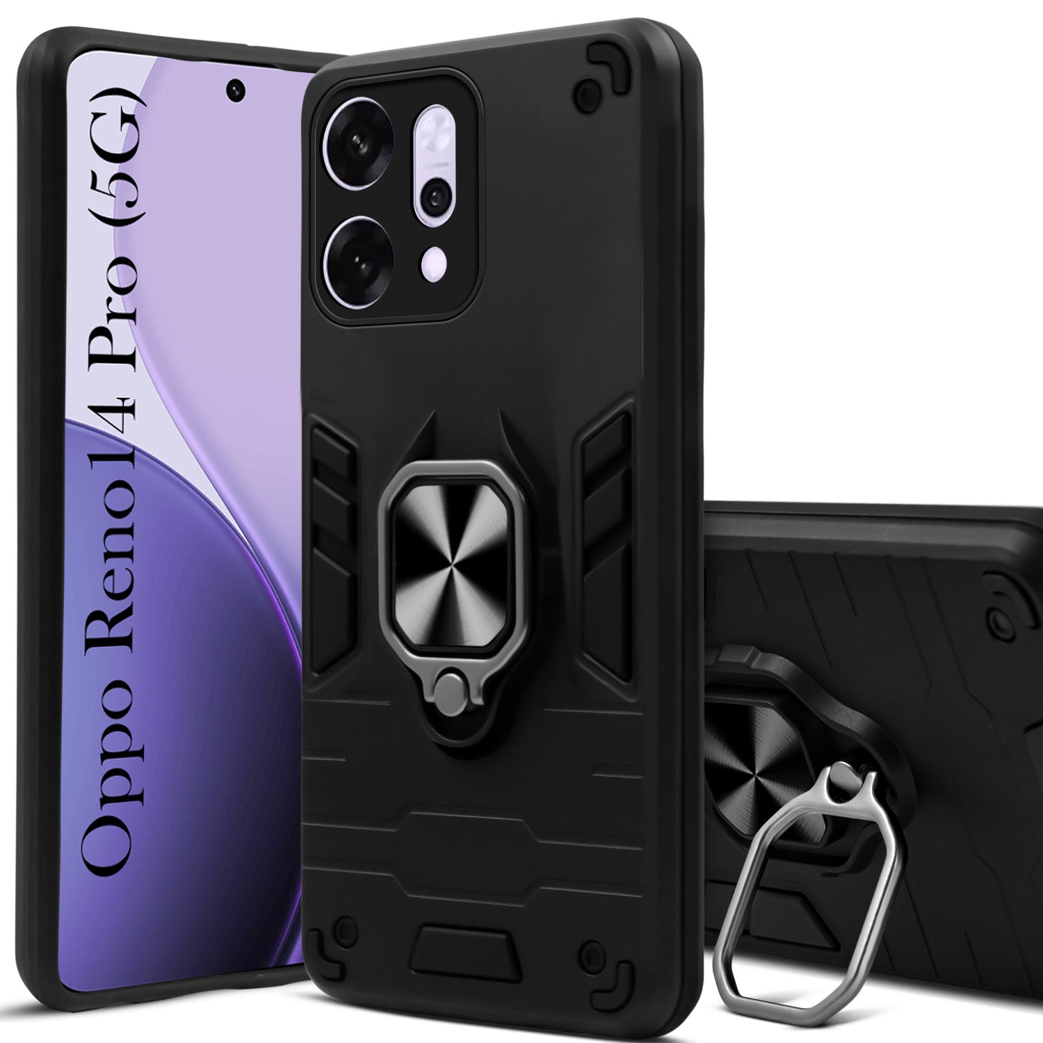 For Oppo Reno14 Pro 5G | Oppo Reno 14 Pro 5G Back Cover Case (Shockproof Dual Layer Polycarbonate |Ring Holder Kickstand)
