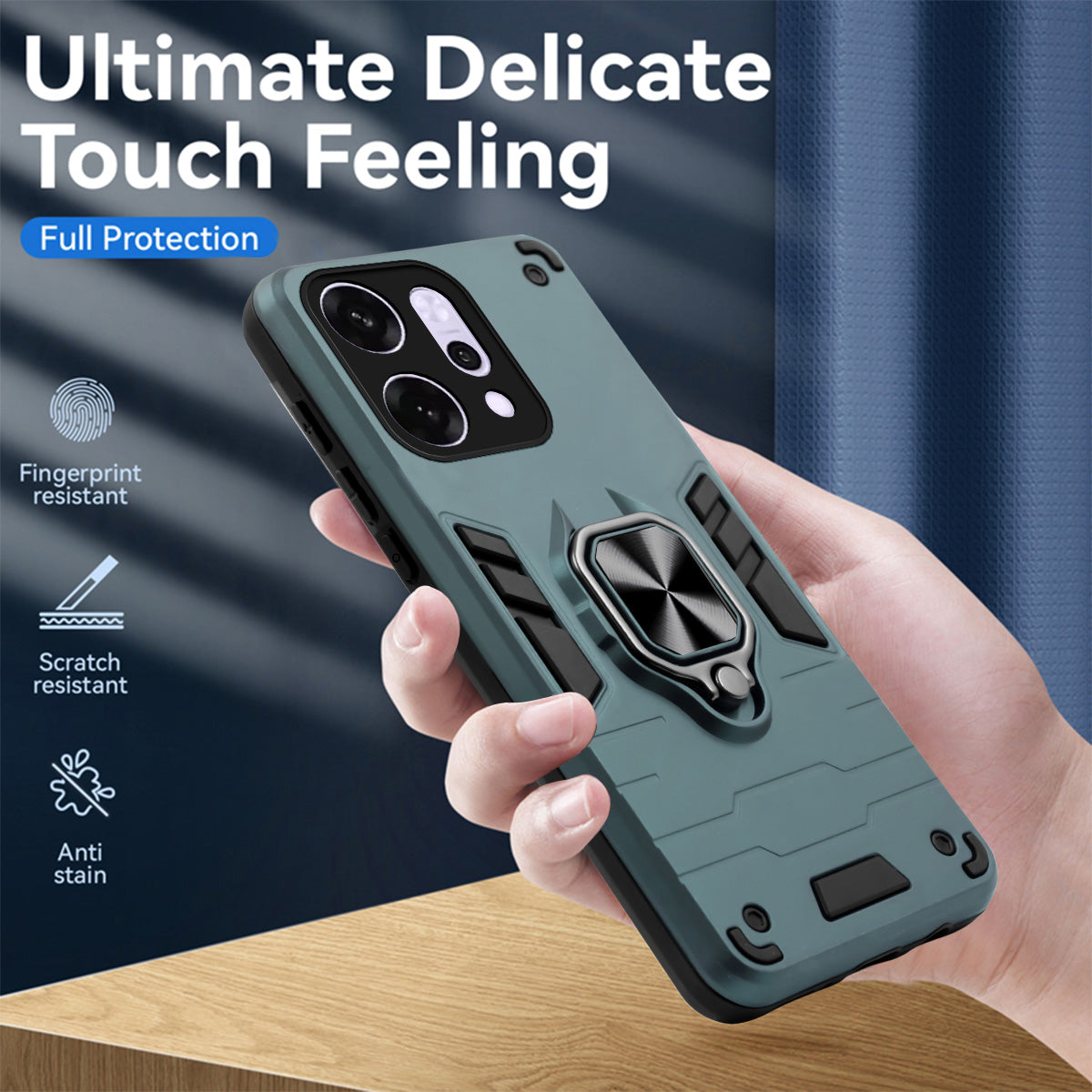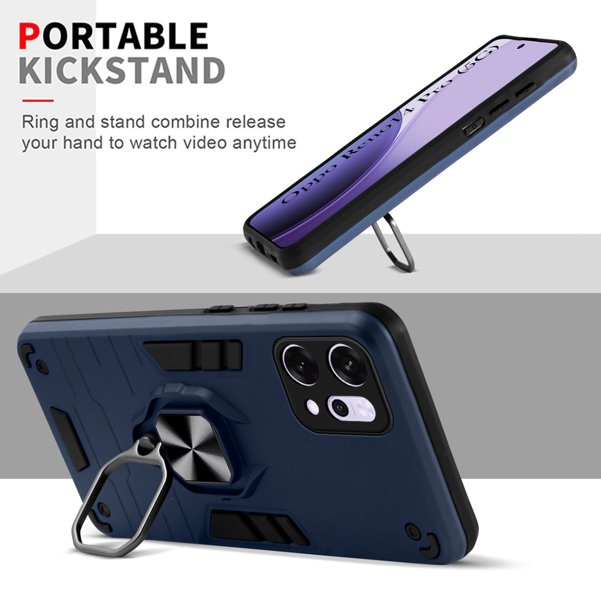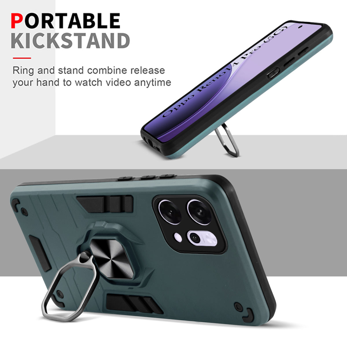 For Oppo Reno14 Pro 5G | Oppo Reno 14 Pro 5G Back Cover Case (Shockproof Dual Layer Polycarbonate |Ring Holder Kickstand)