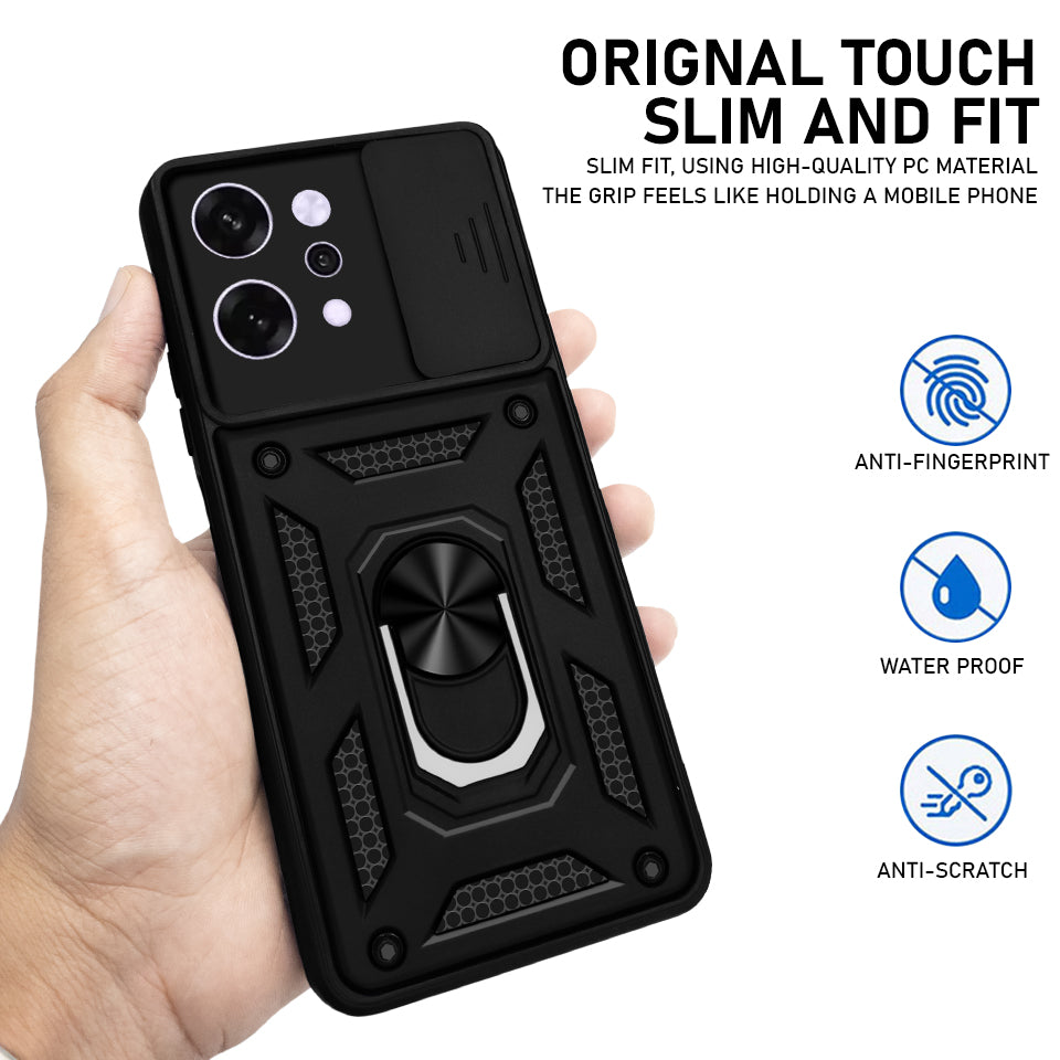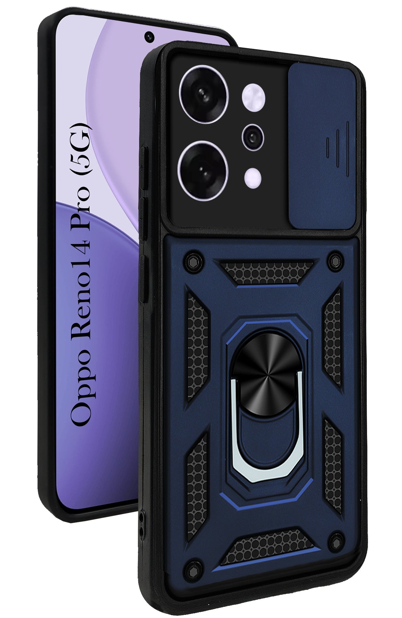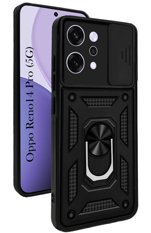 For Oppo Reno14 Pro 5G | Oppo Reno 14 Pro 5G Back Cover Case (Sliding Shutter Camera Protection | Polycarbonate |Ring Holder Kickstand)