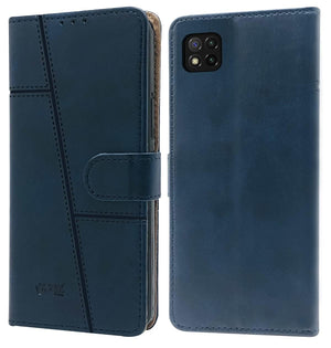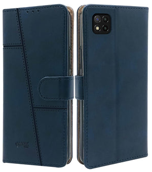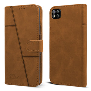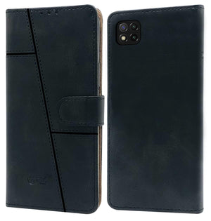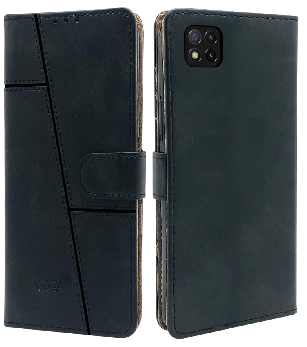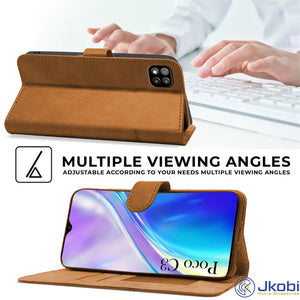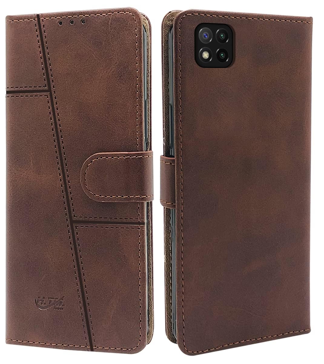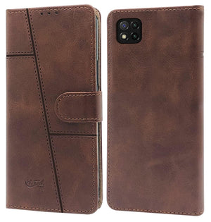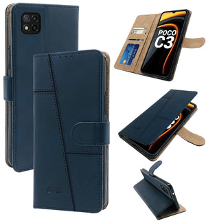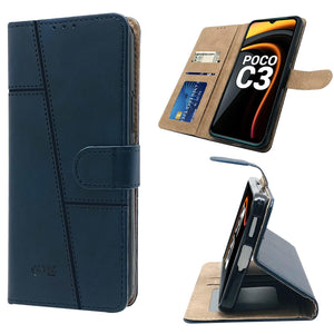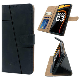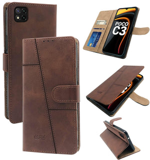 For Poco C3 Flip Cover Case ( Stitched Leather with Magnetic Closure)