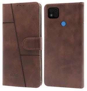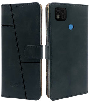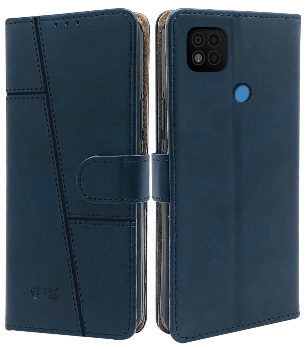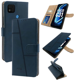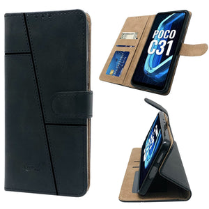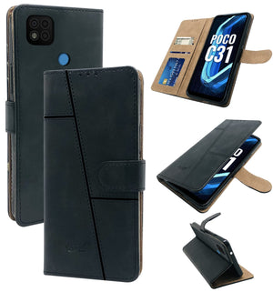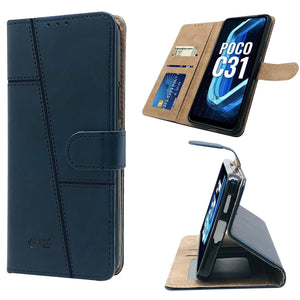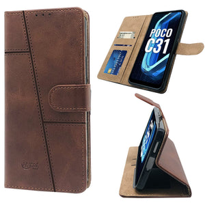 For Poco C31 Flip Cover Case (Stitched Leather Finish | Magnetic Closure | Foldable Stand | Wallet Card Slots)