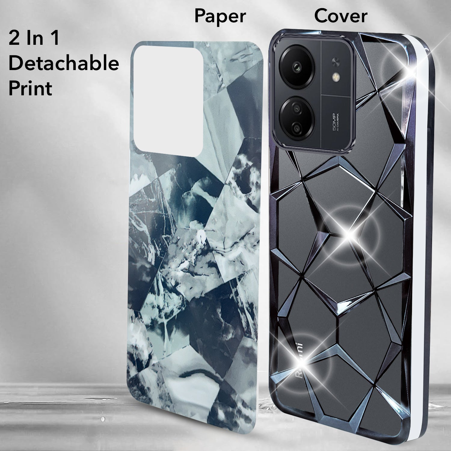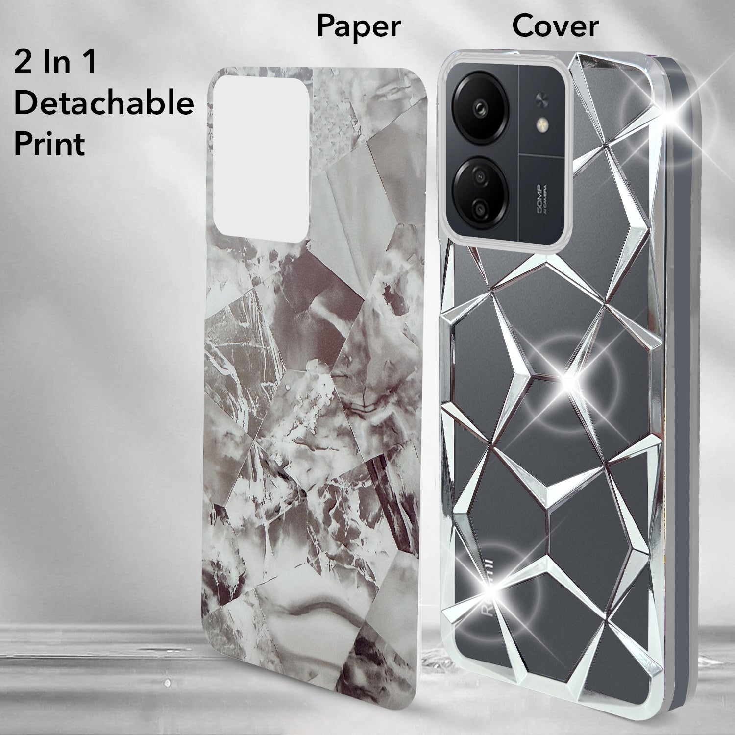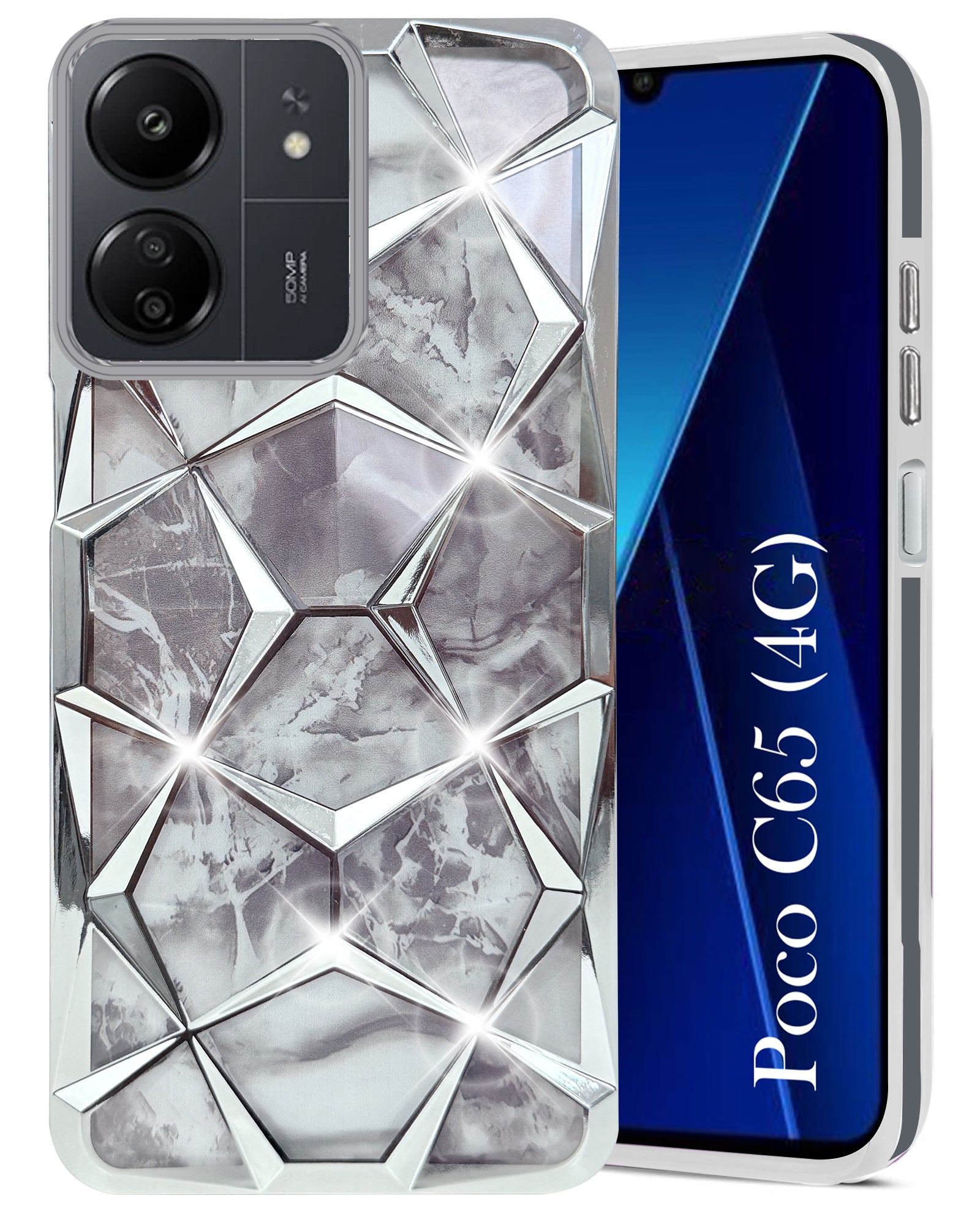 For Poco C65 Back Cover Case (Dual Design Glitter Sparkle and Detachable Diamond Print Case | Soft and Flexible)