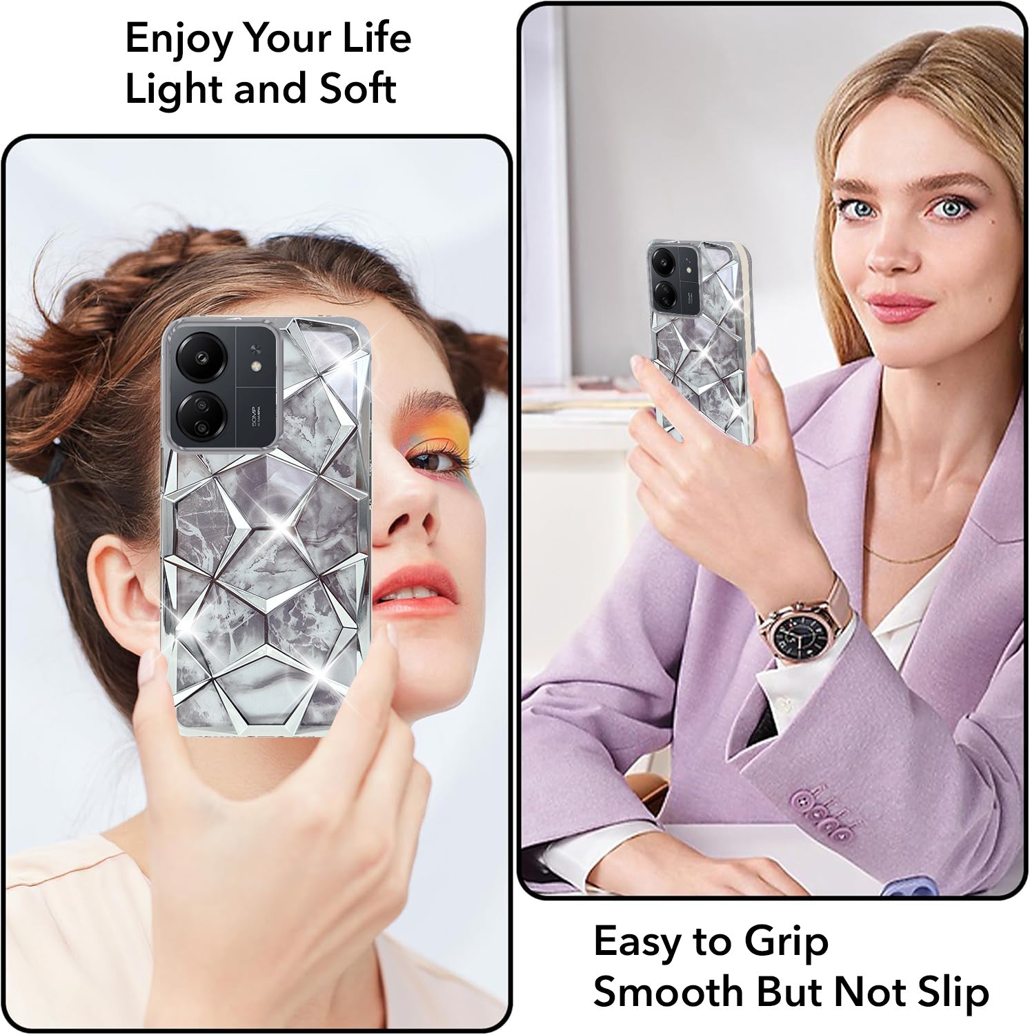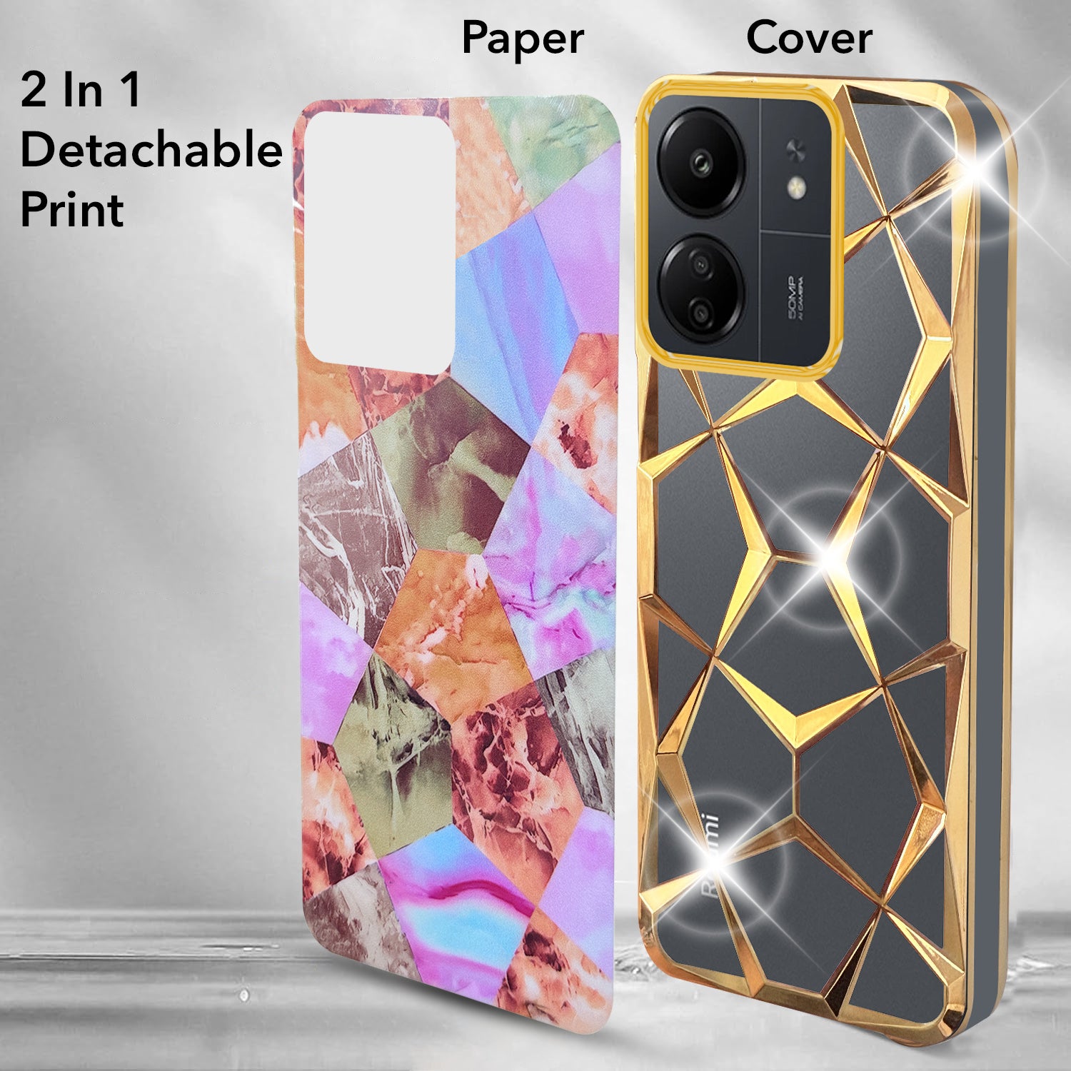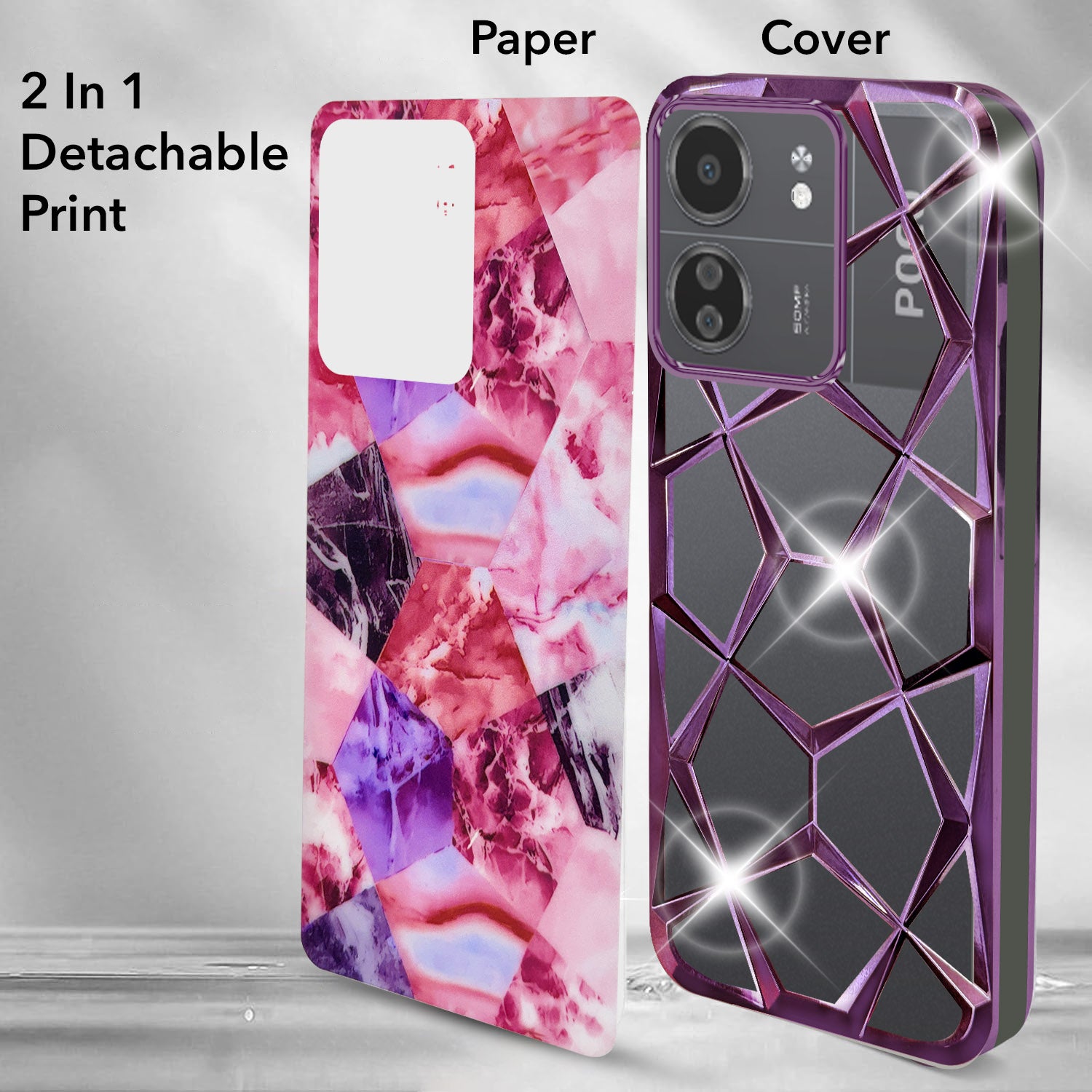 For Poco C65 Back Cover Case (Dual Design Glitter Sparkle and Detachable Diamond Print Case | Soft and Flexible)