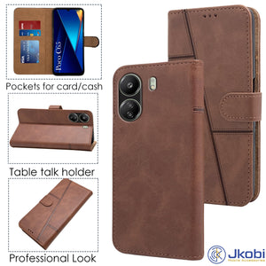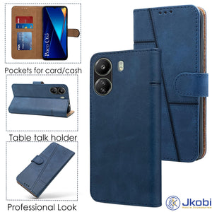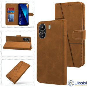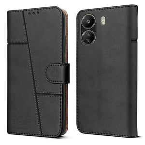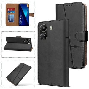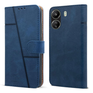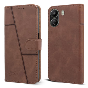 For Poco C65 Flip Cover Case (Stitched Leather with Magnetic Closure)