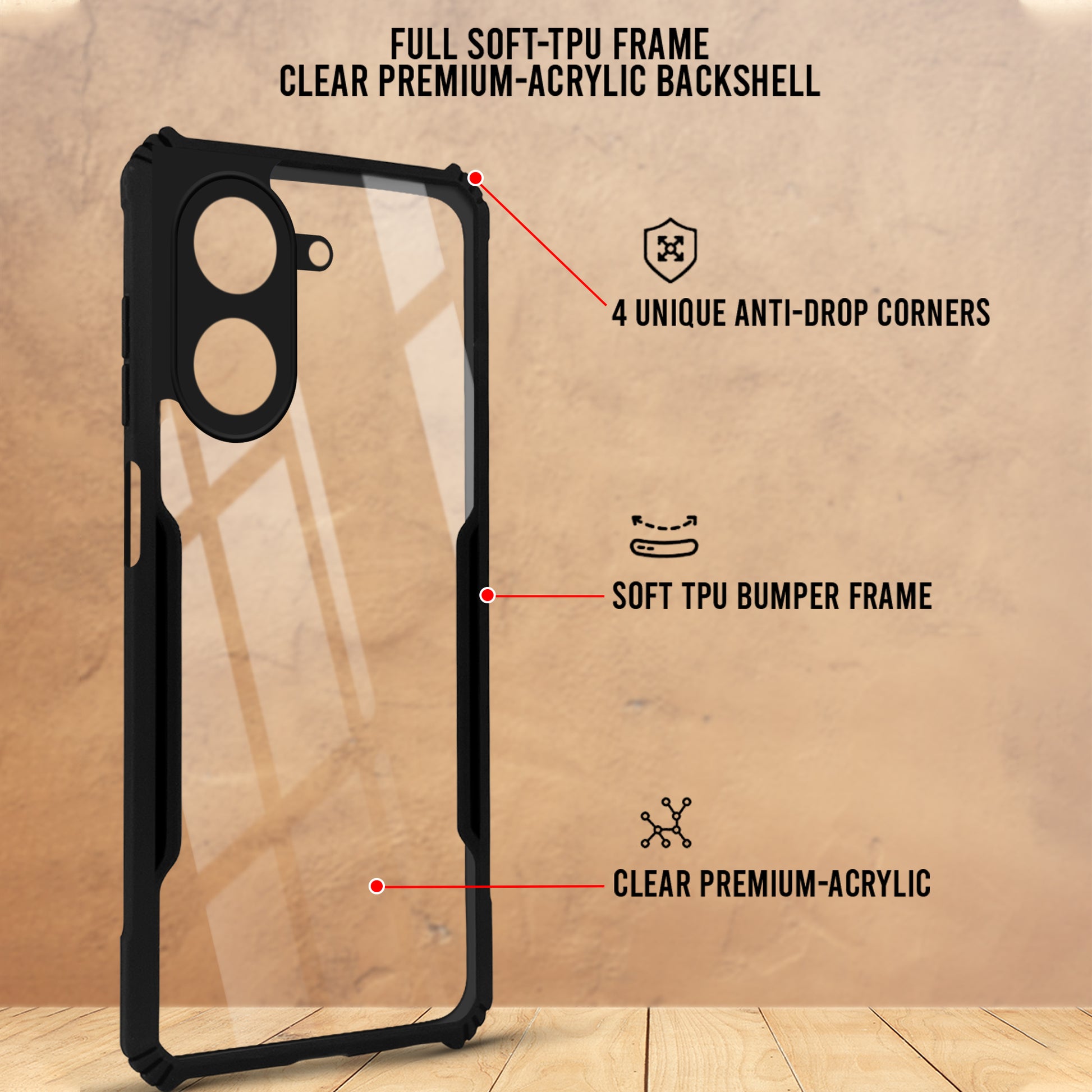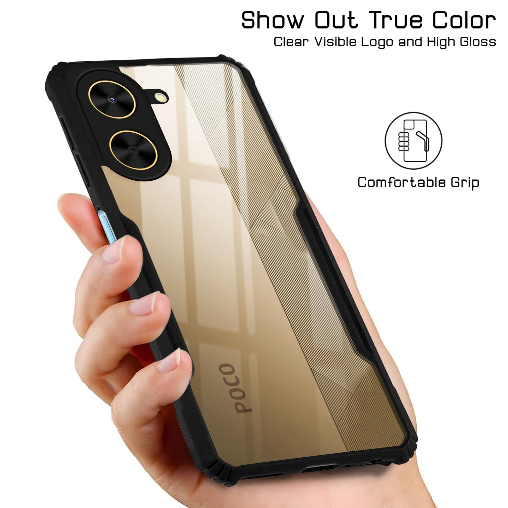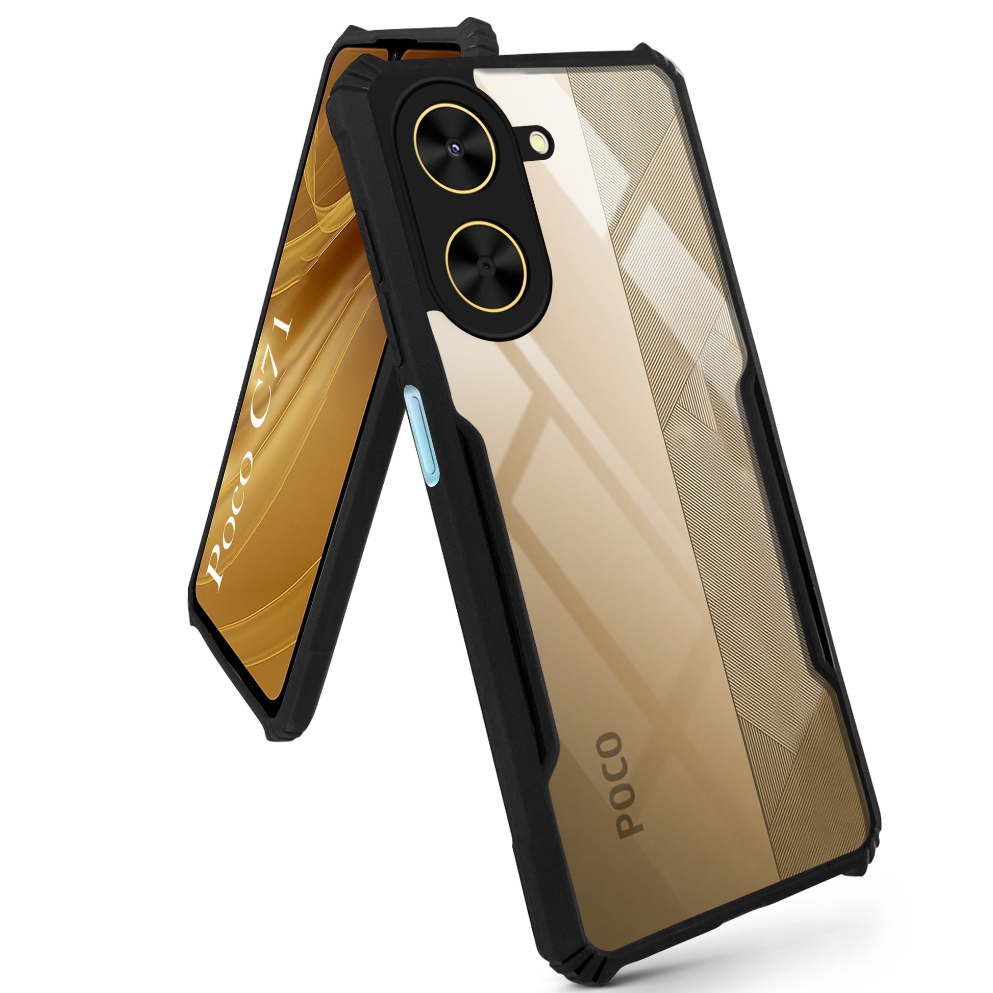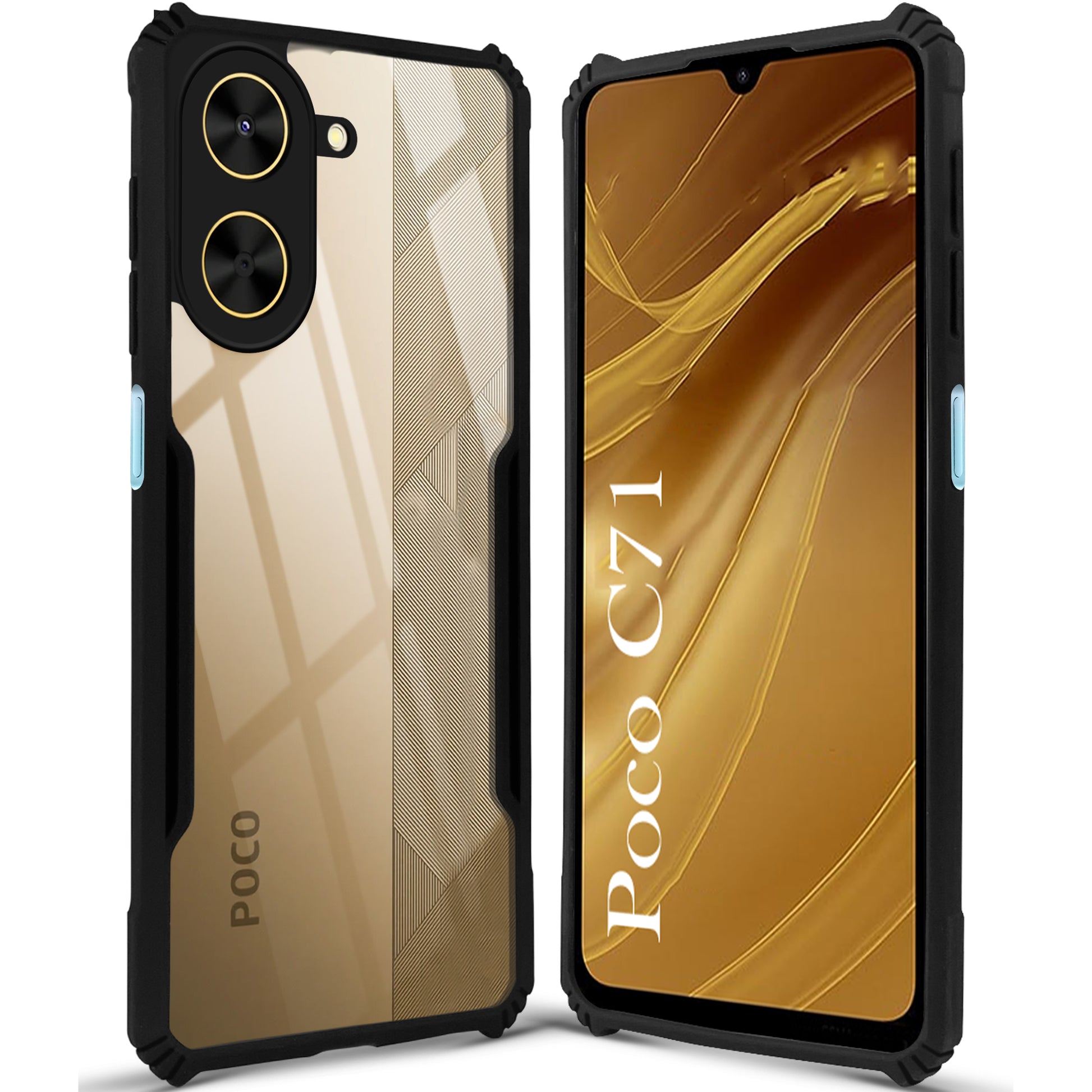 For Poco C71 Back Cover Case (Shockproof with Polycarbonate Clear Panel | Professional Black)