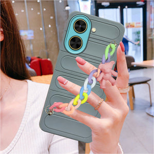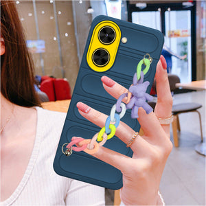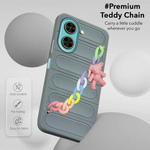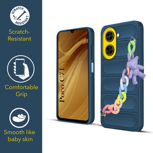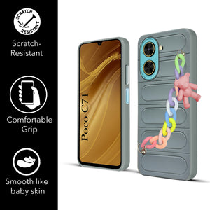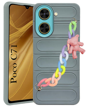 For Poco C71 Back Cover Case (Wrist Hanging Chain | Teddy Bracelet Charms | Matte Liquid Silicone | Camera Protection Ring)
