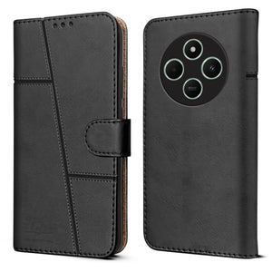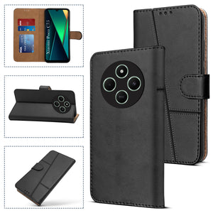 For Poco C75 | Poco M7 Flip Cover Case( Stitched Leather with Magnetic Closure)