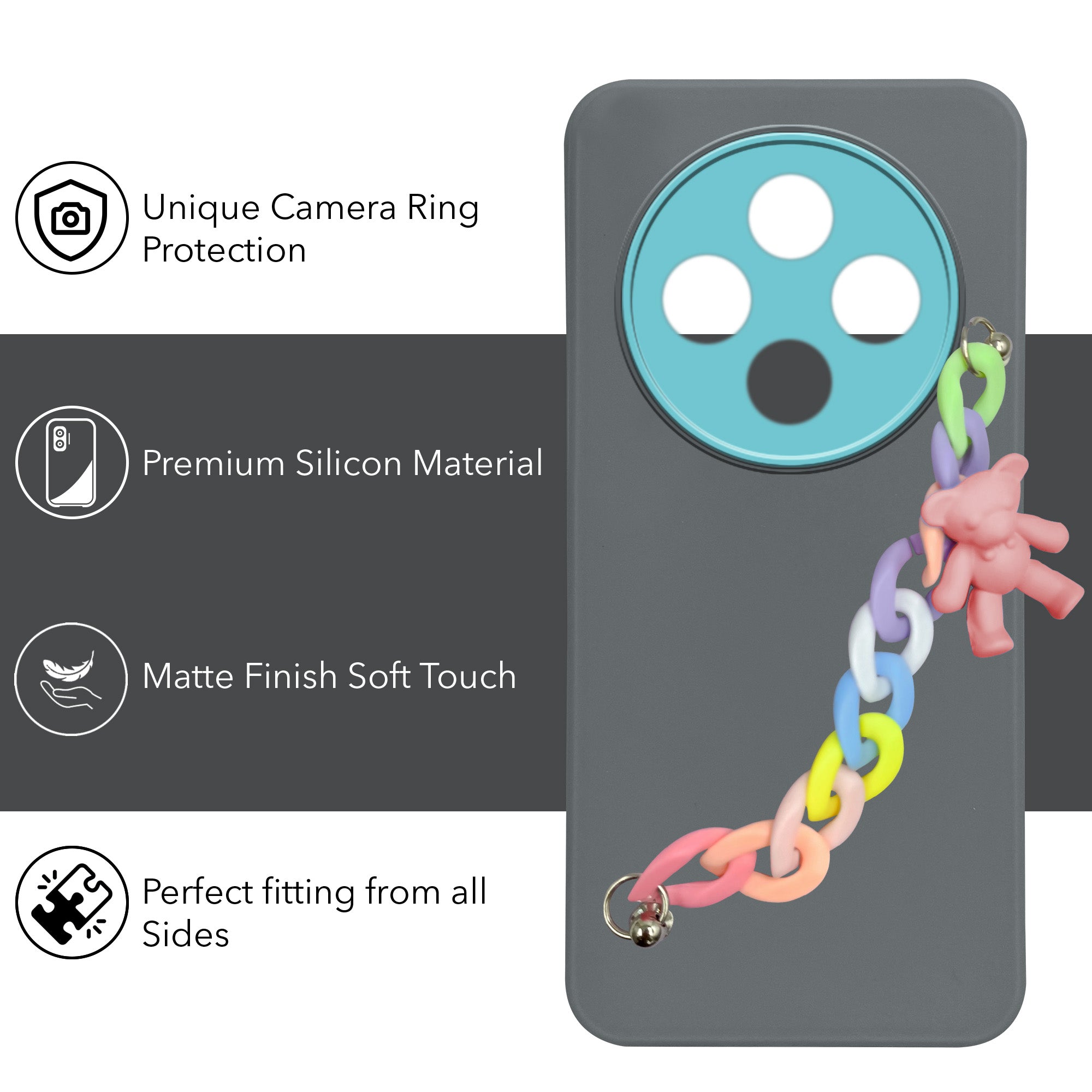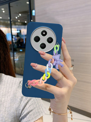 For Poco C75 | Poco M7 Back Cover Case ( Wrist Hanging Chain | Teddy Bracelet Charms | Dual Color Matte Finish | Full Camera Protection | Sleek and