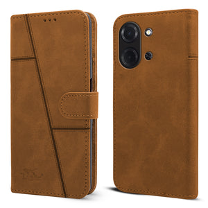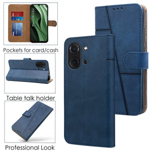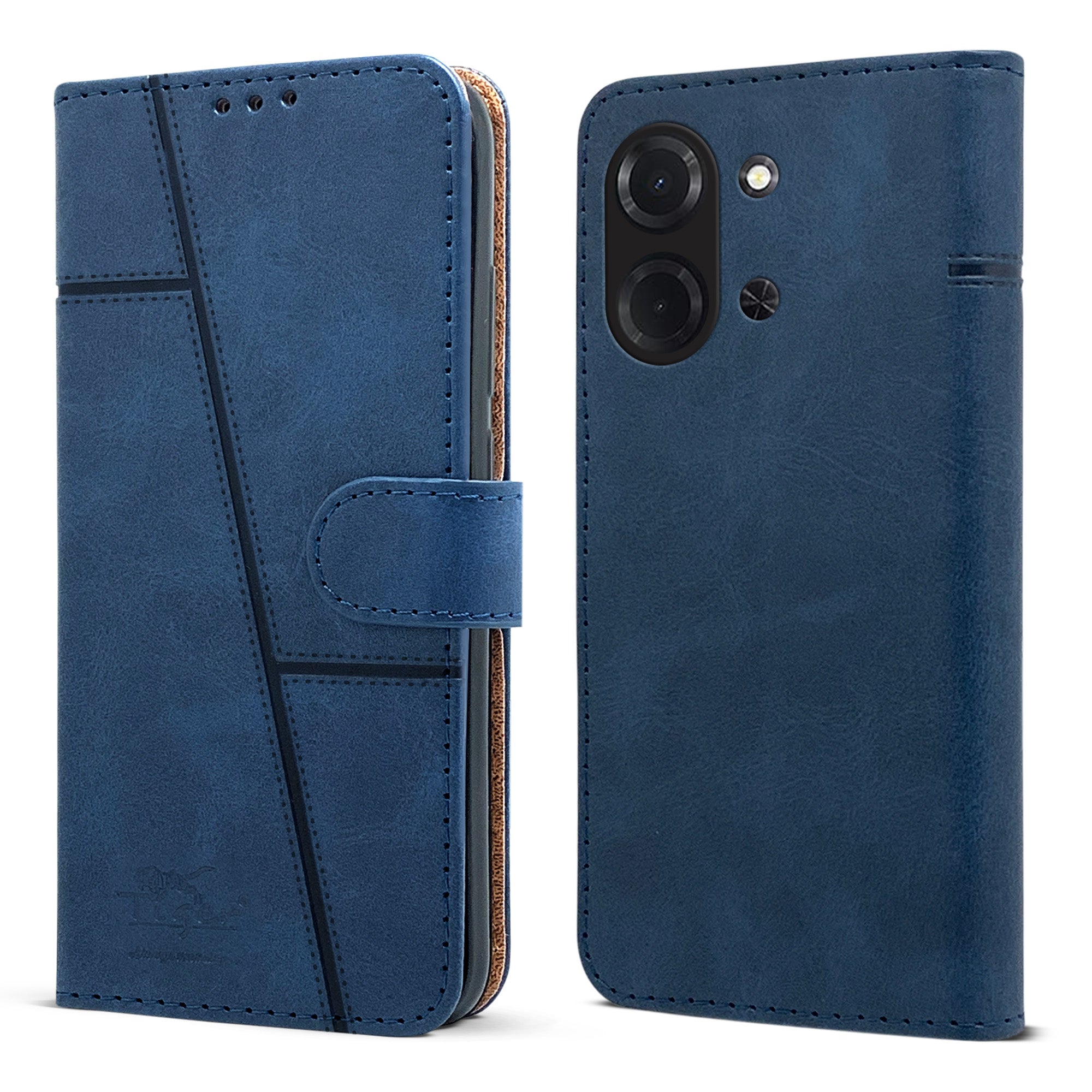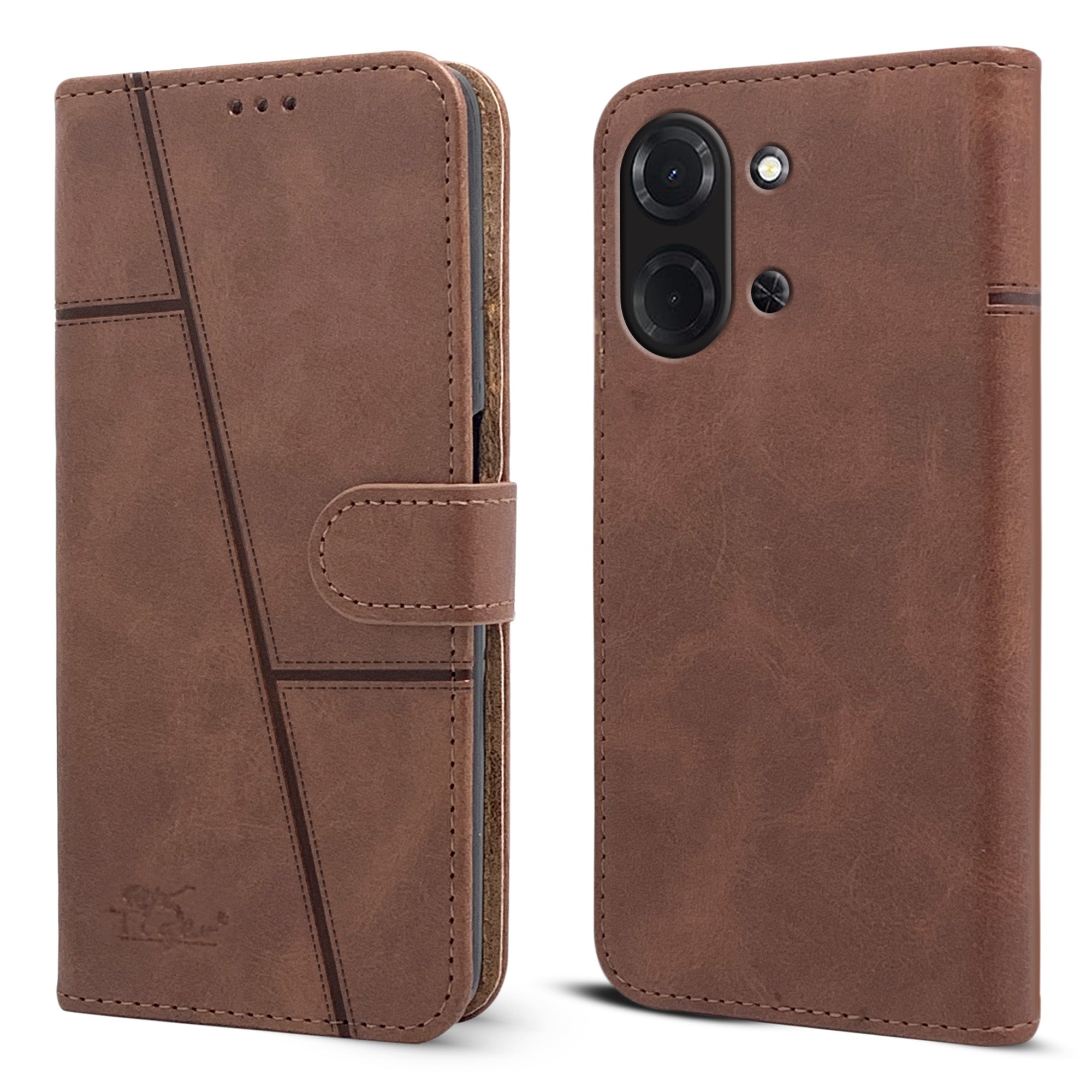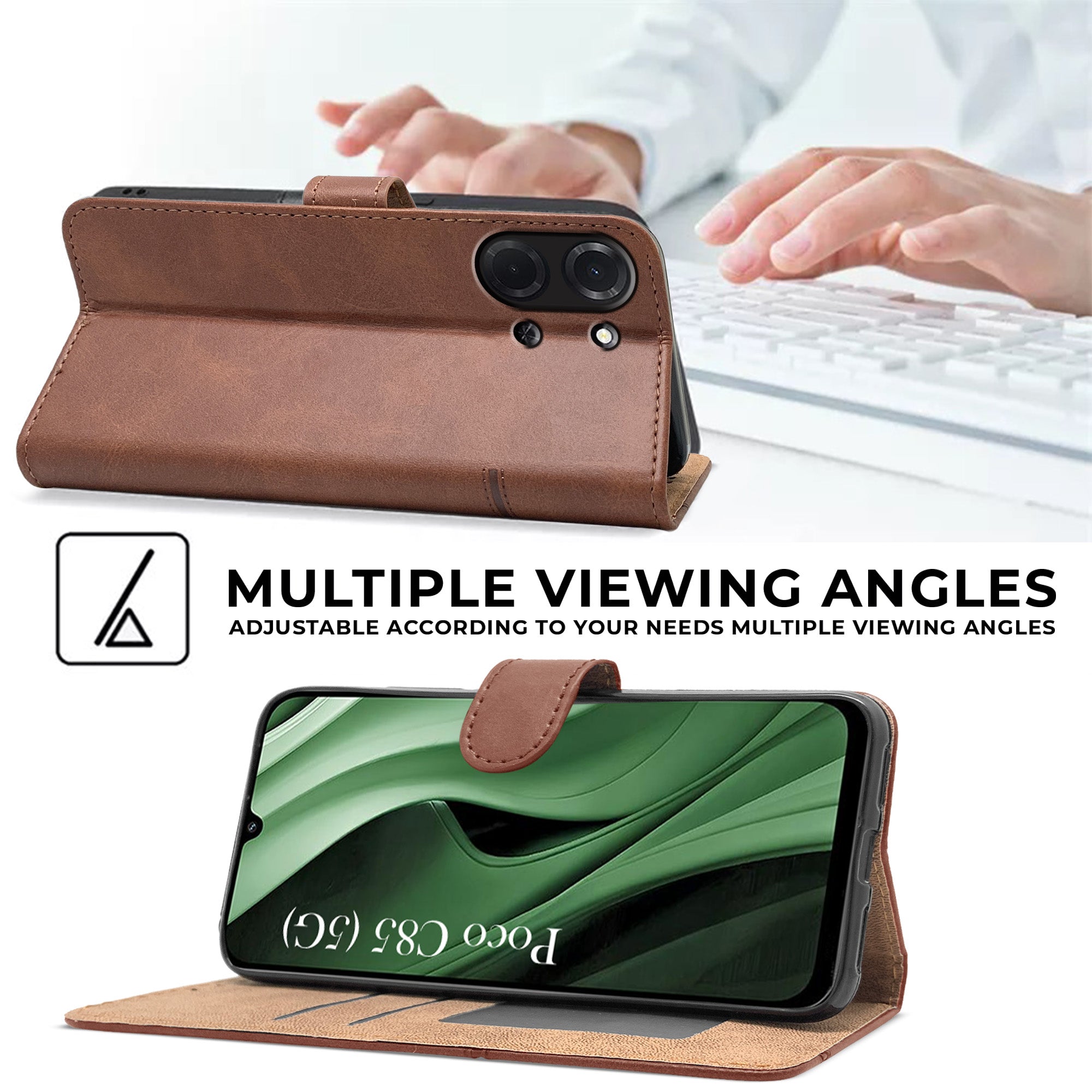 For Poco C85 5G Flip Cover Case (Stitched Leather with Magnetic Closure | Black)