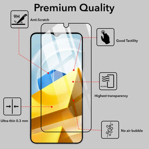 (Pack of 2) For Poco M5 Tempered Glass Military-Grade Gorilla Screen Protector With Installation Kit | Shatterproof, Full Coverage, HD Clear, Scratch Resistant
