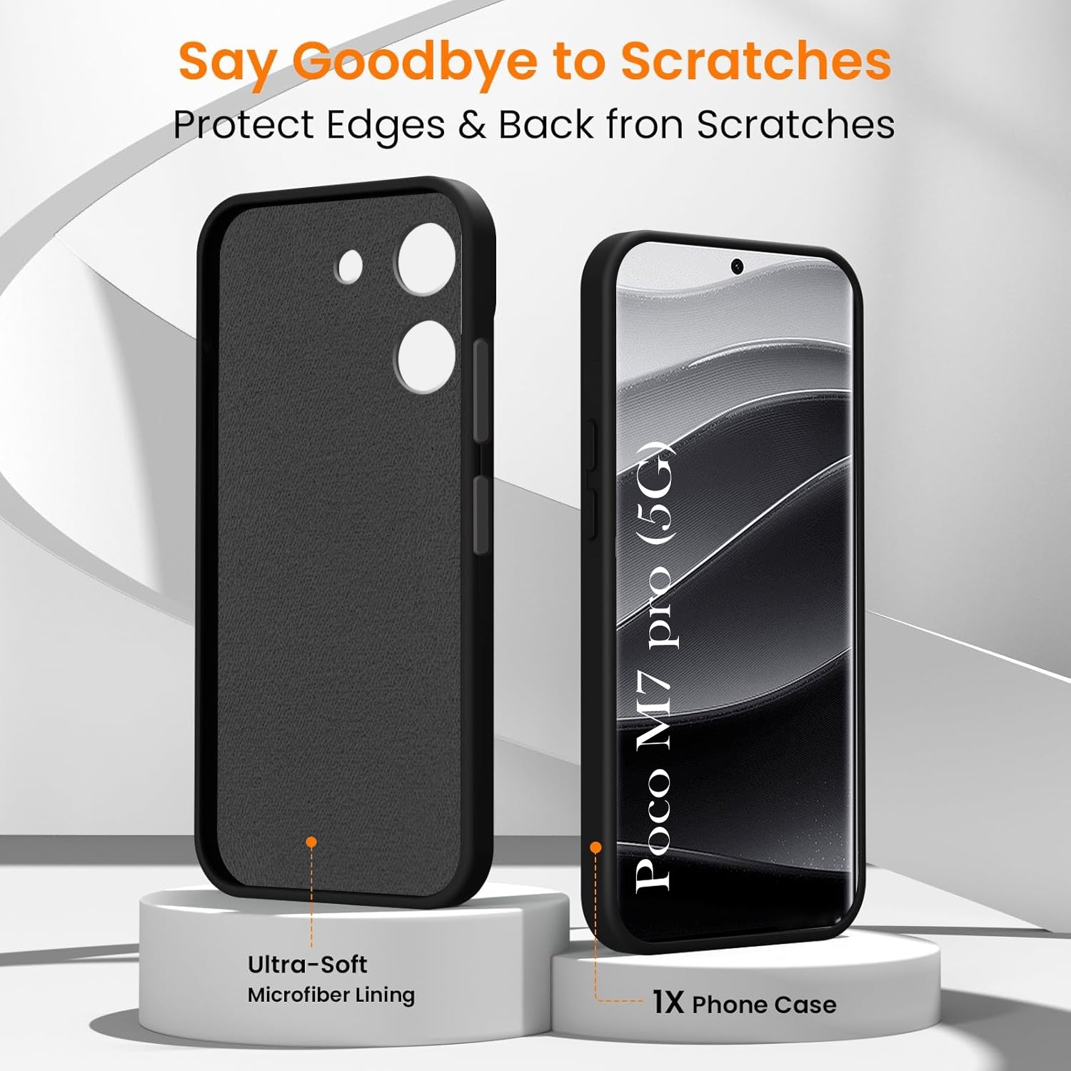For Poco M7 pro 5G Back Cover Case (Textured Grip Design | Micro-Fiber Cloth Inside | Slim and Light Weight | Soft Touch and Feel | Black)