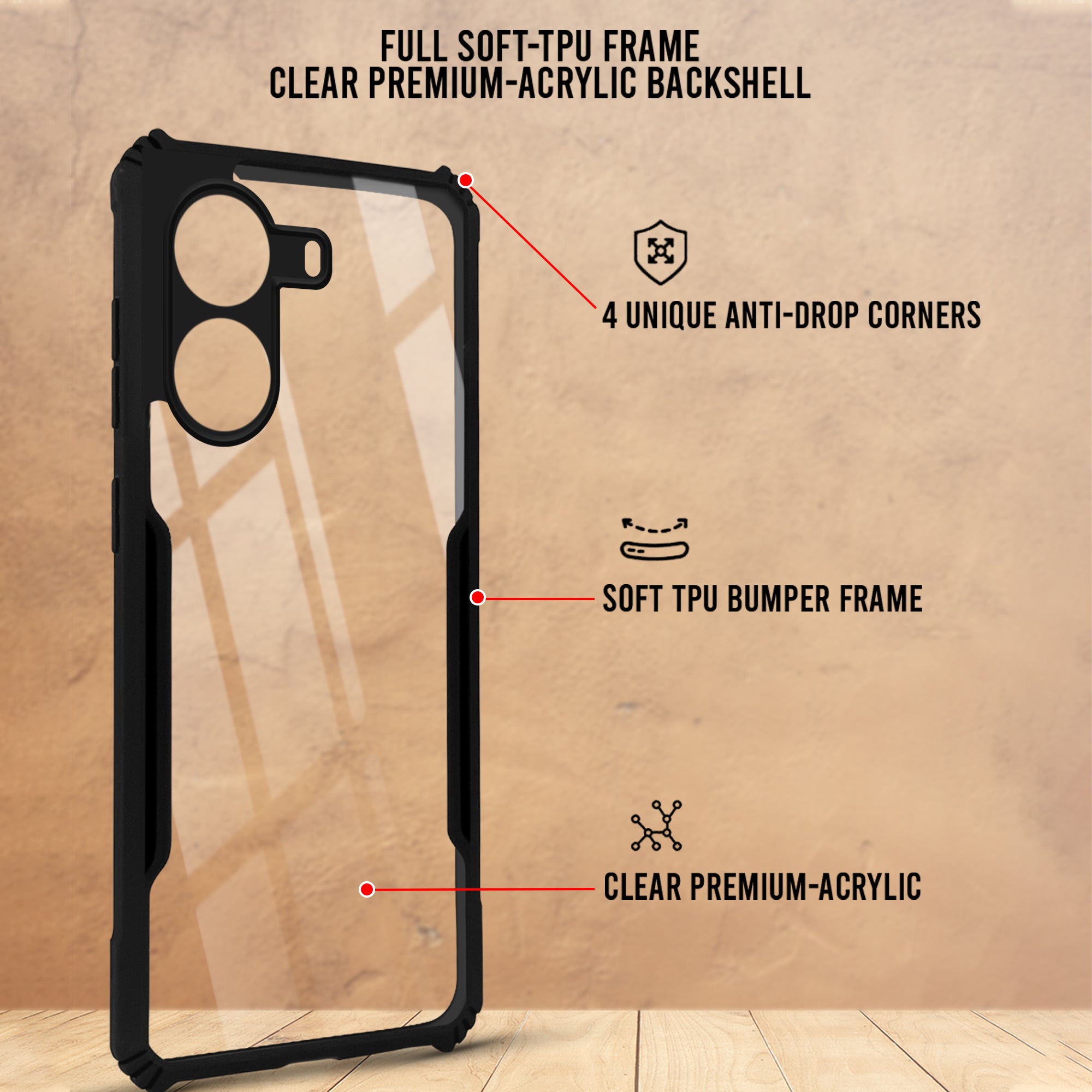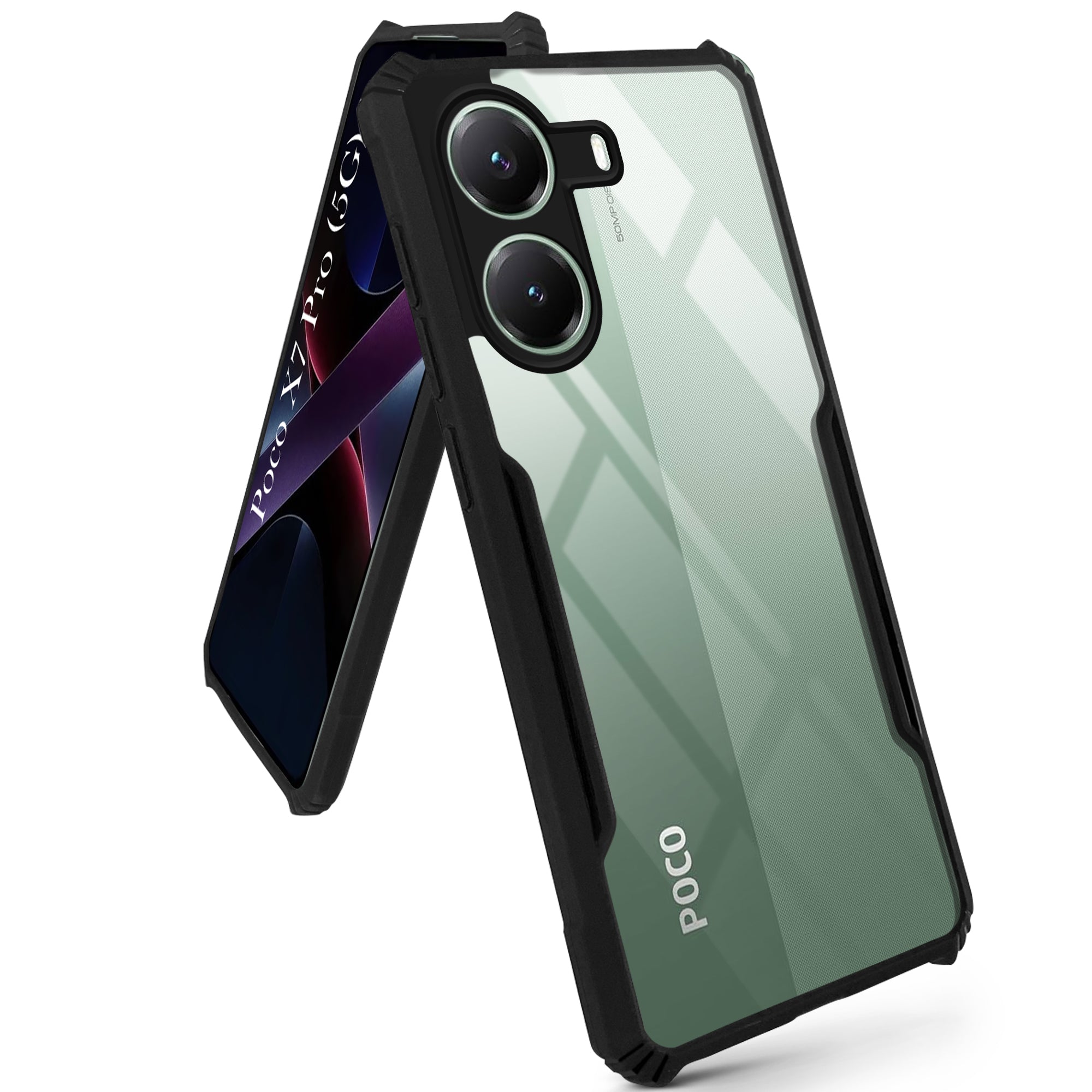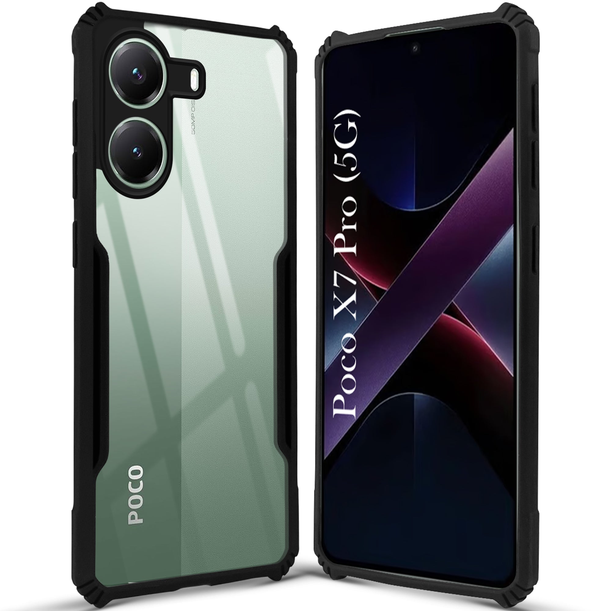 For Poco X7 Pro Back Cover Case ( Shockproof with Polycarbonate Clear Panel | Professional Black)