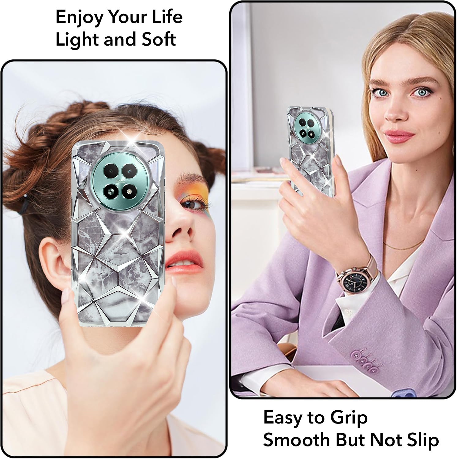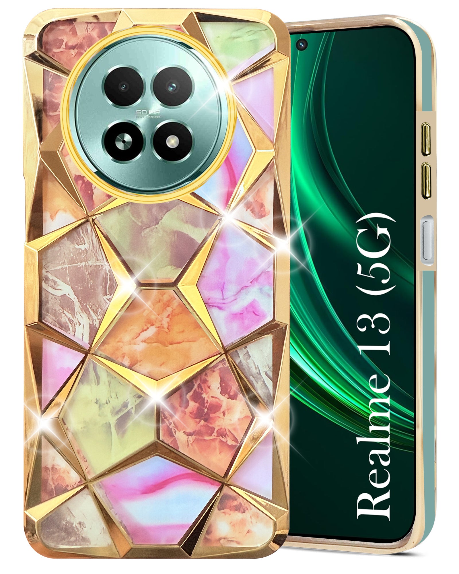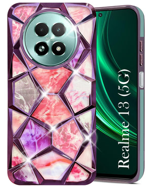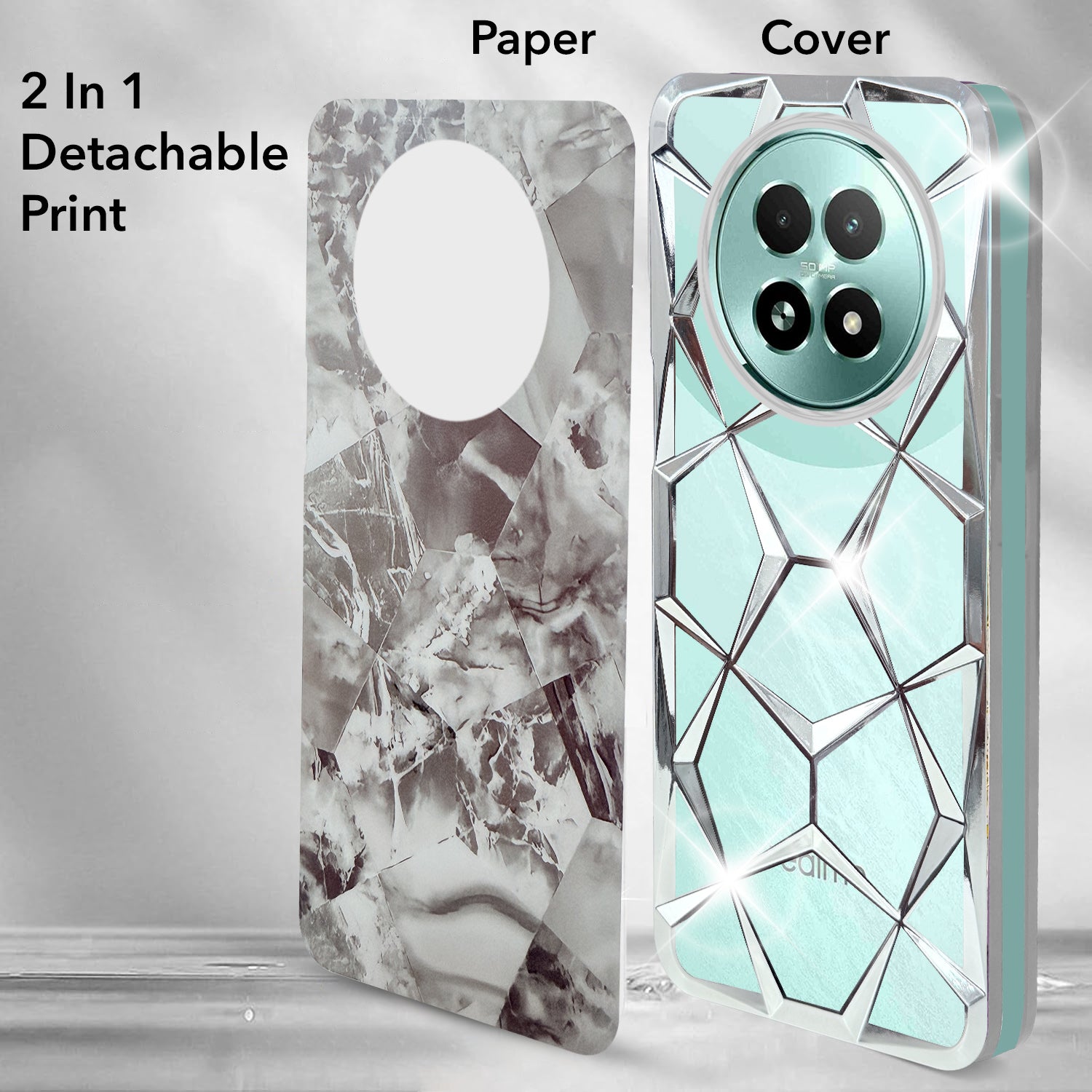 For Realme 13 Back Cover Case (Dual Design Glitter Sparkle and Detachable Diamond Print Case | Soft and Flexible)