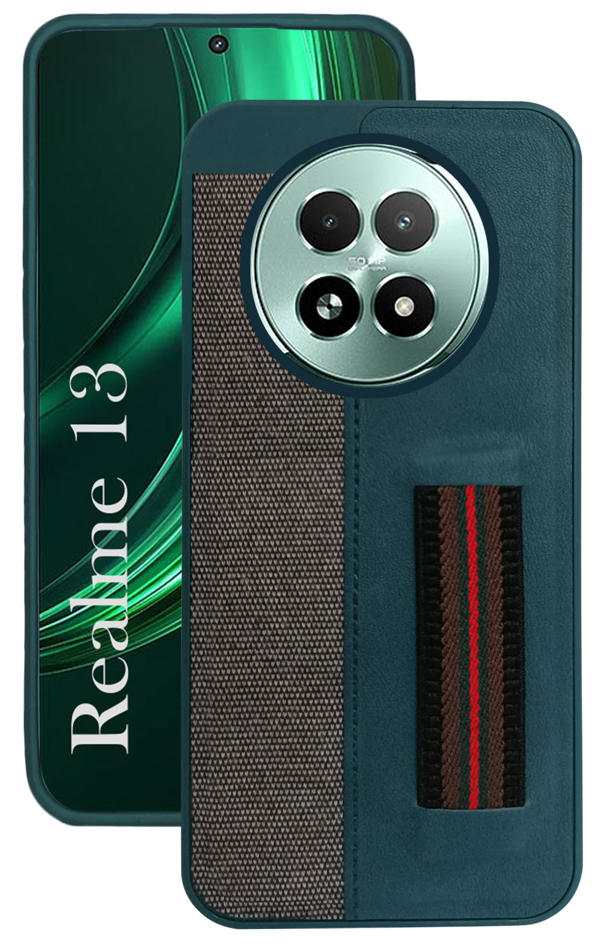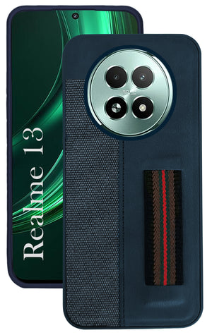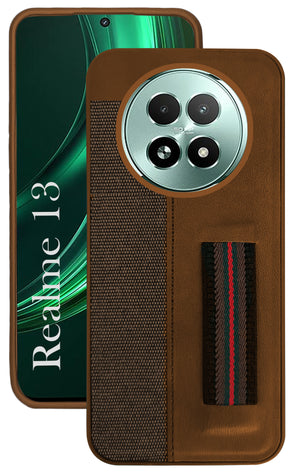 For Realme 13 Back Cover Case ( Professional PU Leather | Strip Chain Holder Socket)
