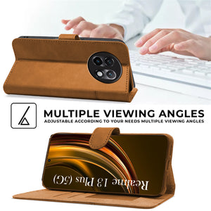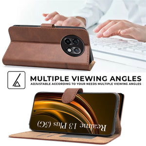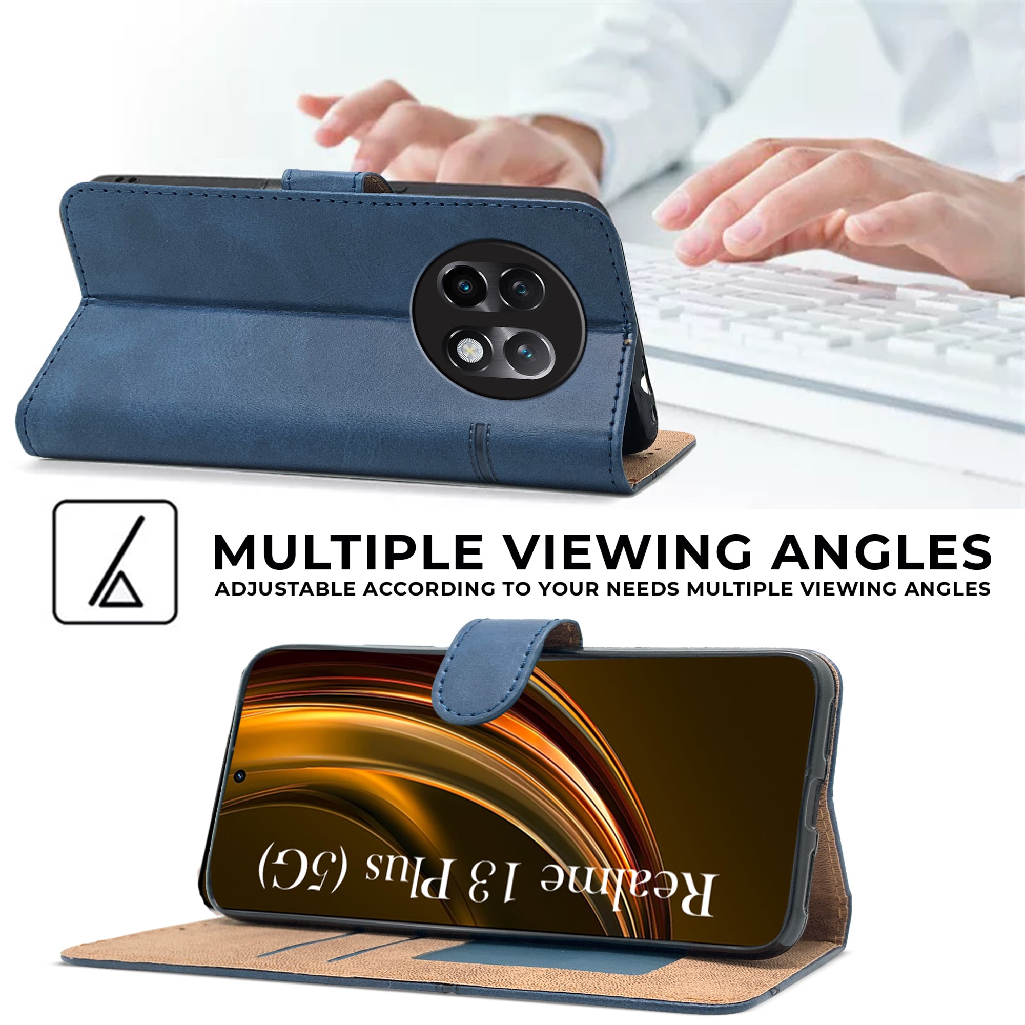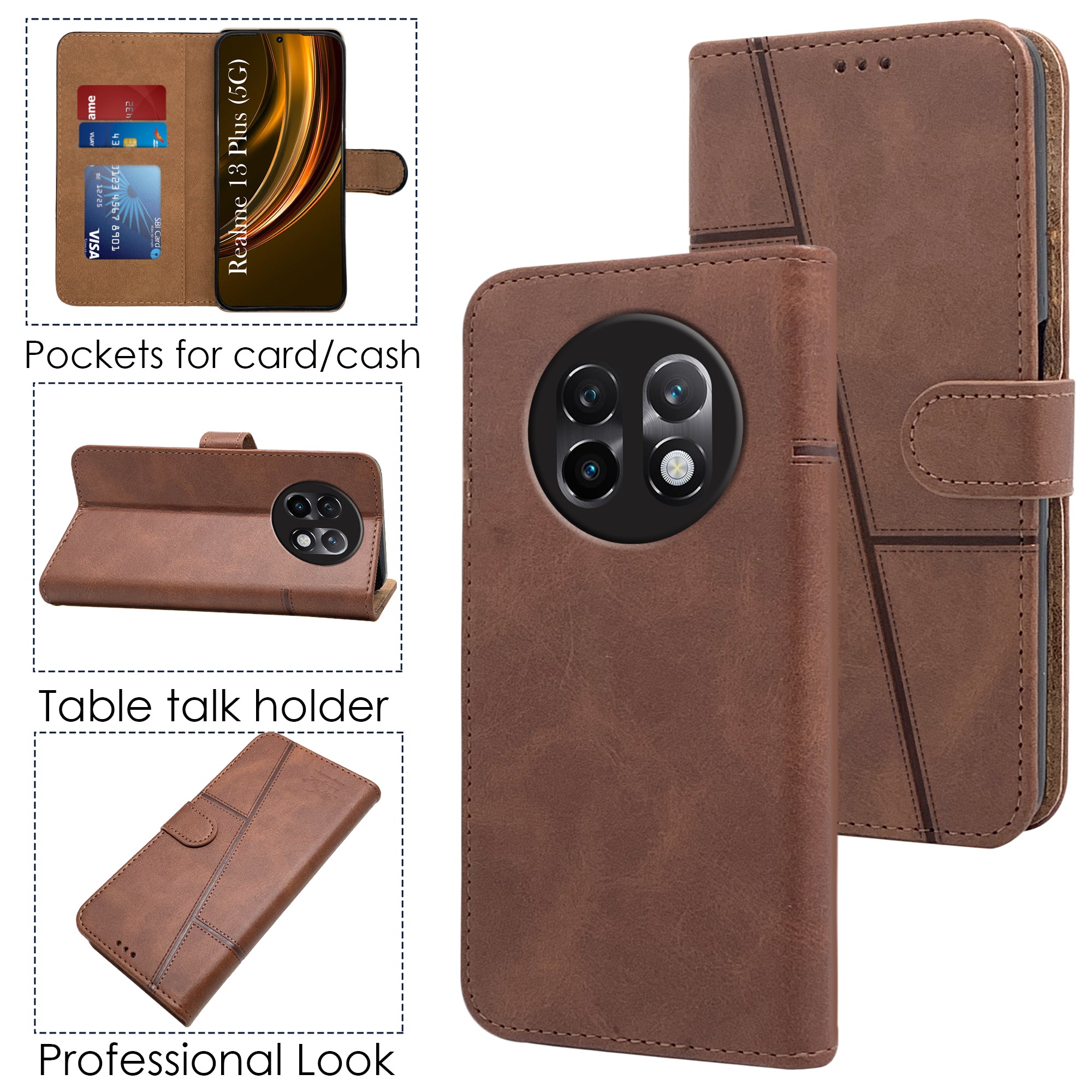 For Realme 13 Plus Flip Cover Case ( Stitched Leather with Magnetic Closure)