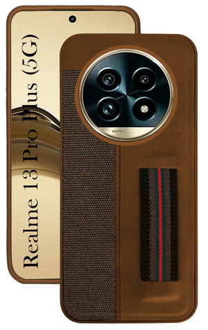 For Realme 13 Pro | Realme 13 Pro Plus 5G Back Cover Case ( Professional PU Leather | Strip Chain Holder Socket)