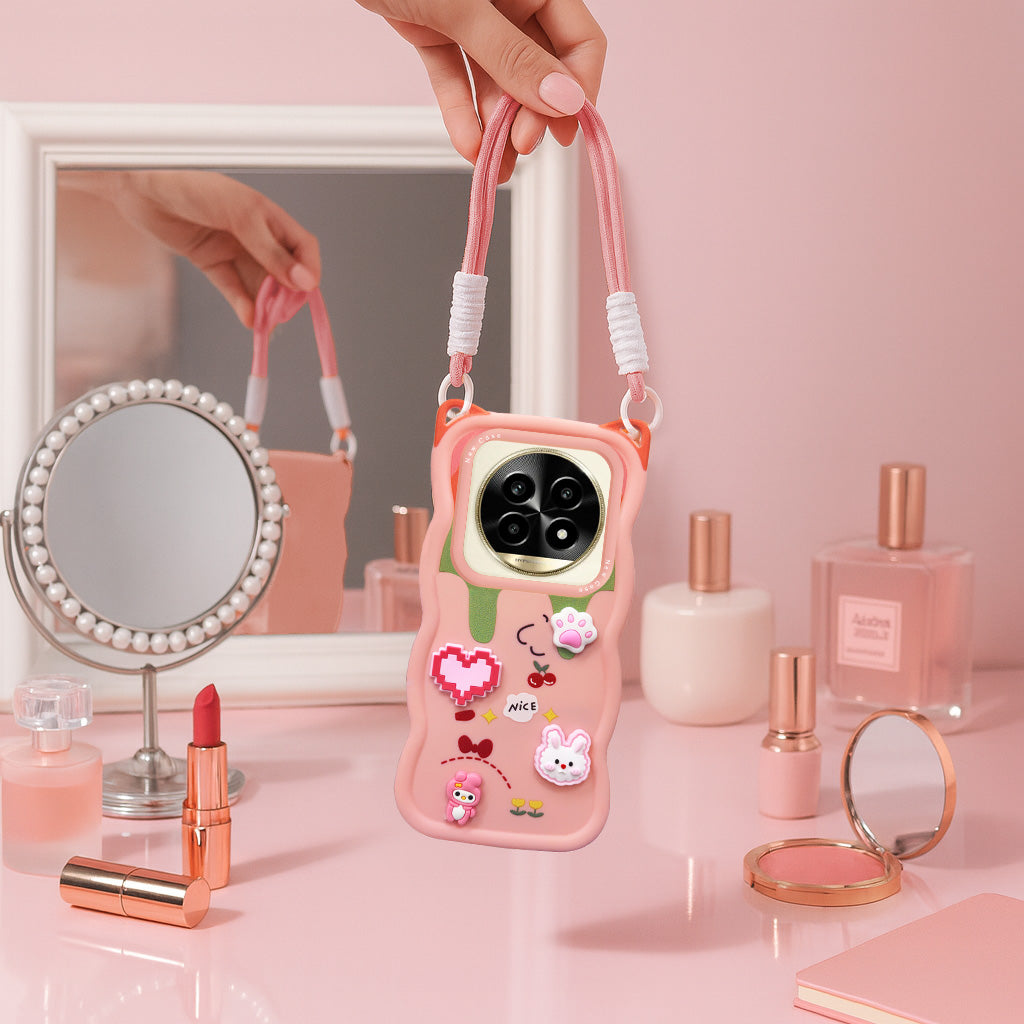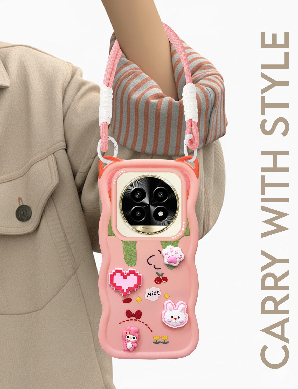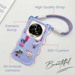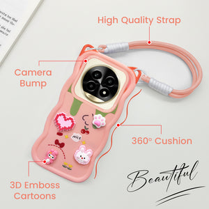 For Realme 14 Pro Lite Back Case Cover Strap(3D embossed Figures | Strap Holder | 360* Soft Cushion with Camera Bump)