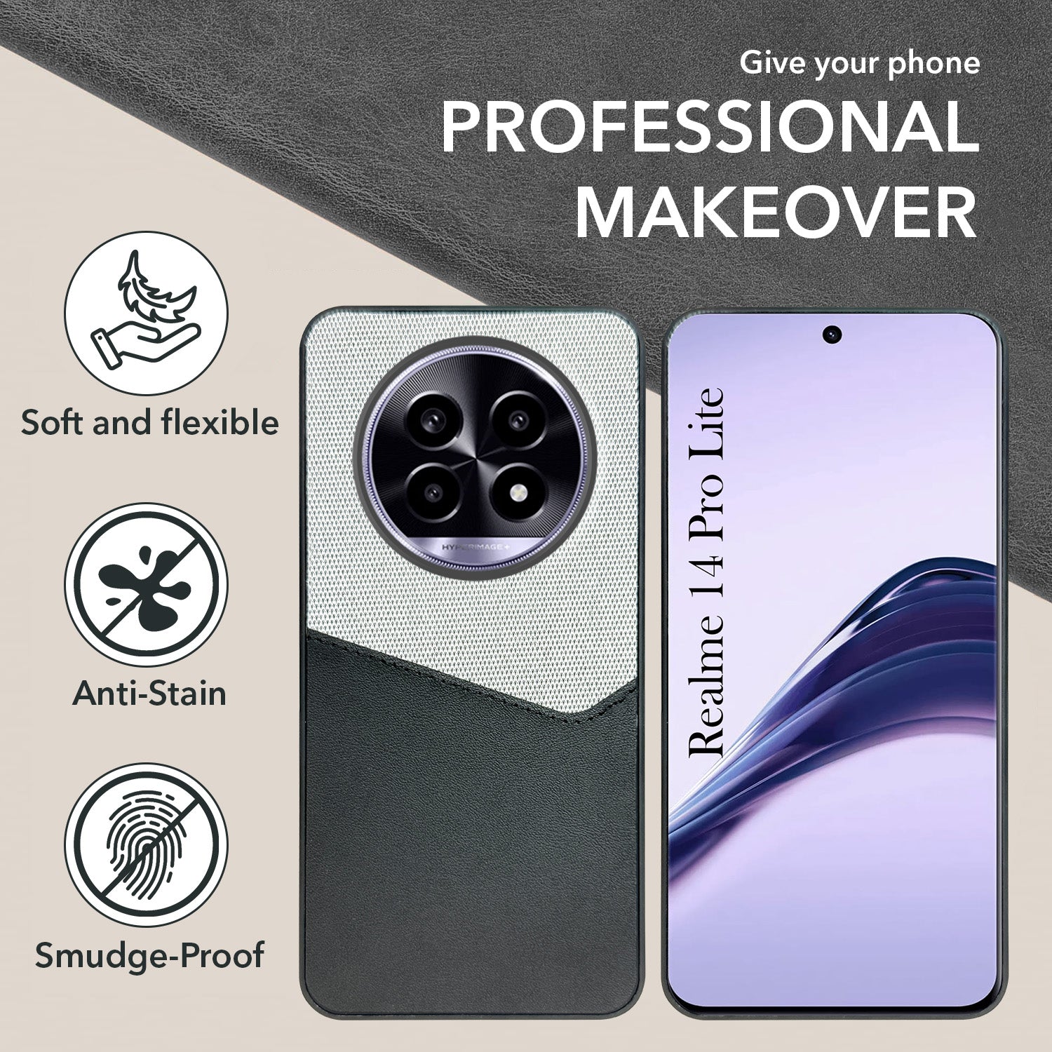 For Realme 14 Pro Lite Back Cover Case (Dual PU Leather Stitch | Professional Minimalist | Soft and Flexible)