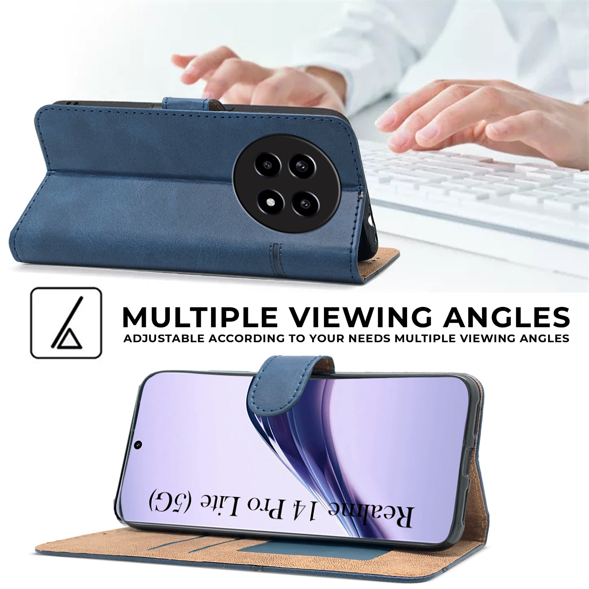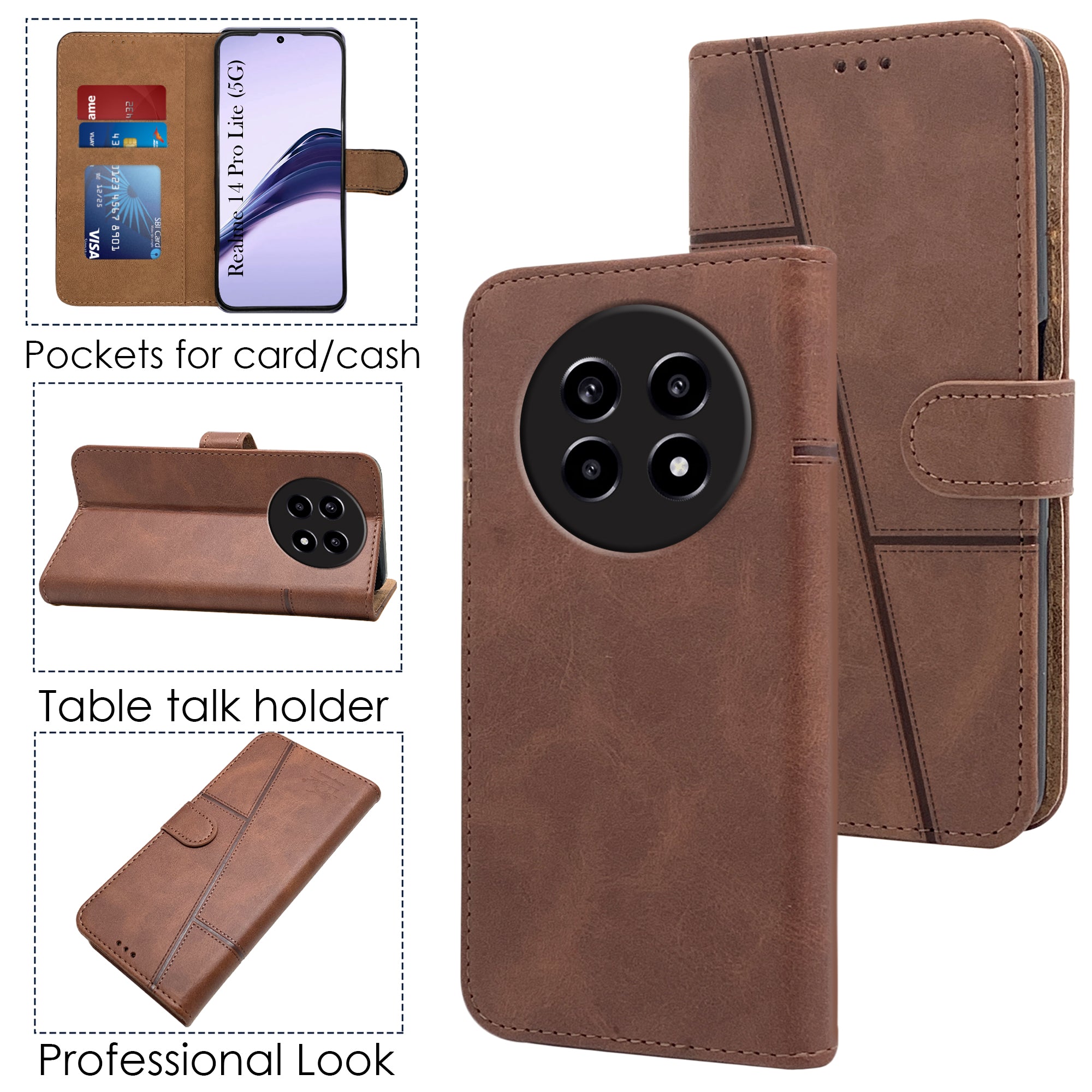 For Realme 14 Pro Lite Flip Cover Case (Stitched Leather with Magnetic Closure)
