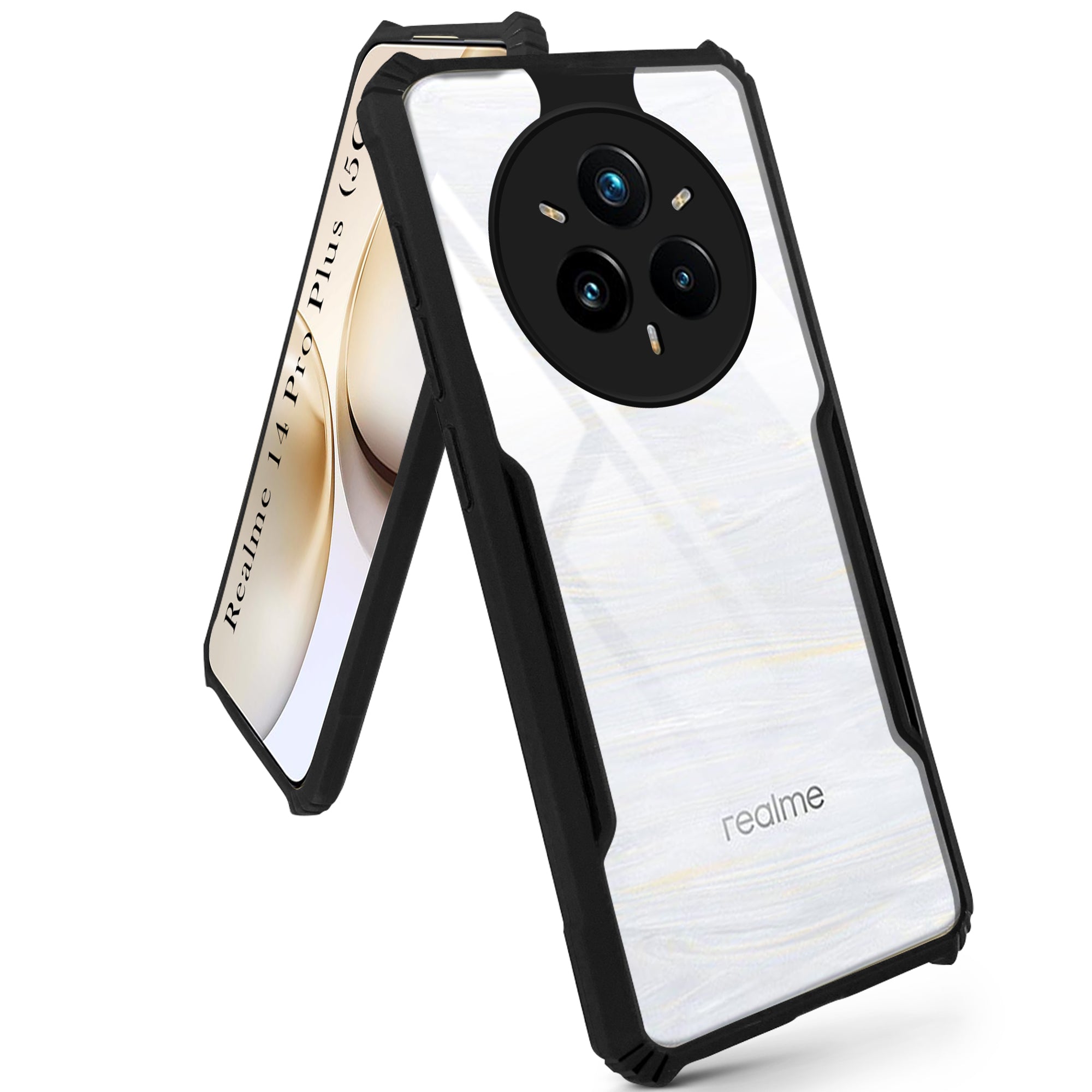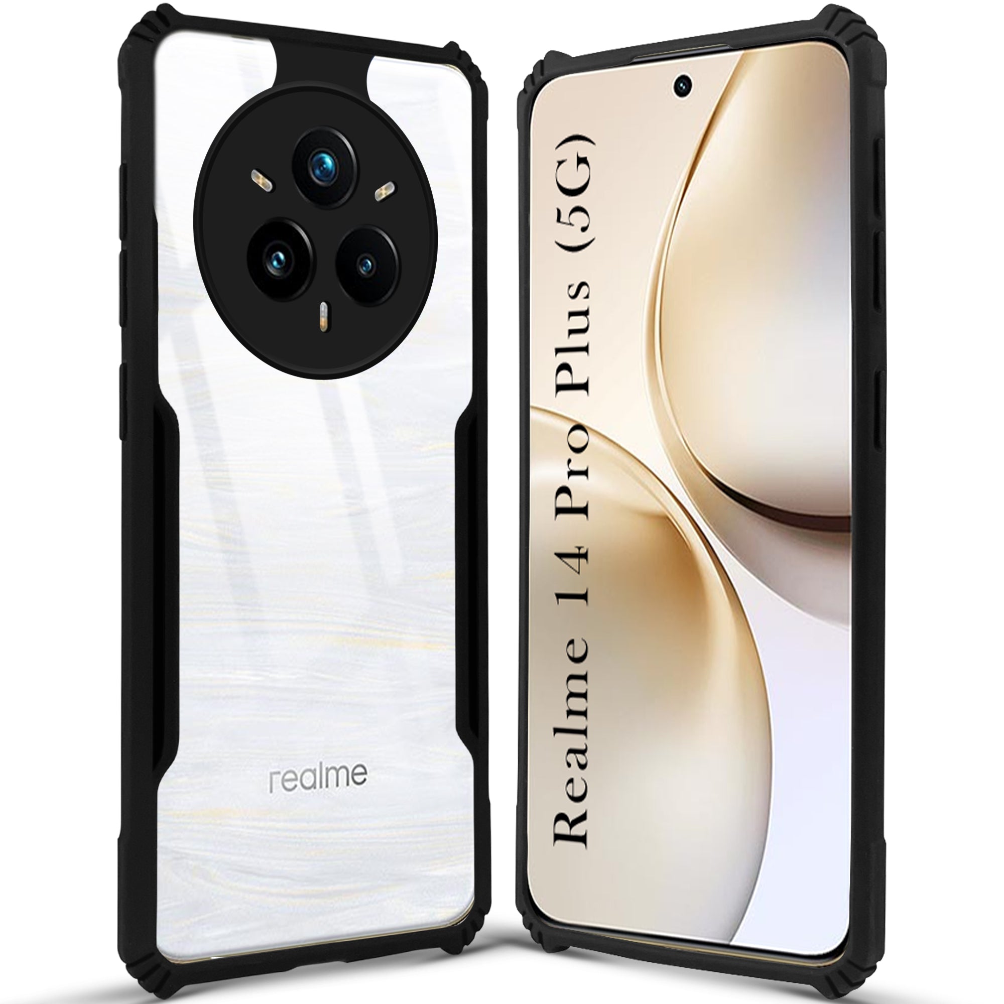 For Realme 14 Pro Plus 5G Back Cover Case ( Shockproof with Polycarbonate Clear Panel | Professional Black)