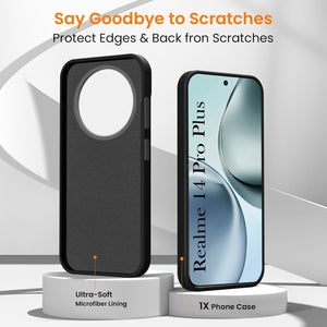 For Realme 14 Pro Plus 5G Back Cover Case (Textured Grip Design | Micro-Fiber Cloth Inside | Slim and Light Weight | Soft Touch and Feel | Black)