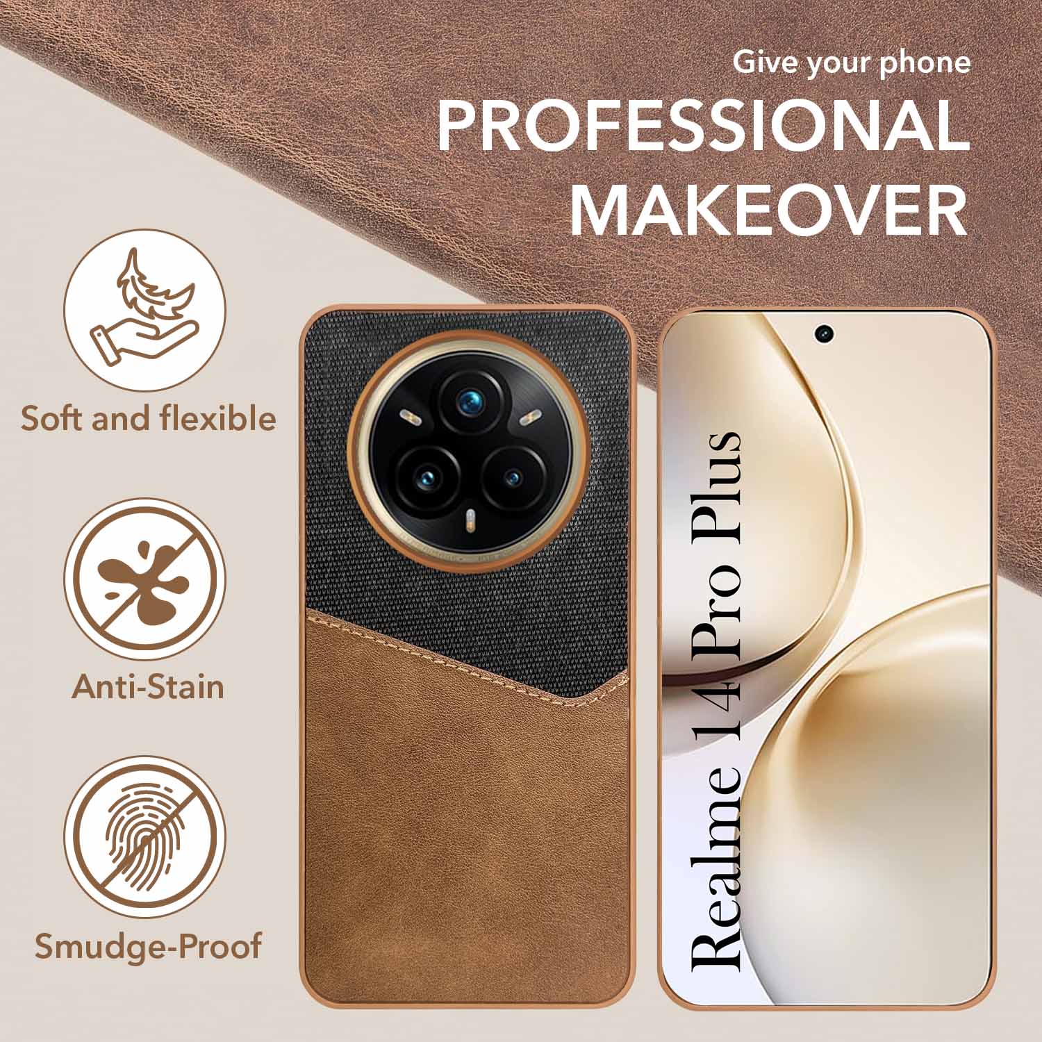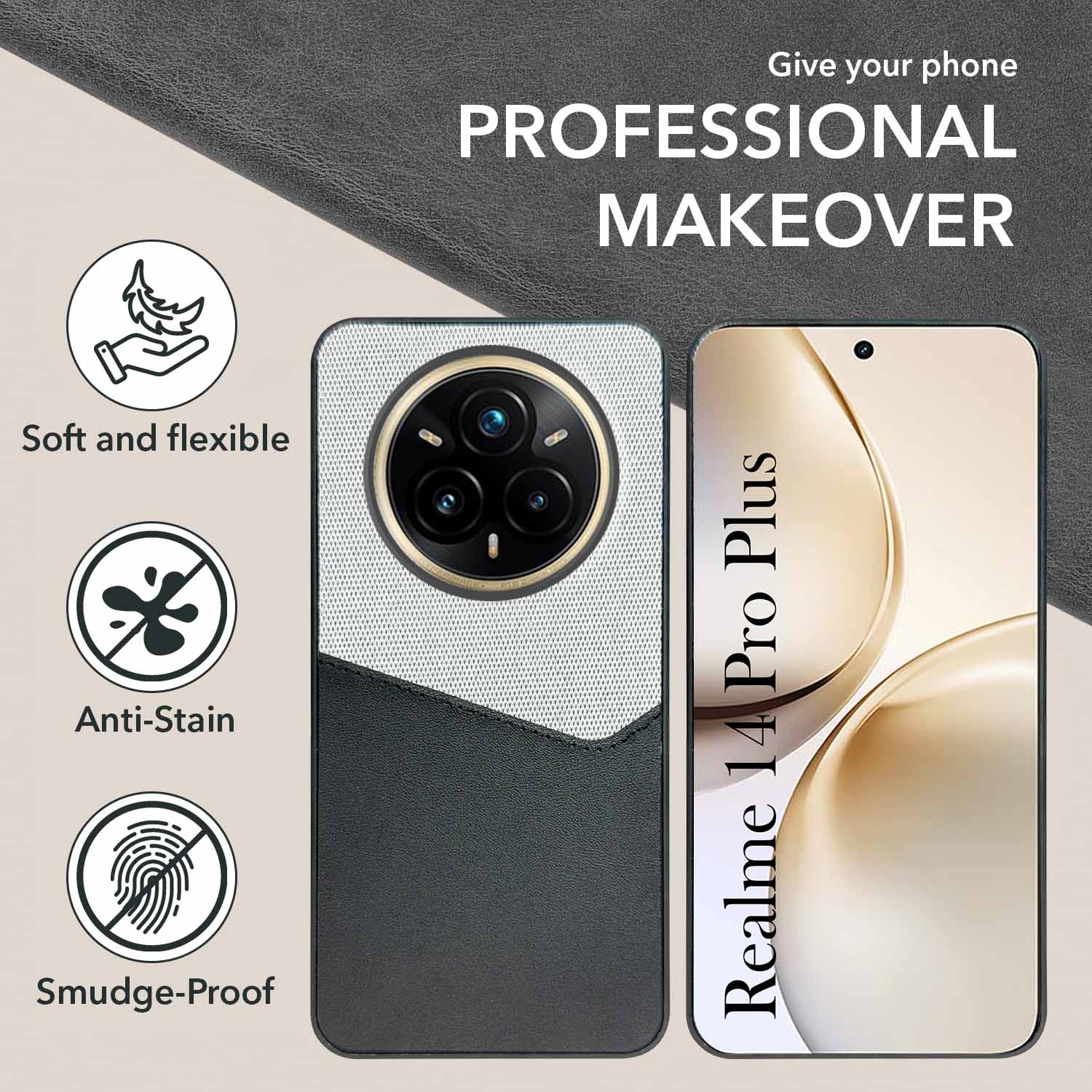 For Realme 14 Pro Plus Back Cover Case (Dual PU Leather Stitch | Professional Minimalist | Soft and Flexible)