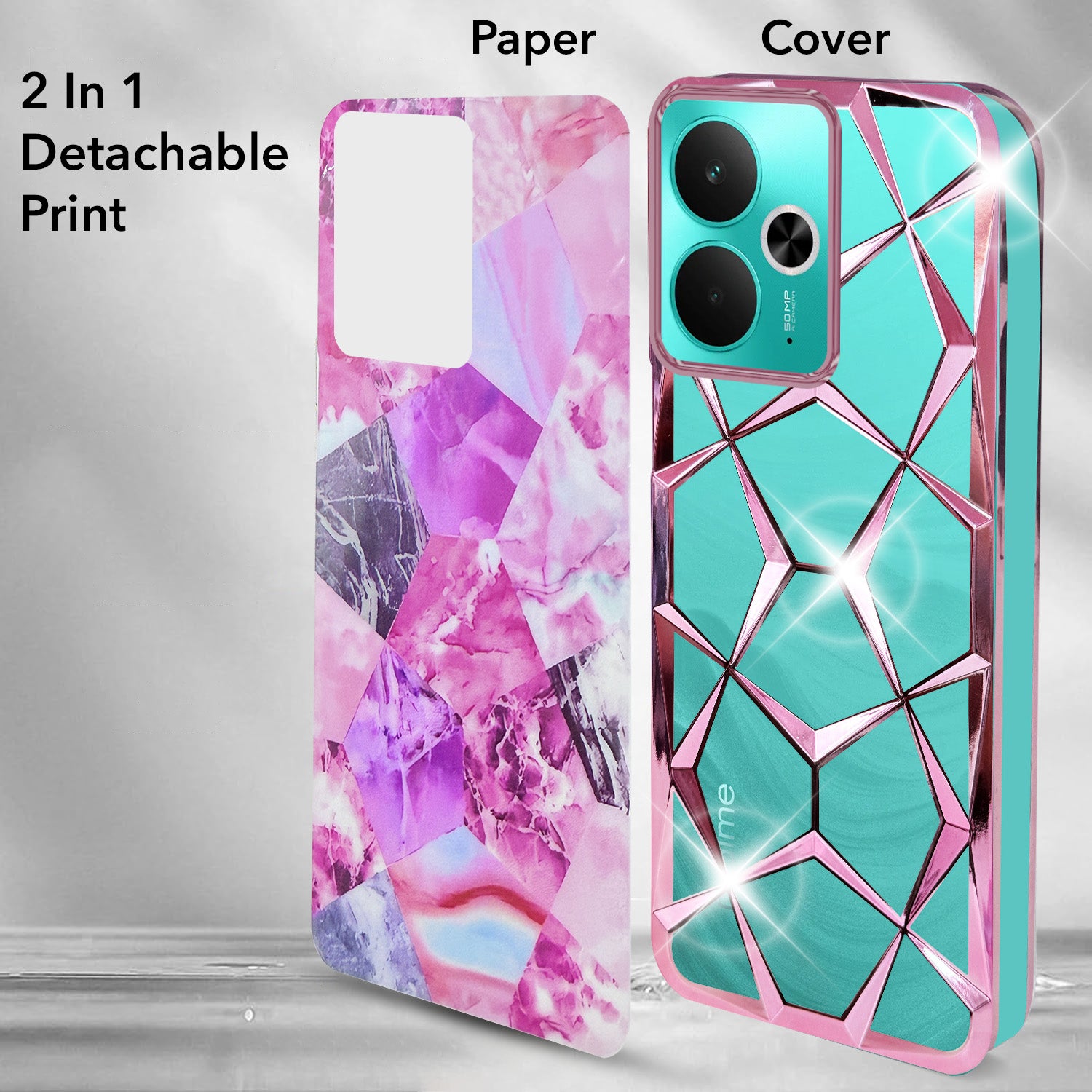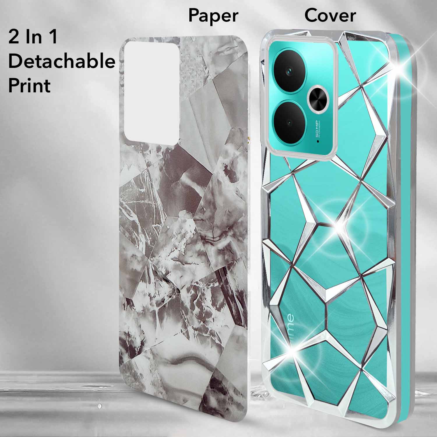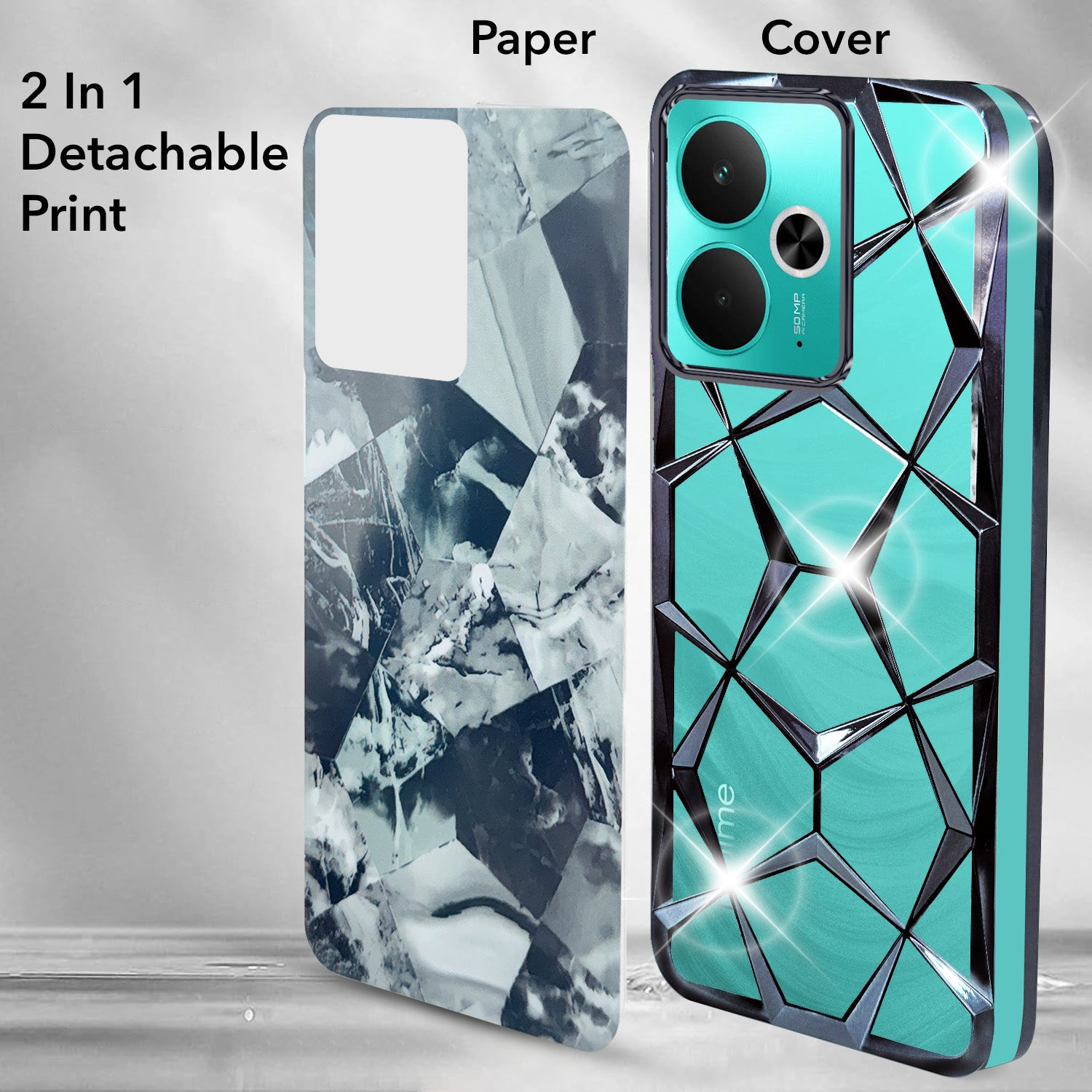 For Realme 14T Back Cover Case ( Dual Design Glitter Sparkle and Detachable Diamond Print Case | Soft and Flexible)