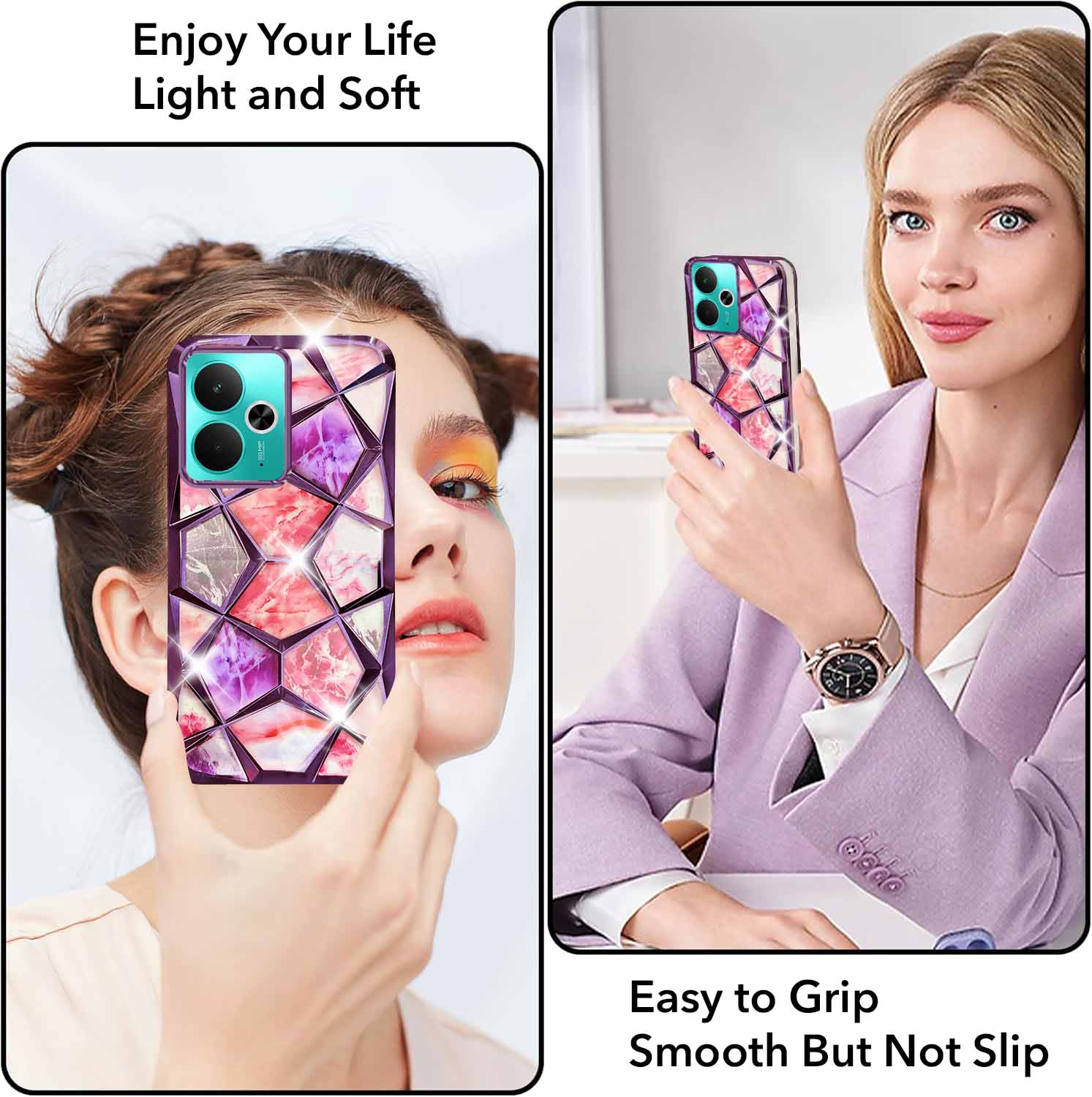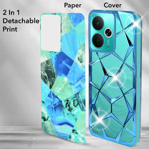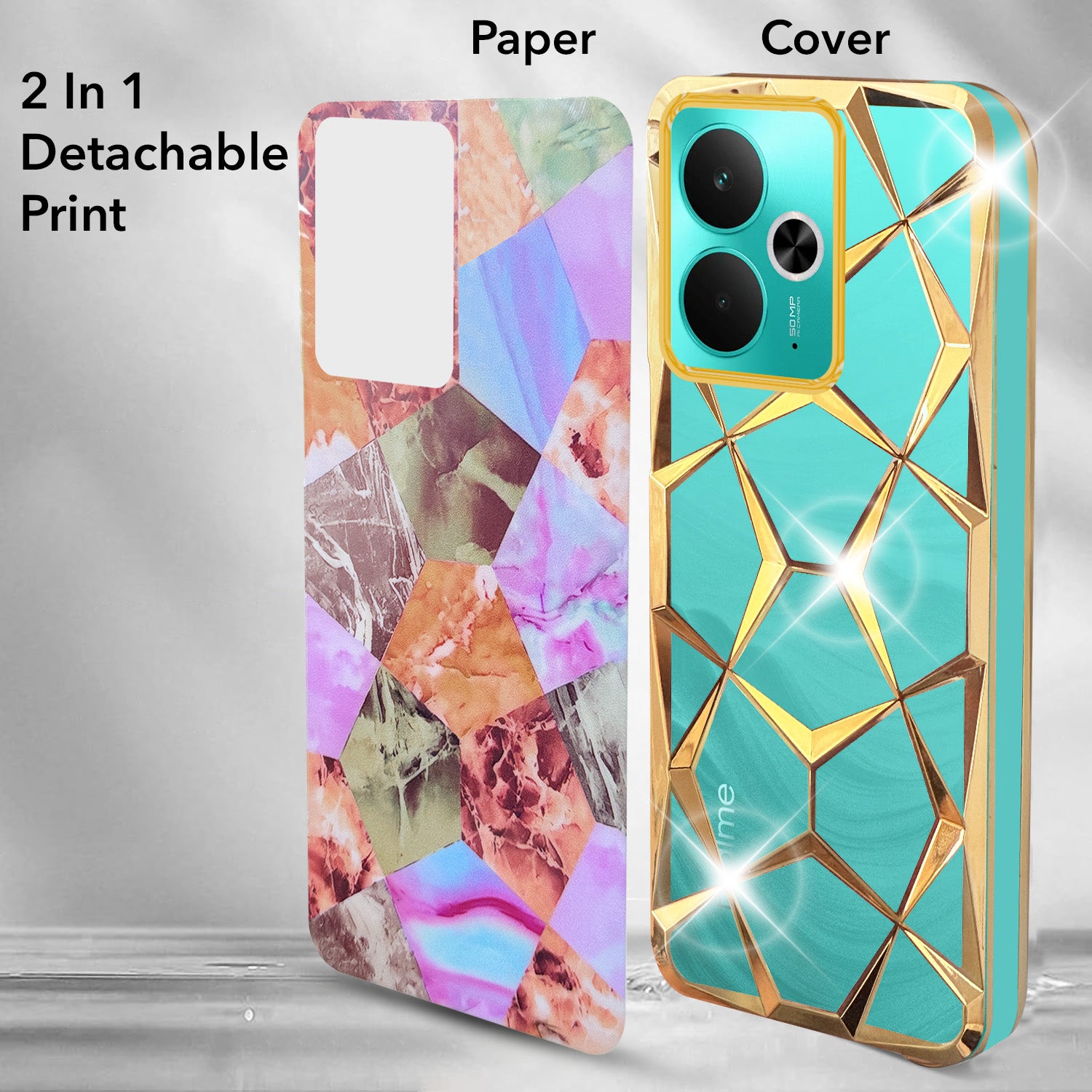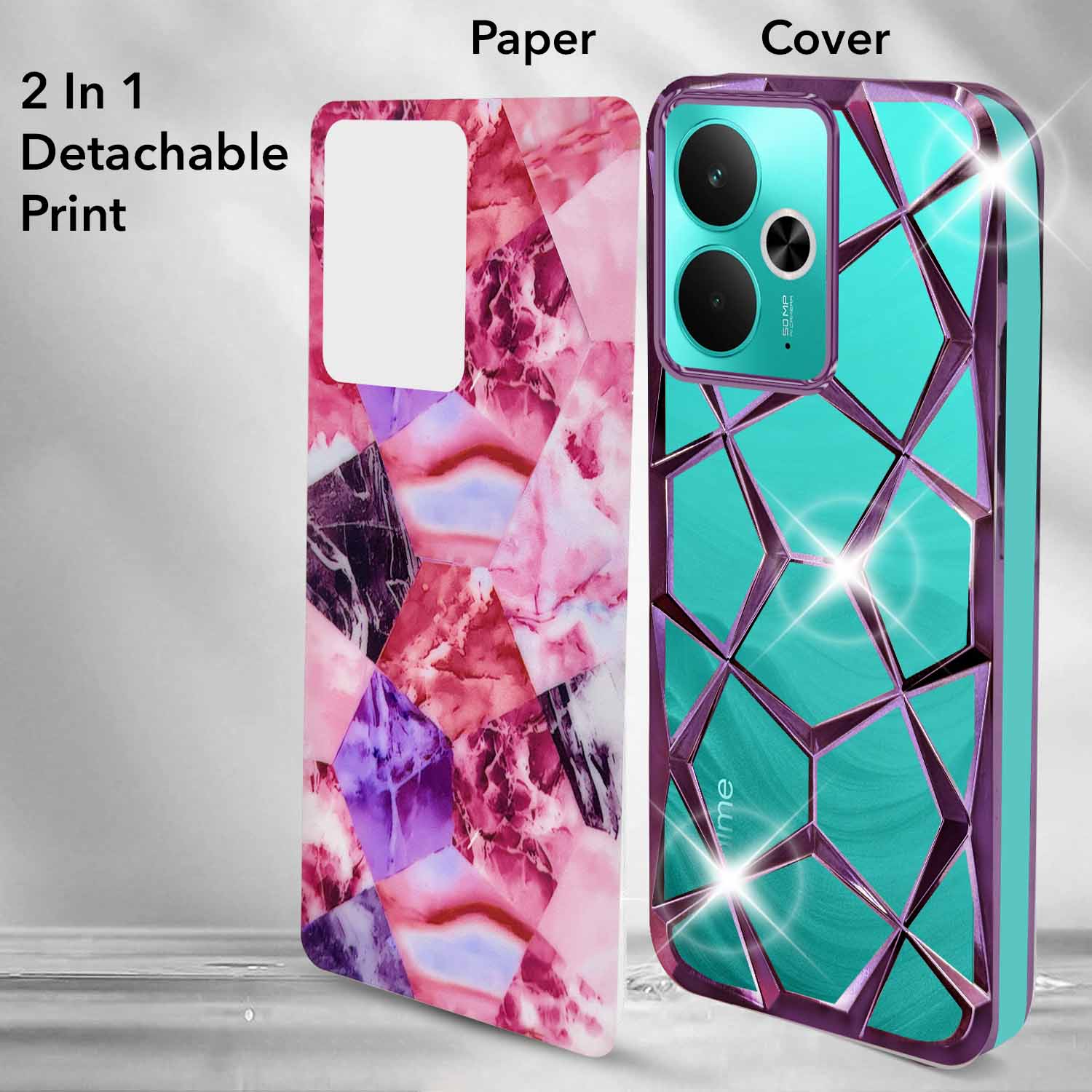 For Realme 14T Back Cover Case ( Dual Design Glitter Sparkle and Detachable Diamond Print Case | Soft and Flexible)