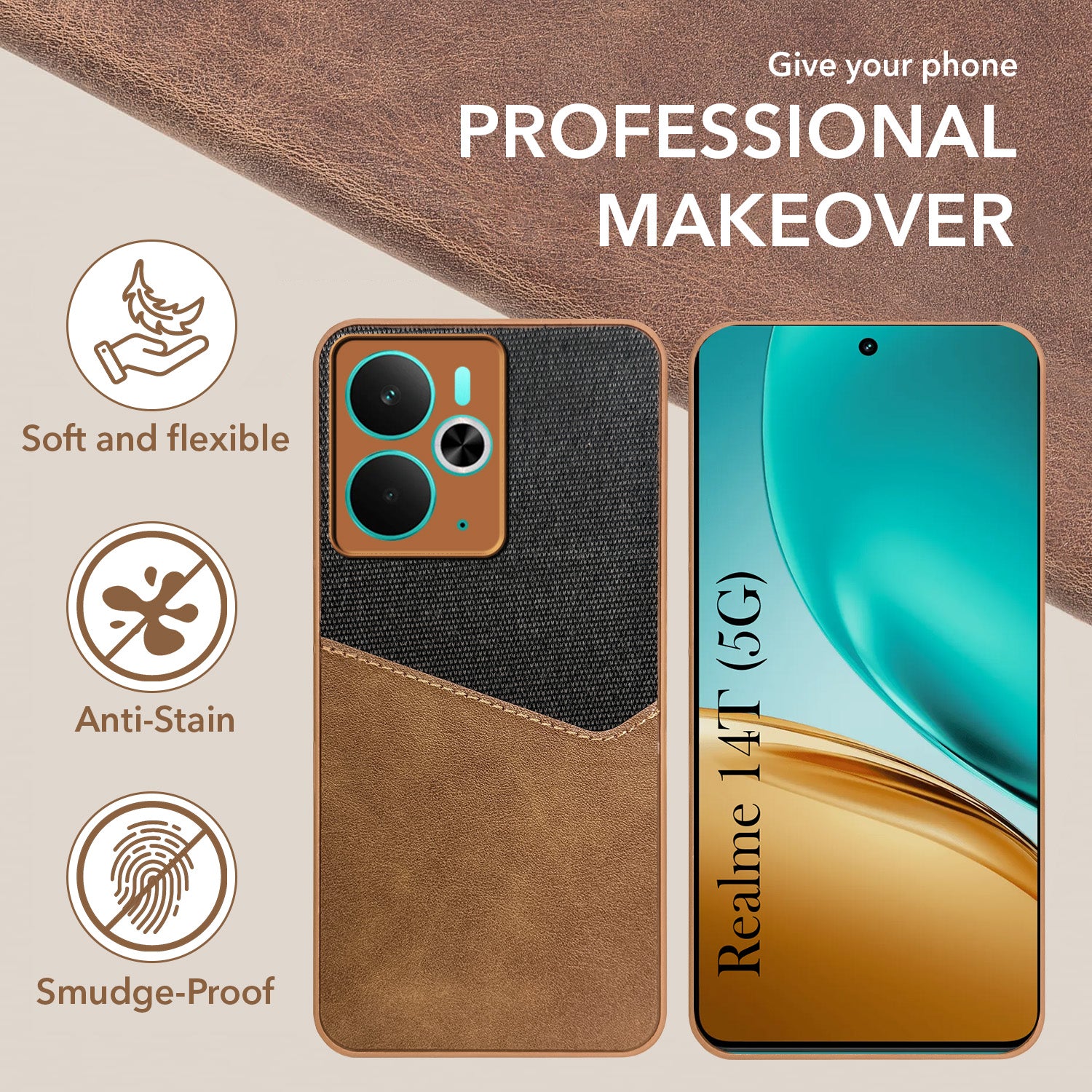 For Realme 14T Back Cover Case (Dual PU Leather Stitch | Professional Minimalist | Soft and Flexible)