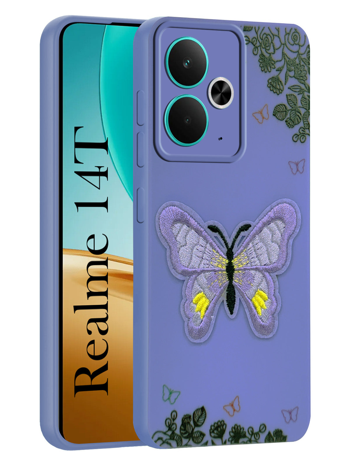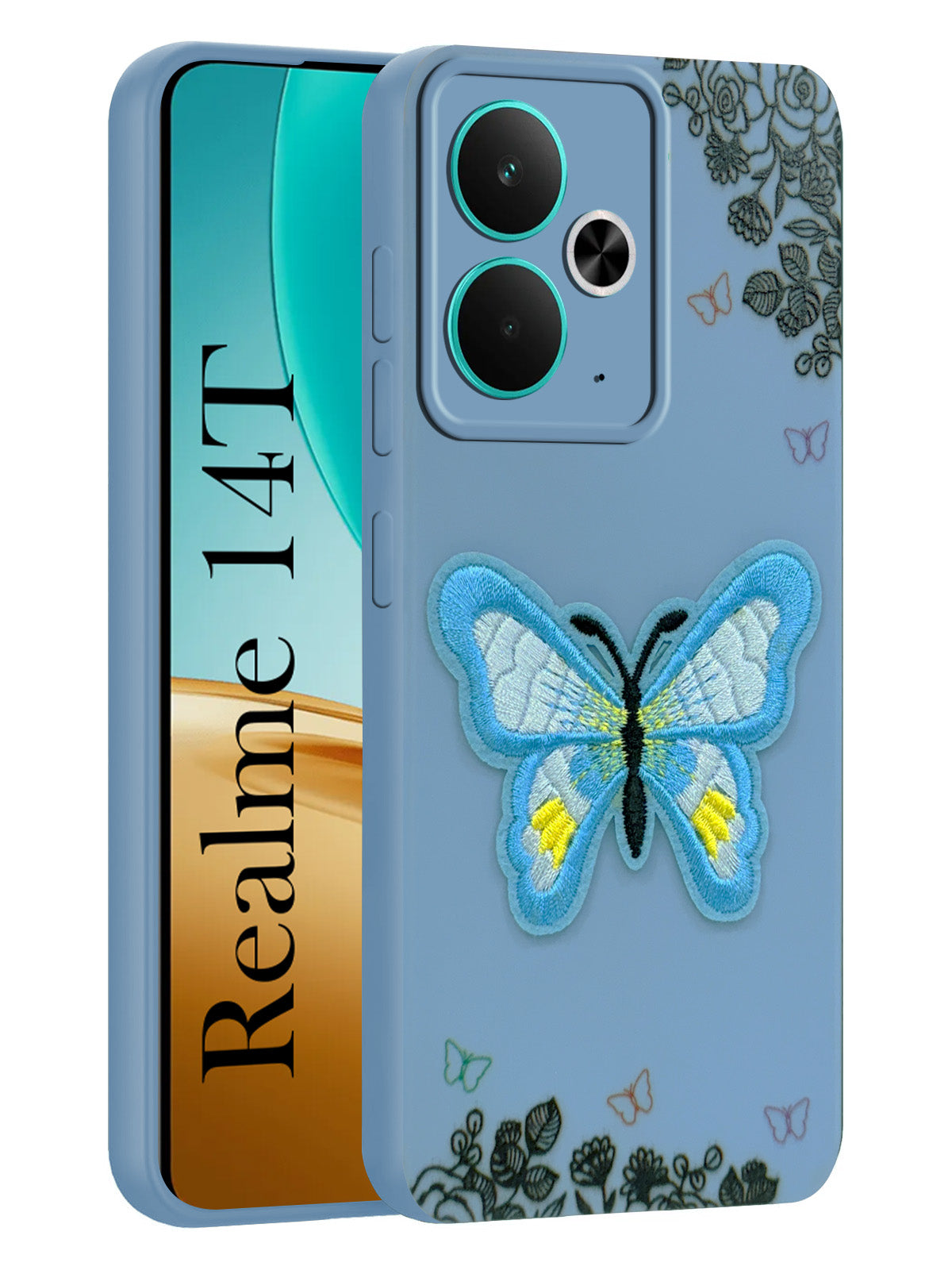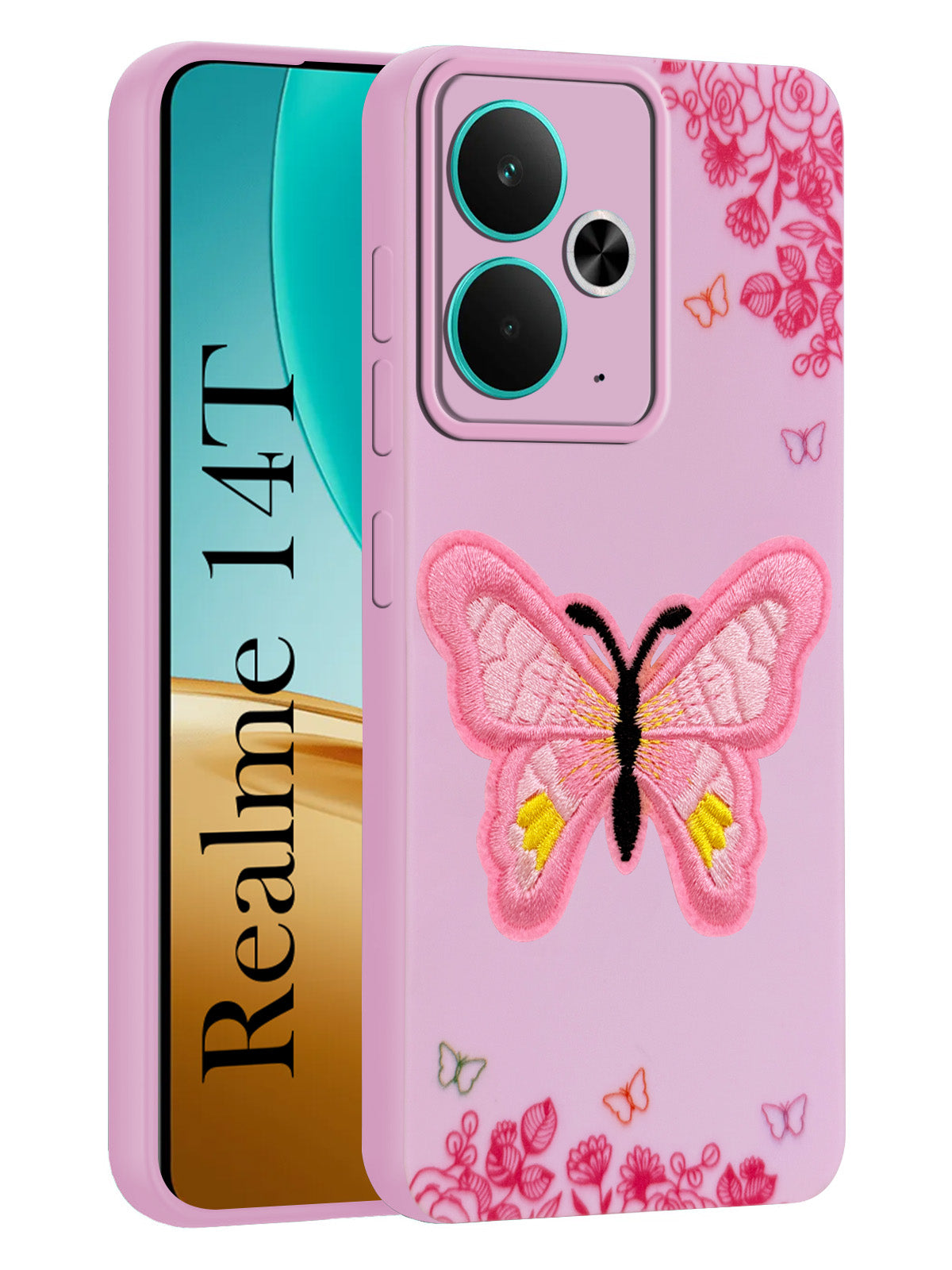 For Realme 14T Back Cover Case (Soft Butterfly Embroidery | Women Teen Girls | Camera Protection| Matte Silicone)
