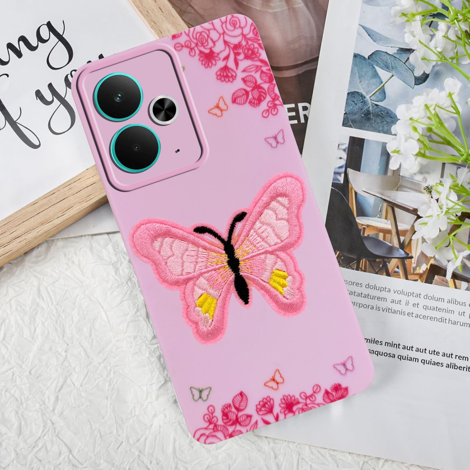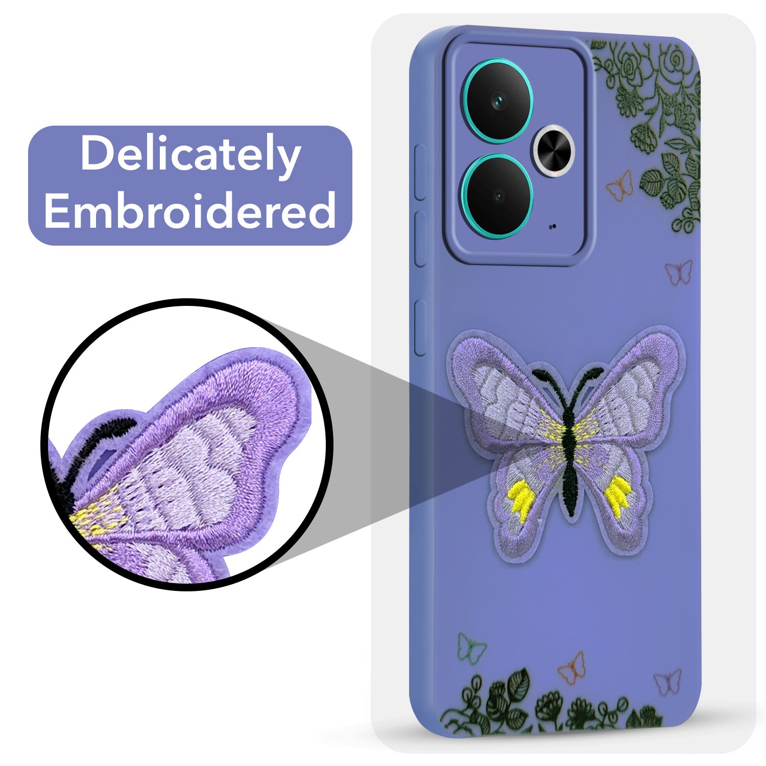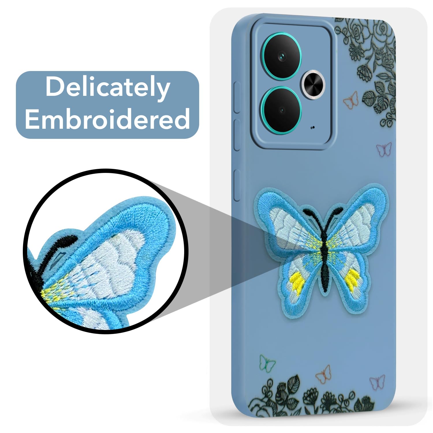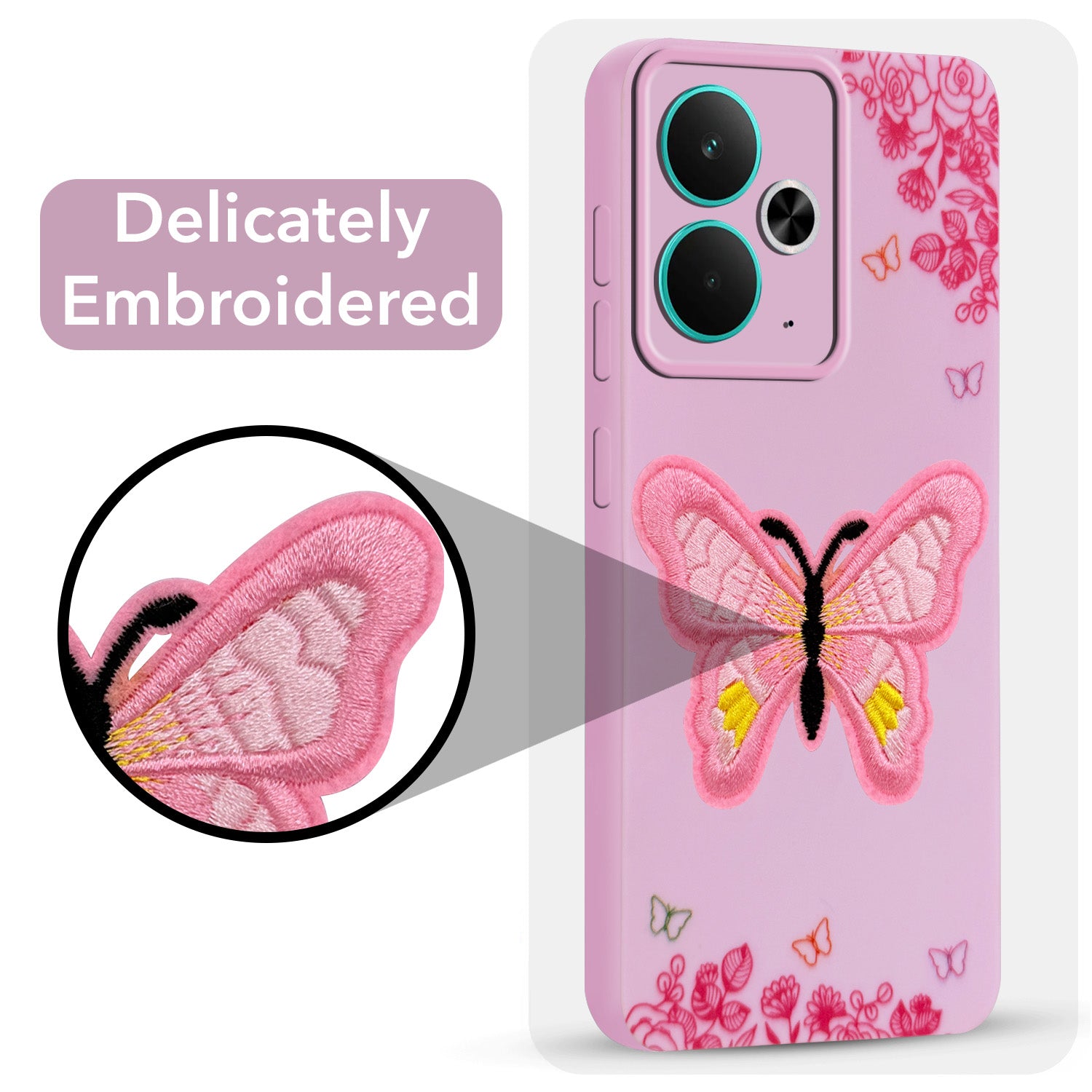 For Realme 14T Back Cover Case (Soft Butterfly Embroidery | Women Teen Girls | Camera Protection| Matte Silicone)