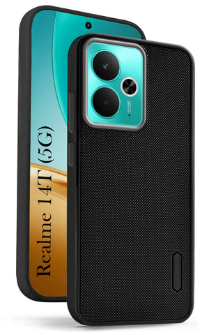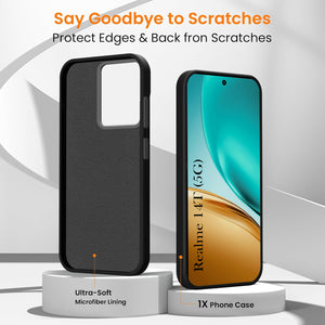 For Realme 14T Back Cover Case (Textured Grip Design | Micro-Fiber Cloth Inside | Slim and Light Weight | Soft Touch and Feel | Black)