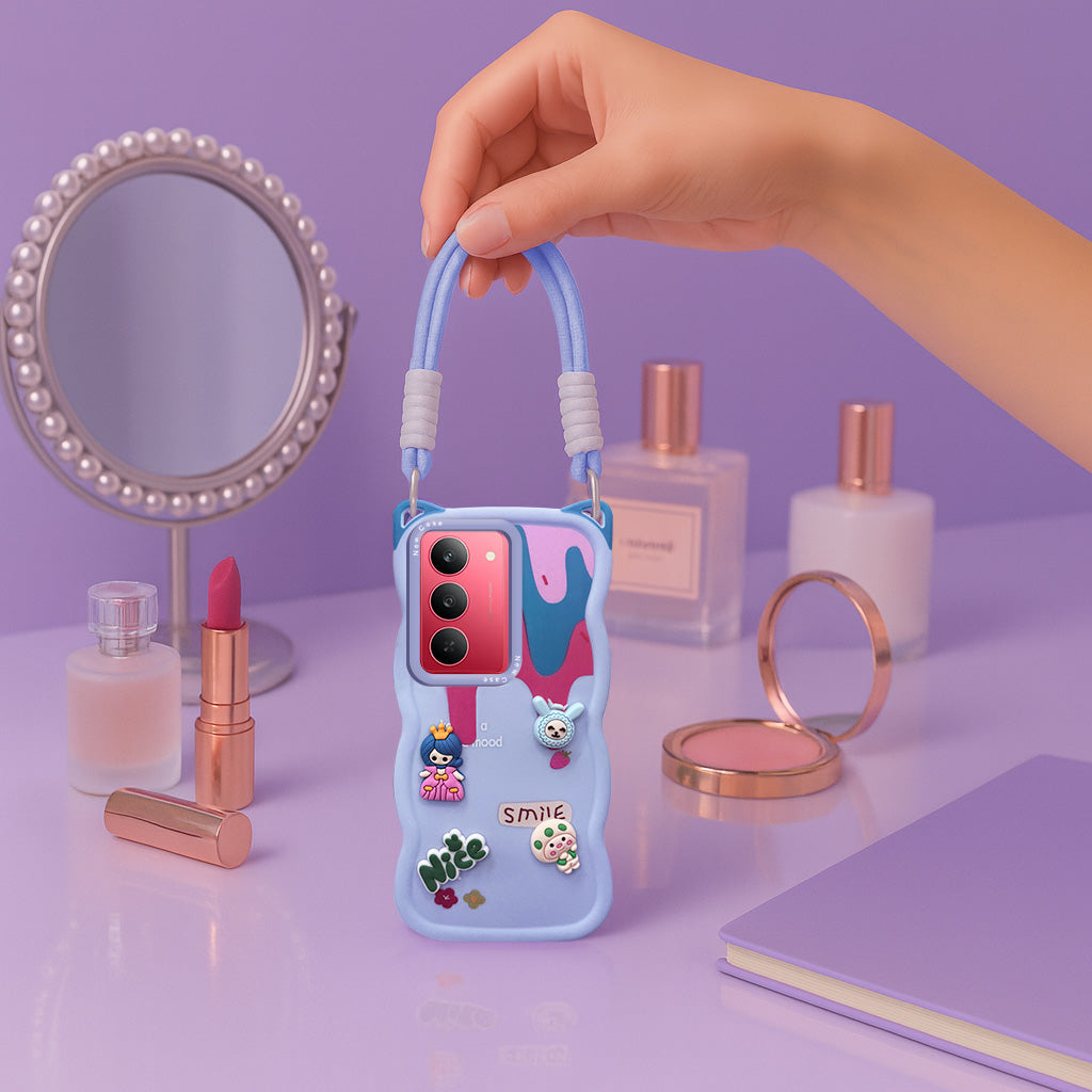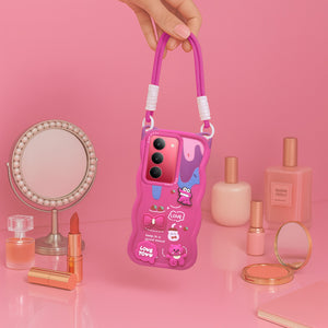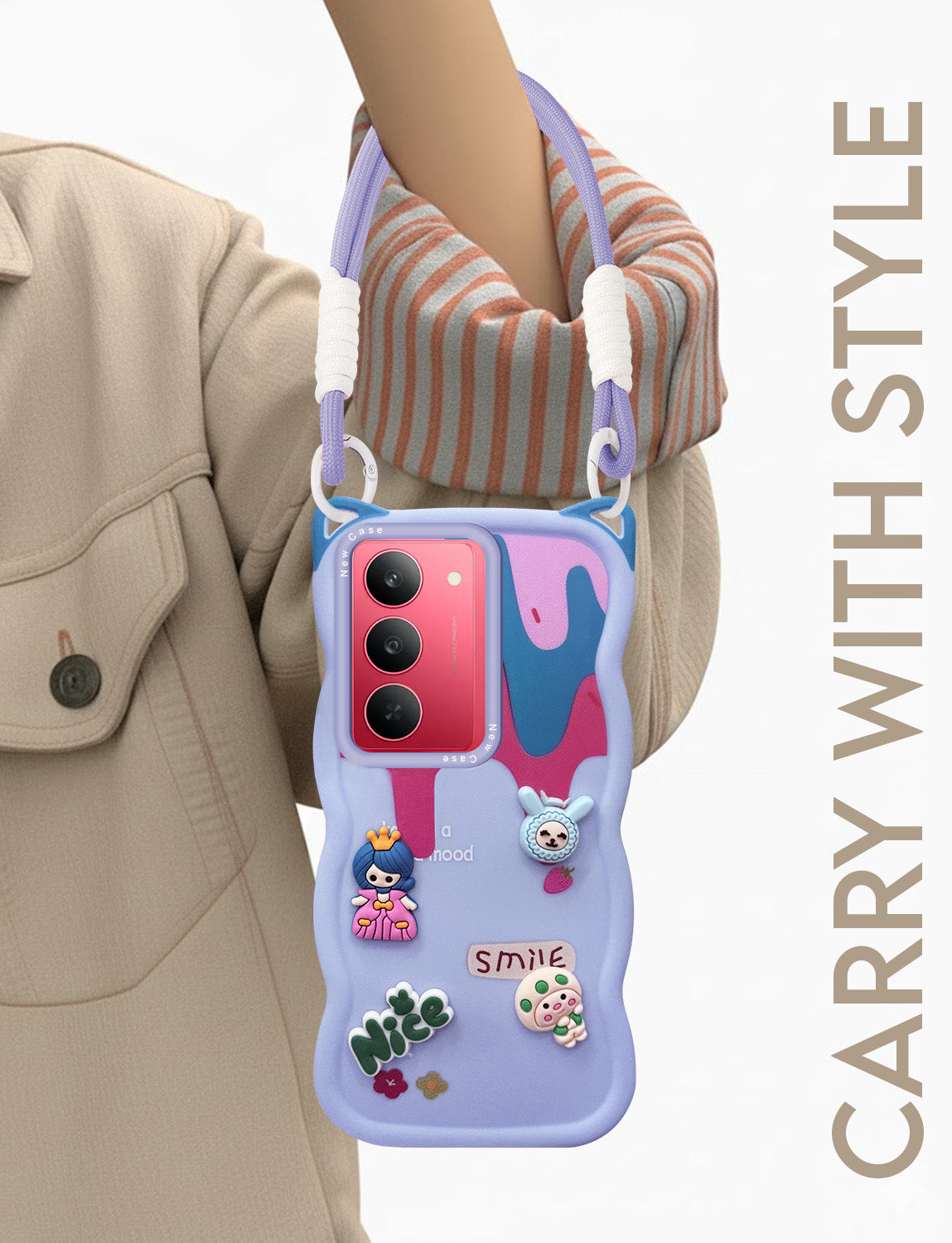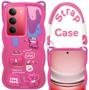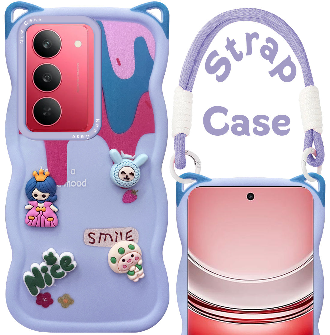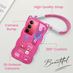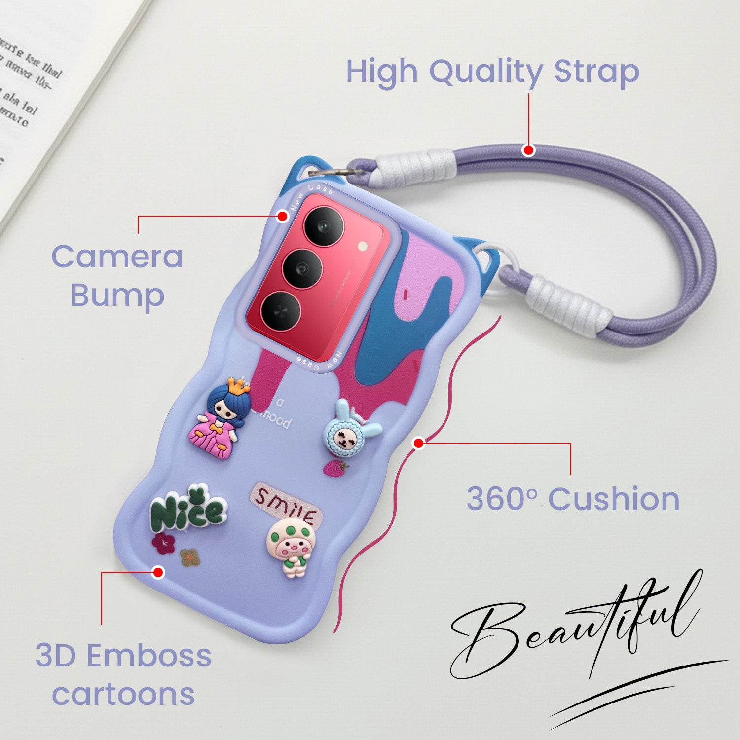 For Realme 14X Back Case Cover Strap(3D embossed Figures | Strap Holder | 360* Soft Cushion with Camera Bump)