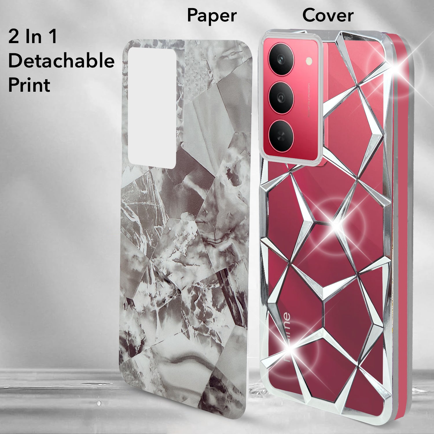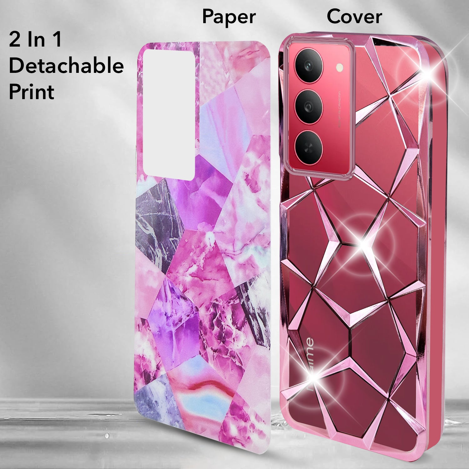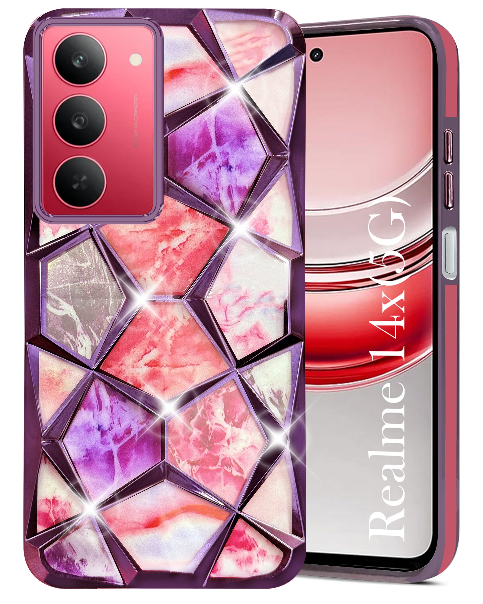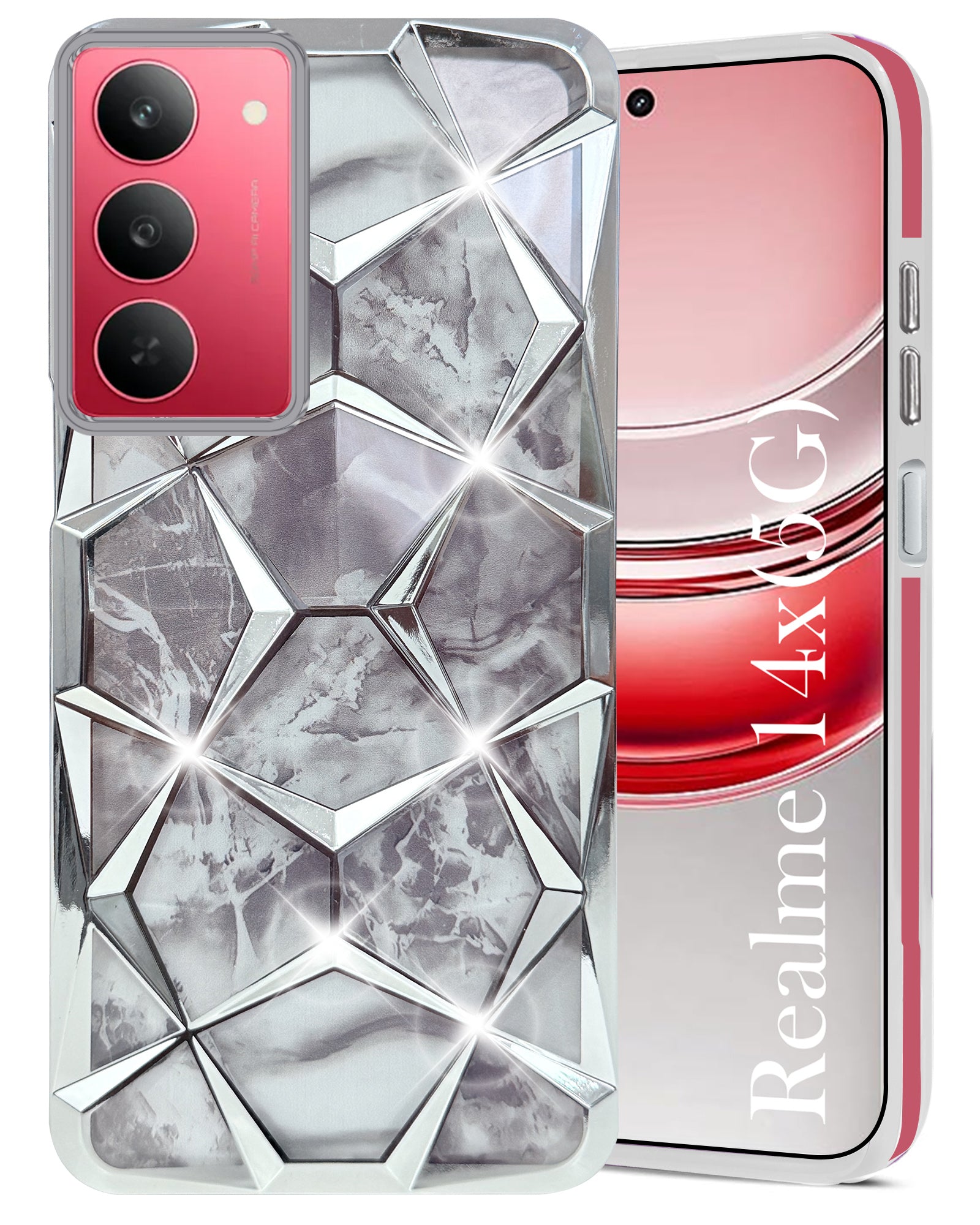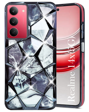 For Realme 14X Back Cover Case Girls (Dual Design Glitter Sparkle and Detachable Diamond Print Case | Soft and Flexible)