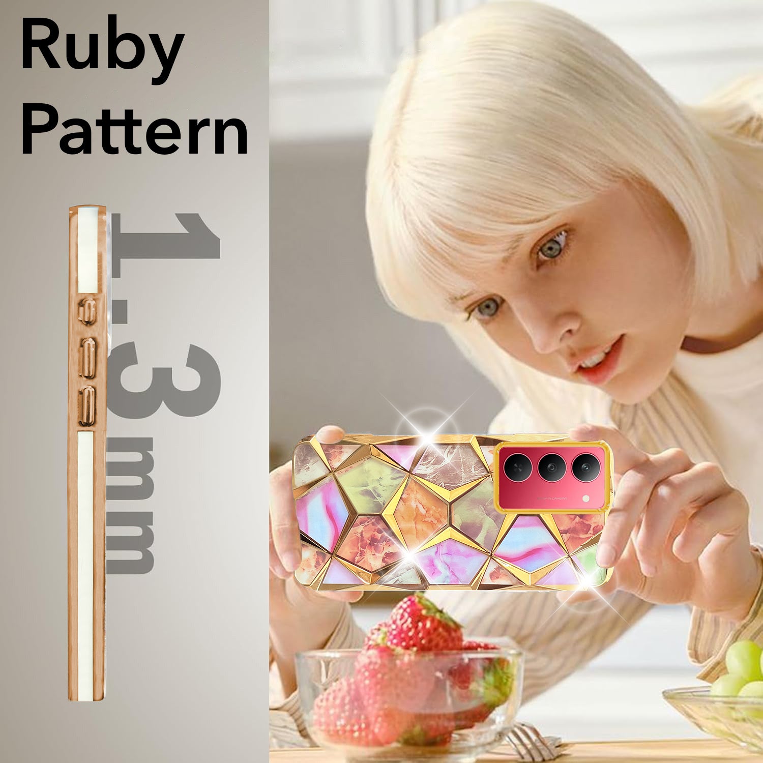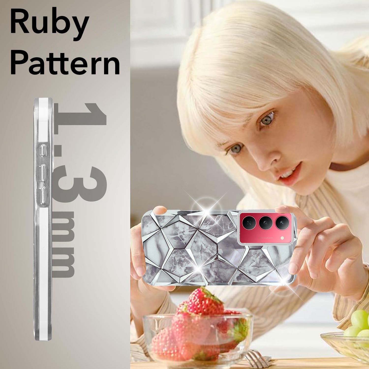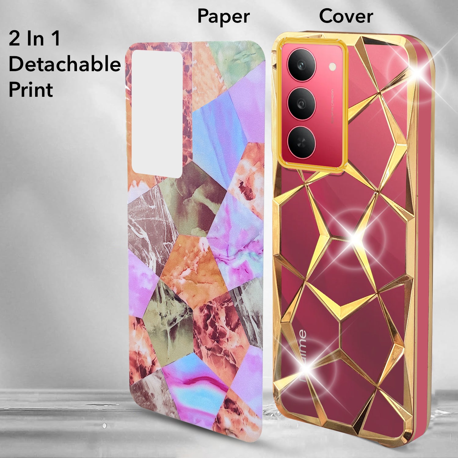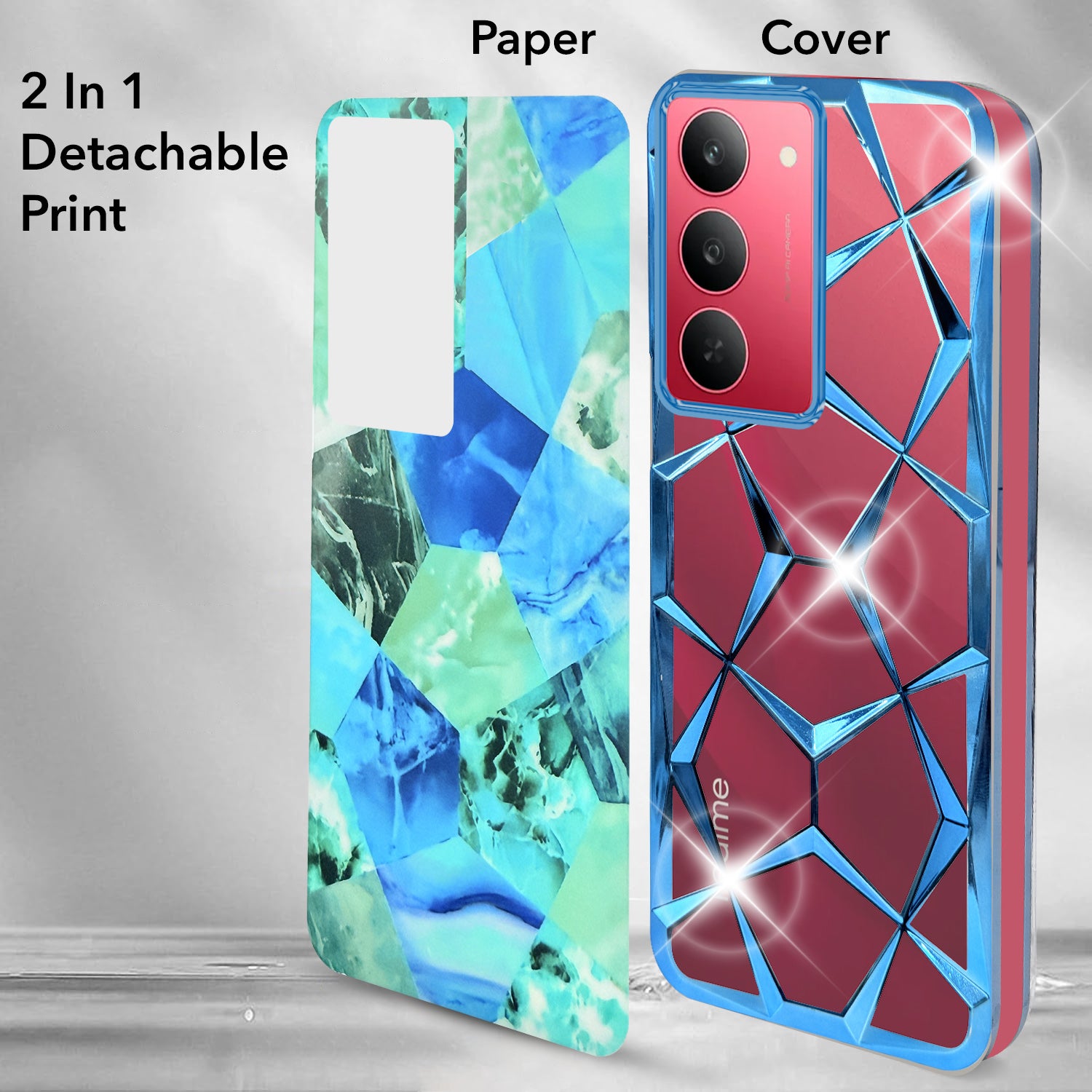 For Realme 14X Back Cover Case Girls (Dual Design Glitter Sparkle and Detachable Diamond Print Case | Soft and Flexible)