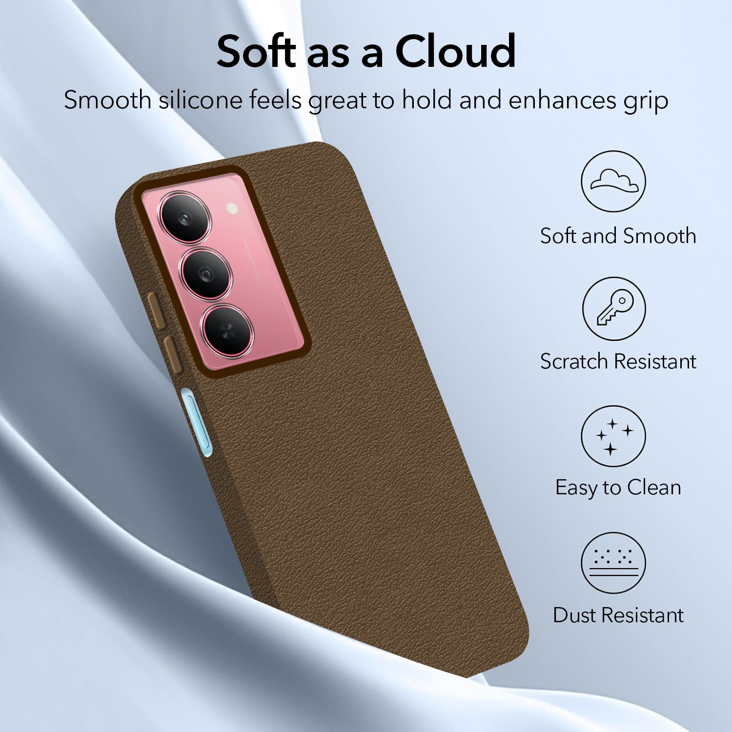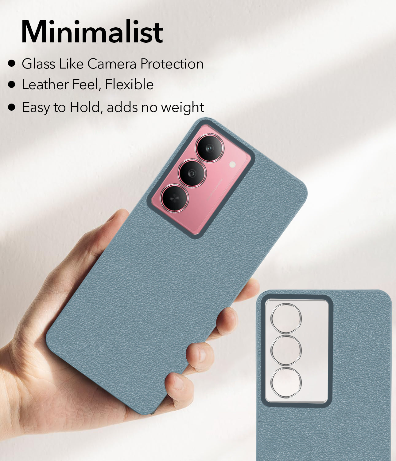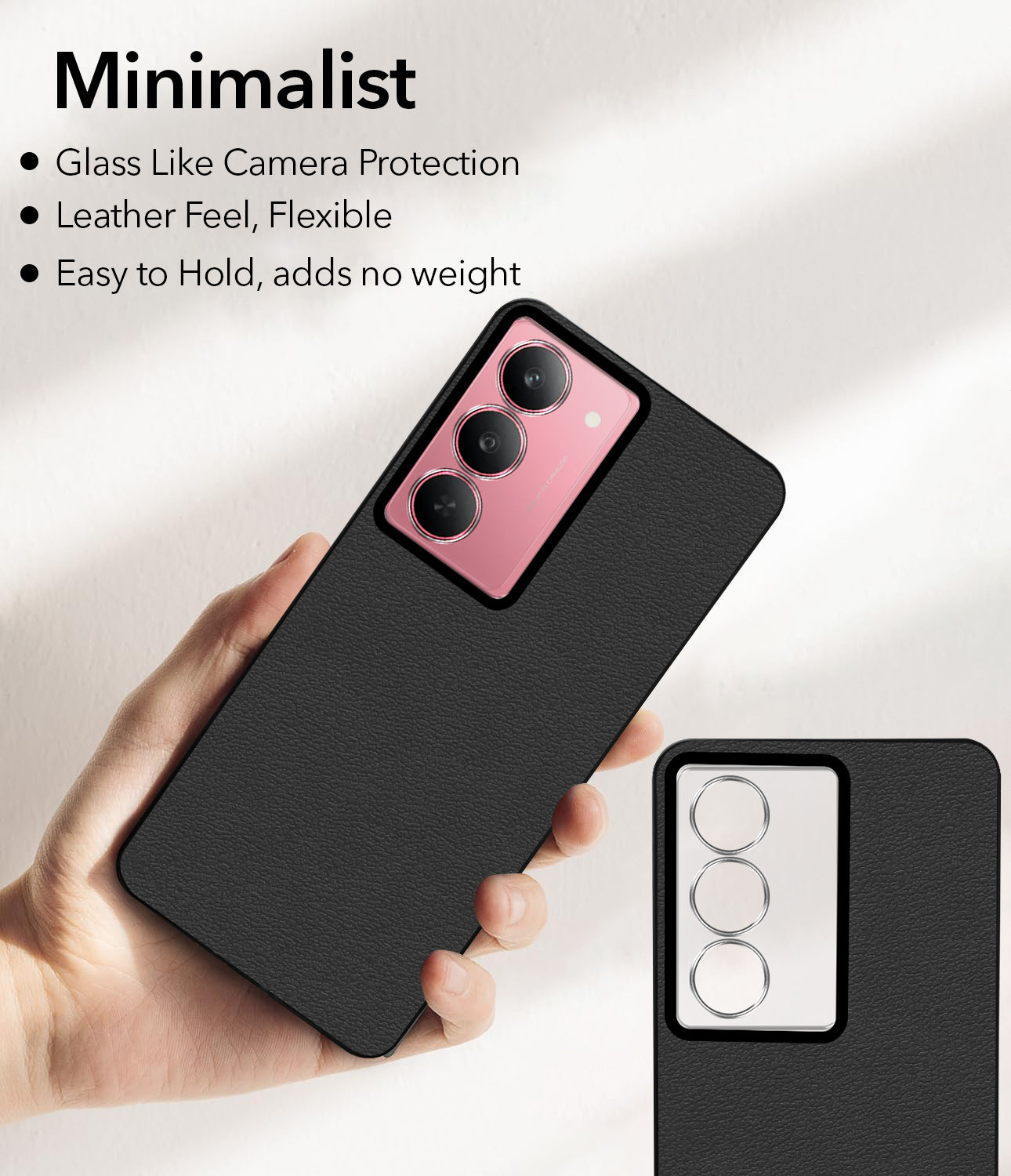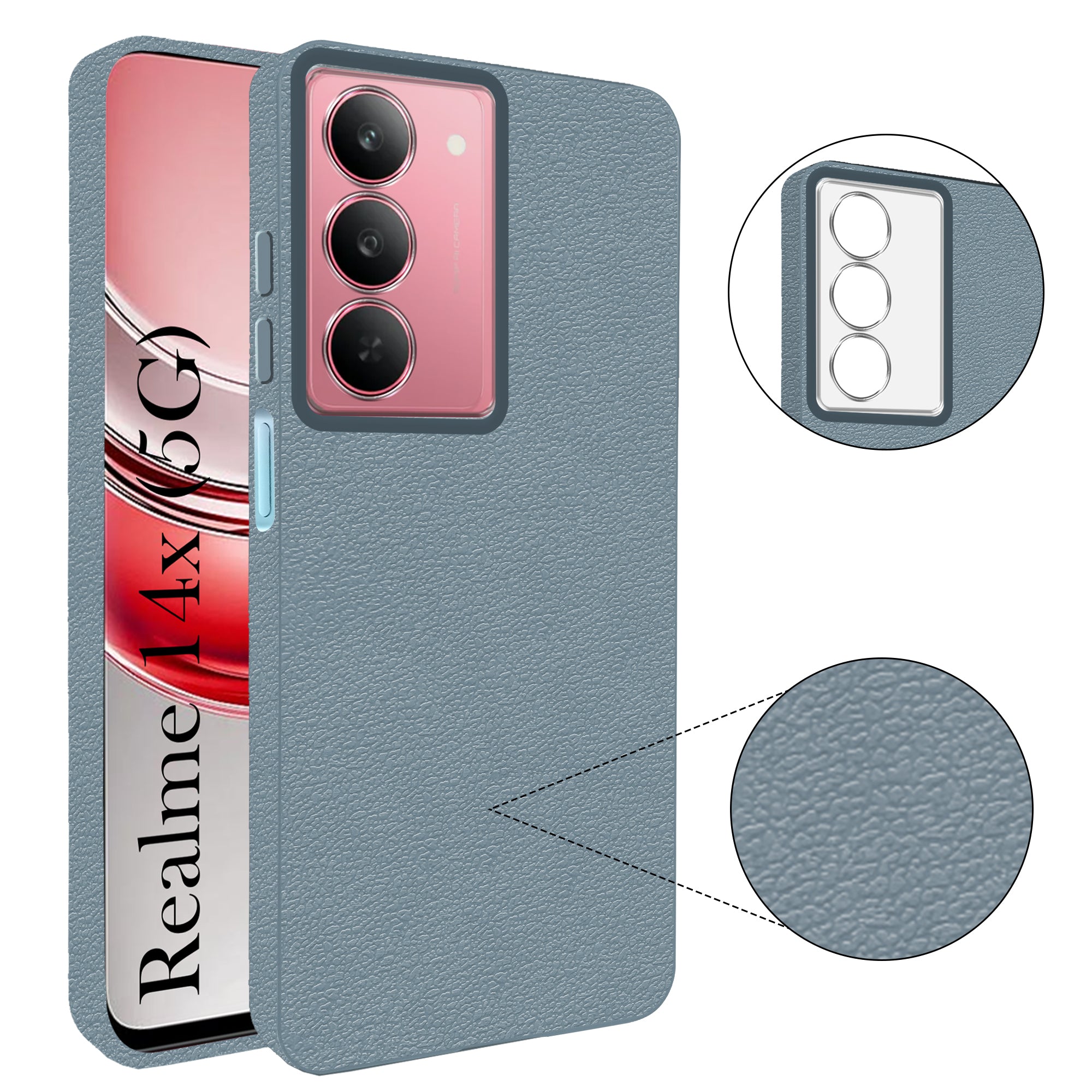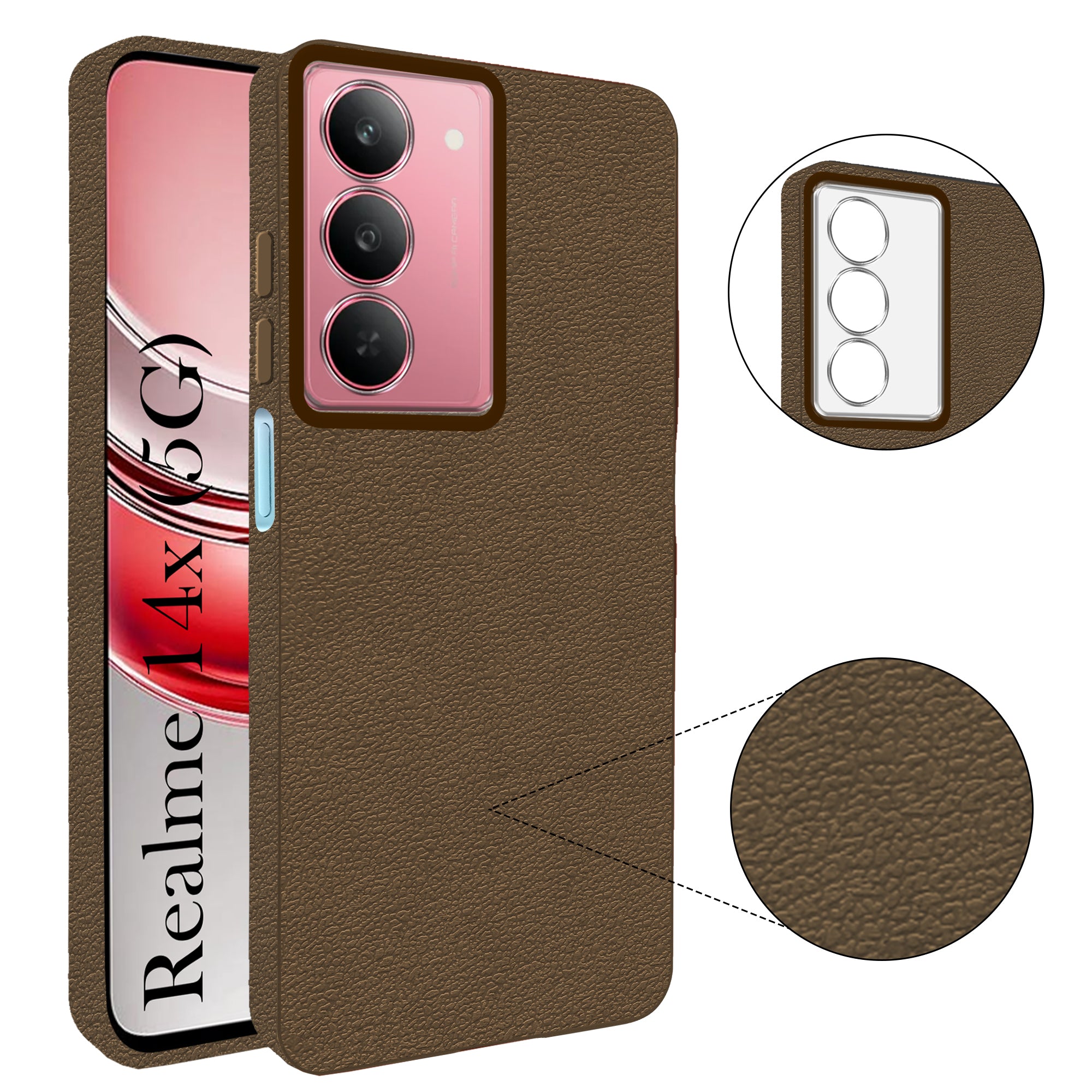 For Realme 14x Back Cover Case (Glass Like Camera Protection | Leather Feel | Minimalist Professional Grip)