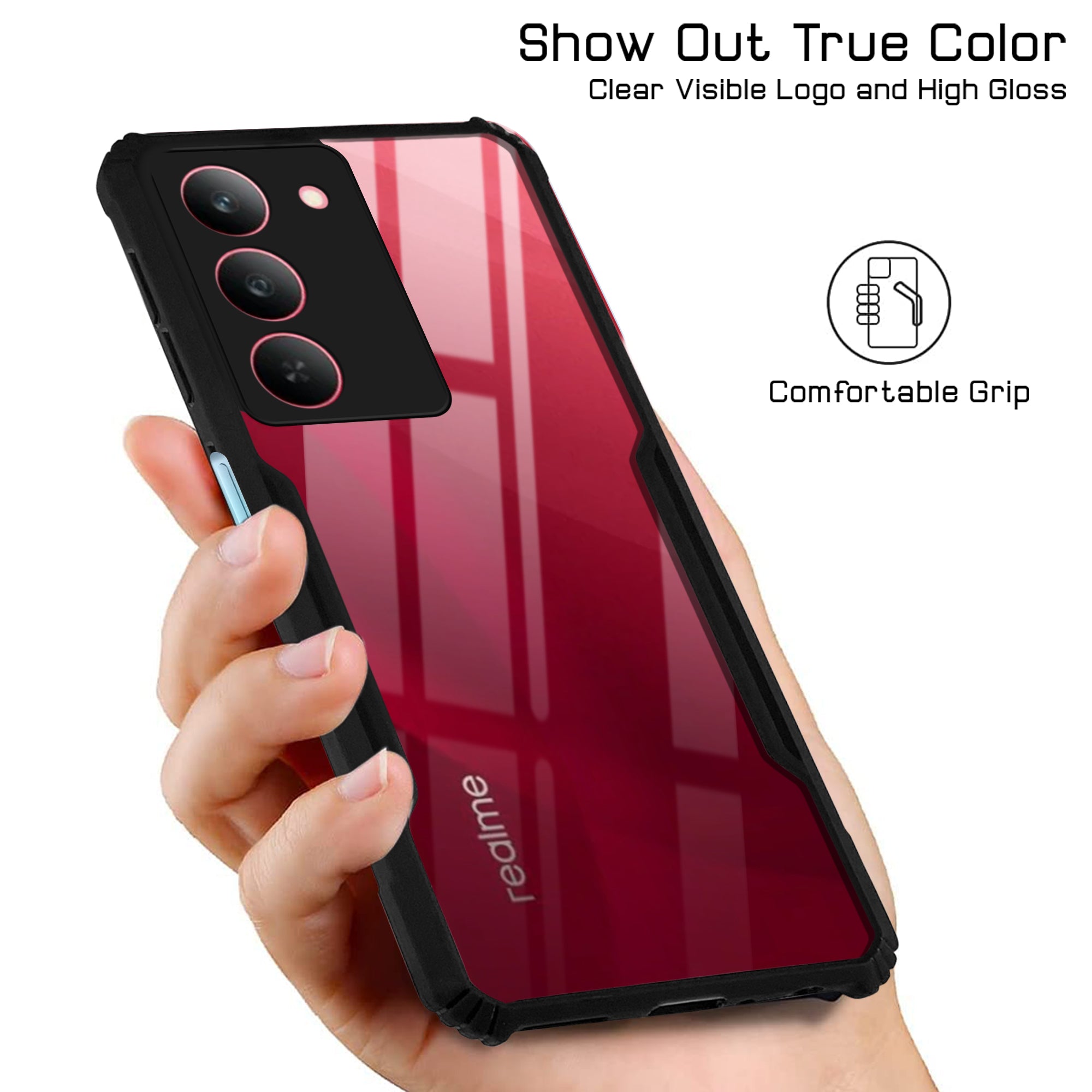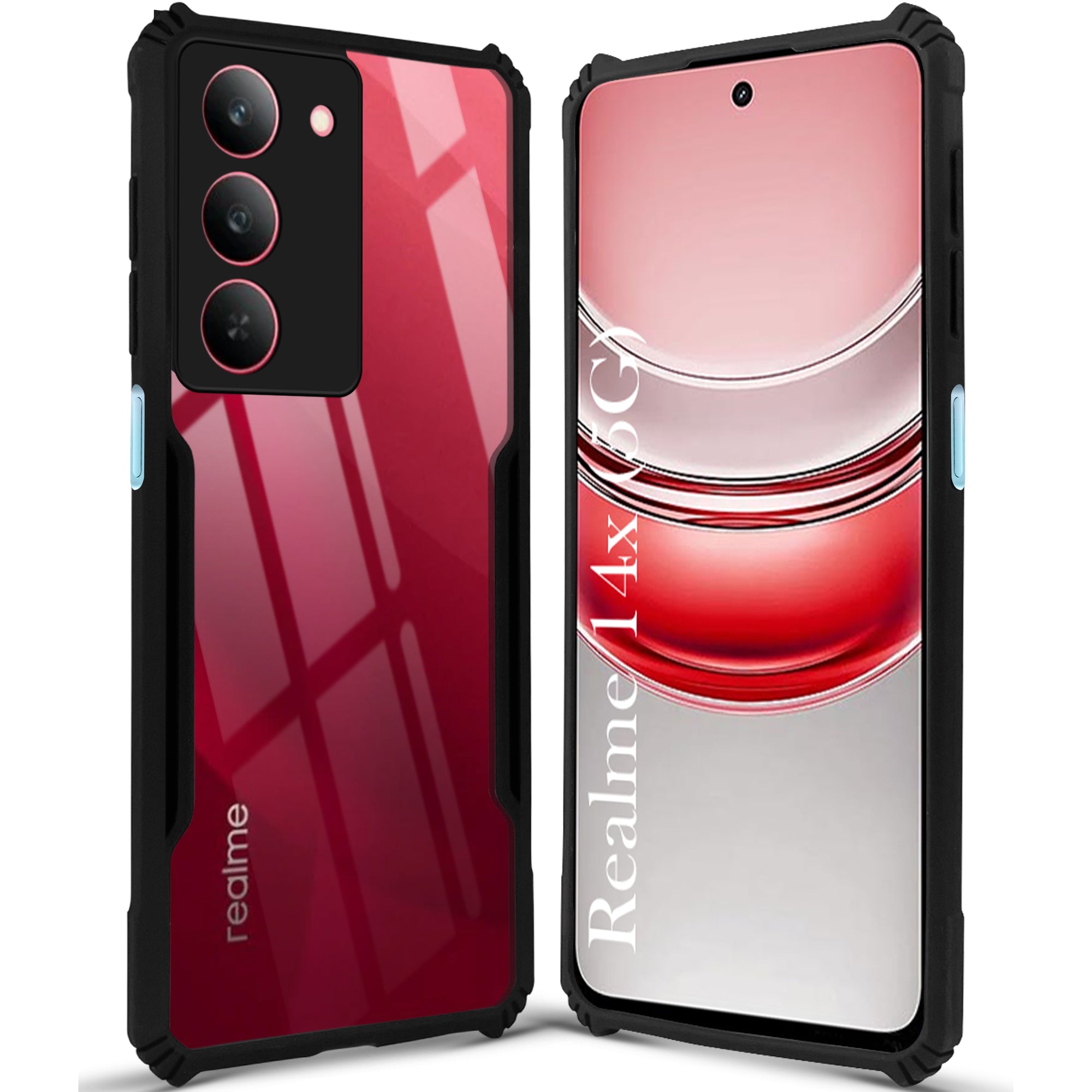 For Realme 14X Back Cover Case ( Shockproof with Polycarbonate Clear Panel | Professional Black)